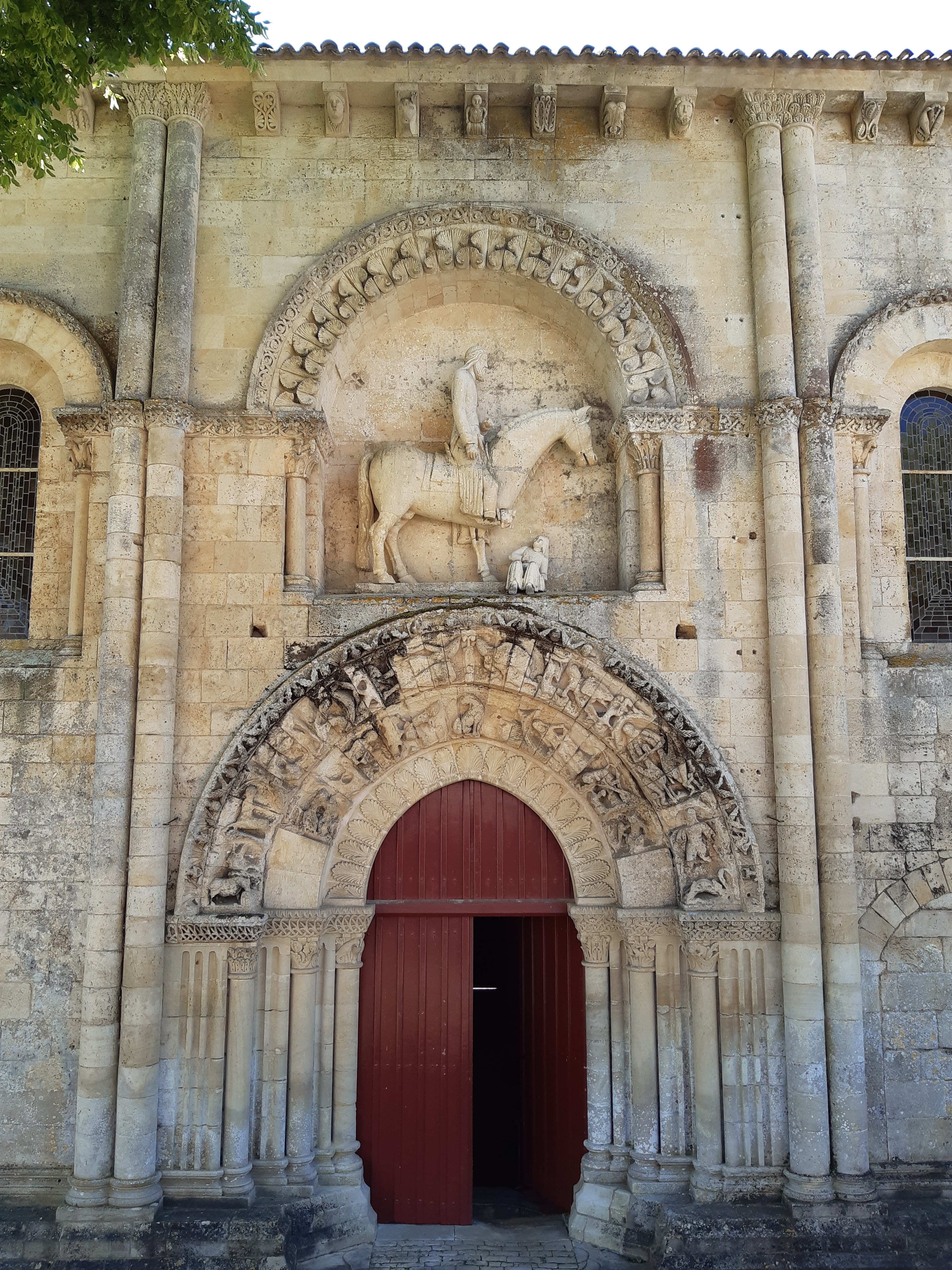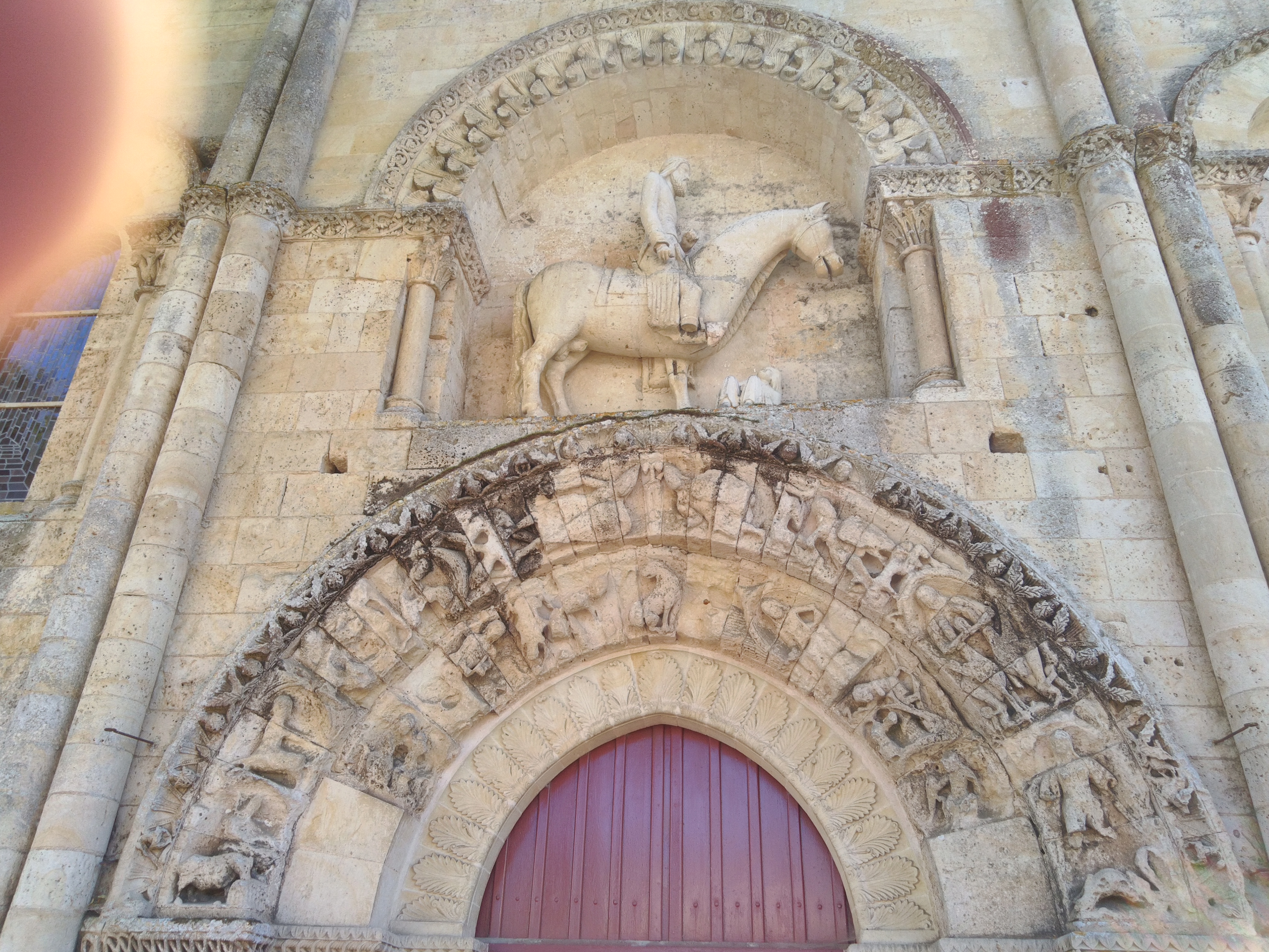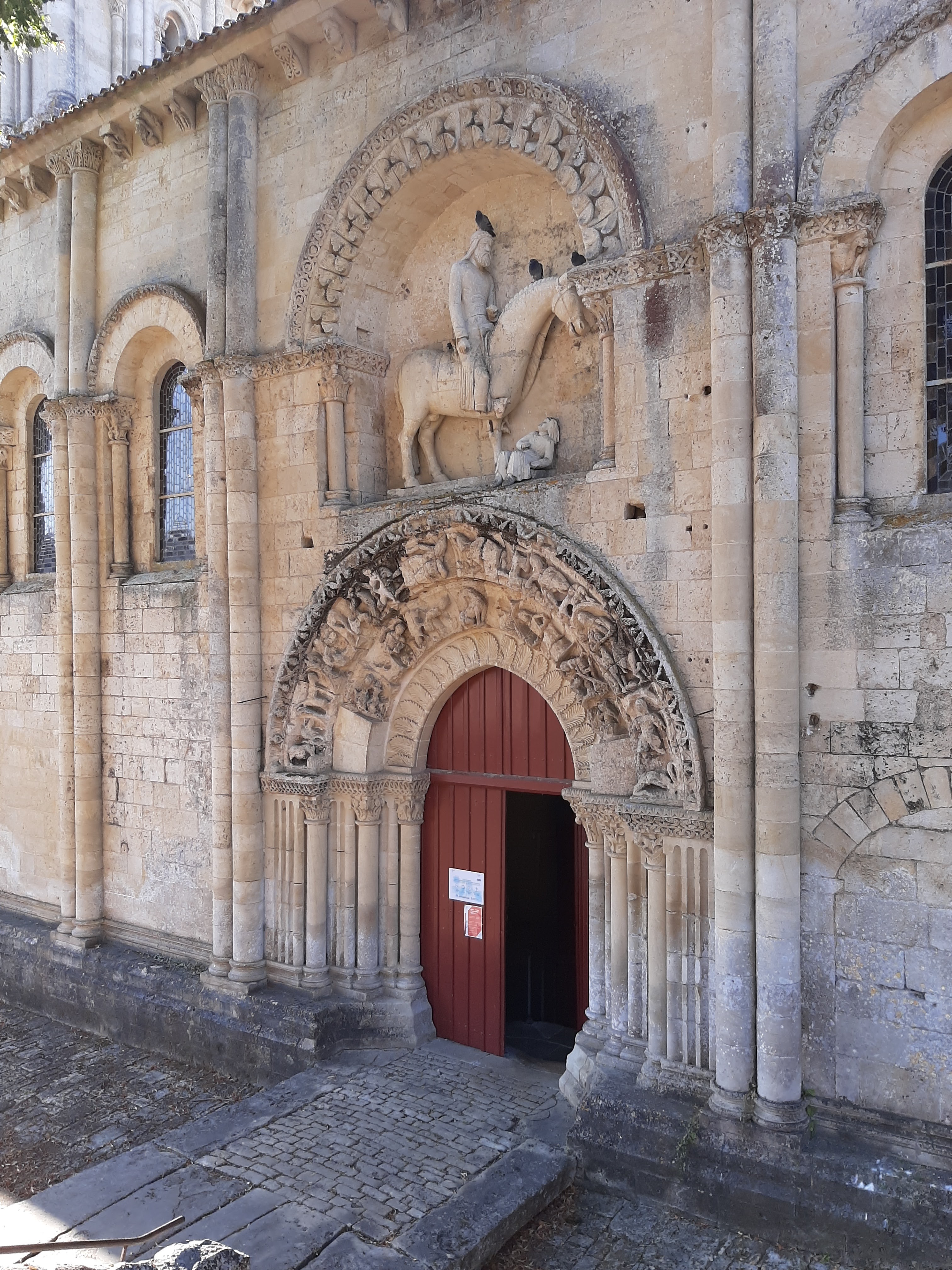 Belle église à Melle.. Le portail avec la statue de Jésus à cheval est surprenant