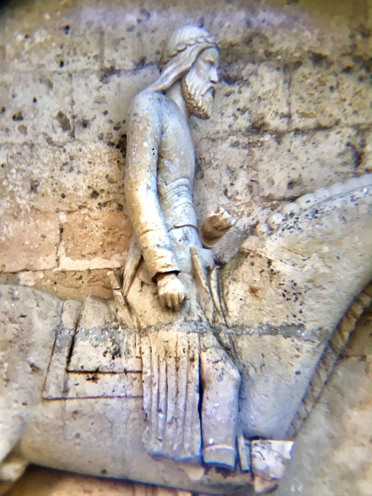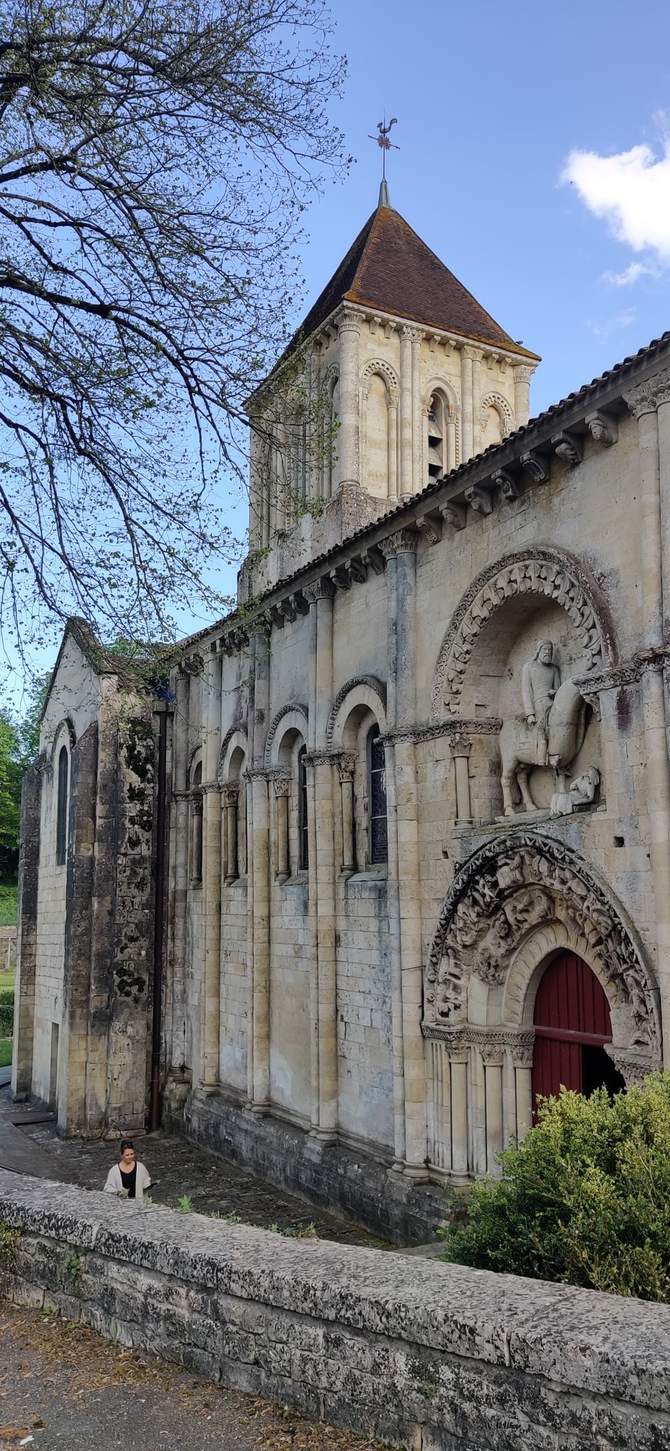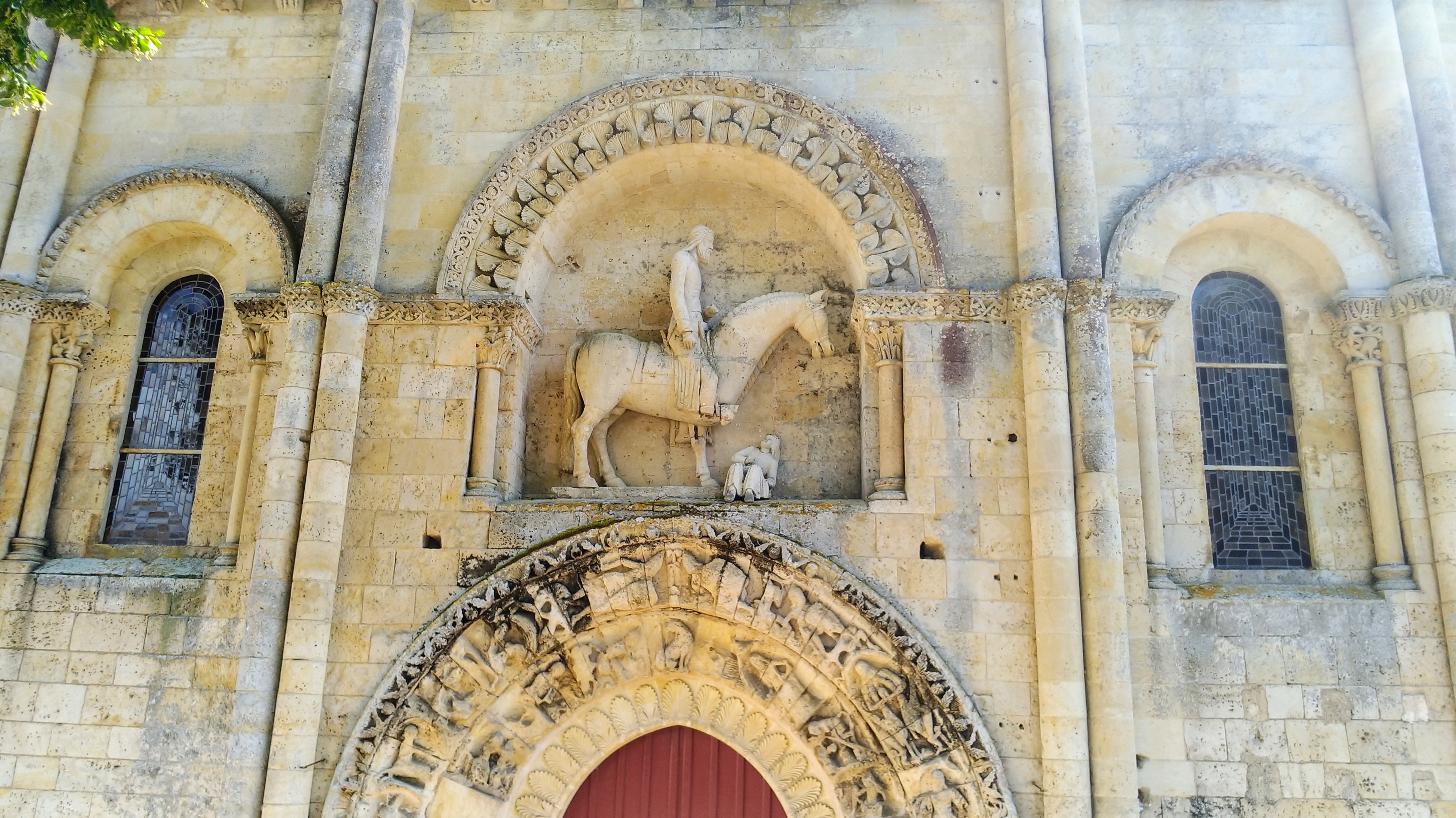 Belle église à Melle.. Le portail avec la statue de Jésus à cheval est surprenant