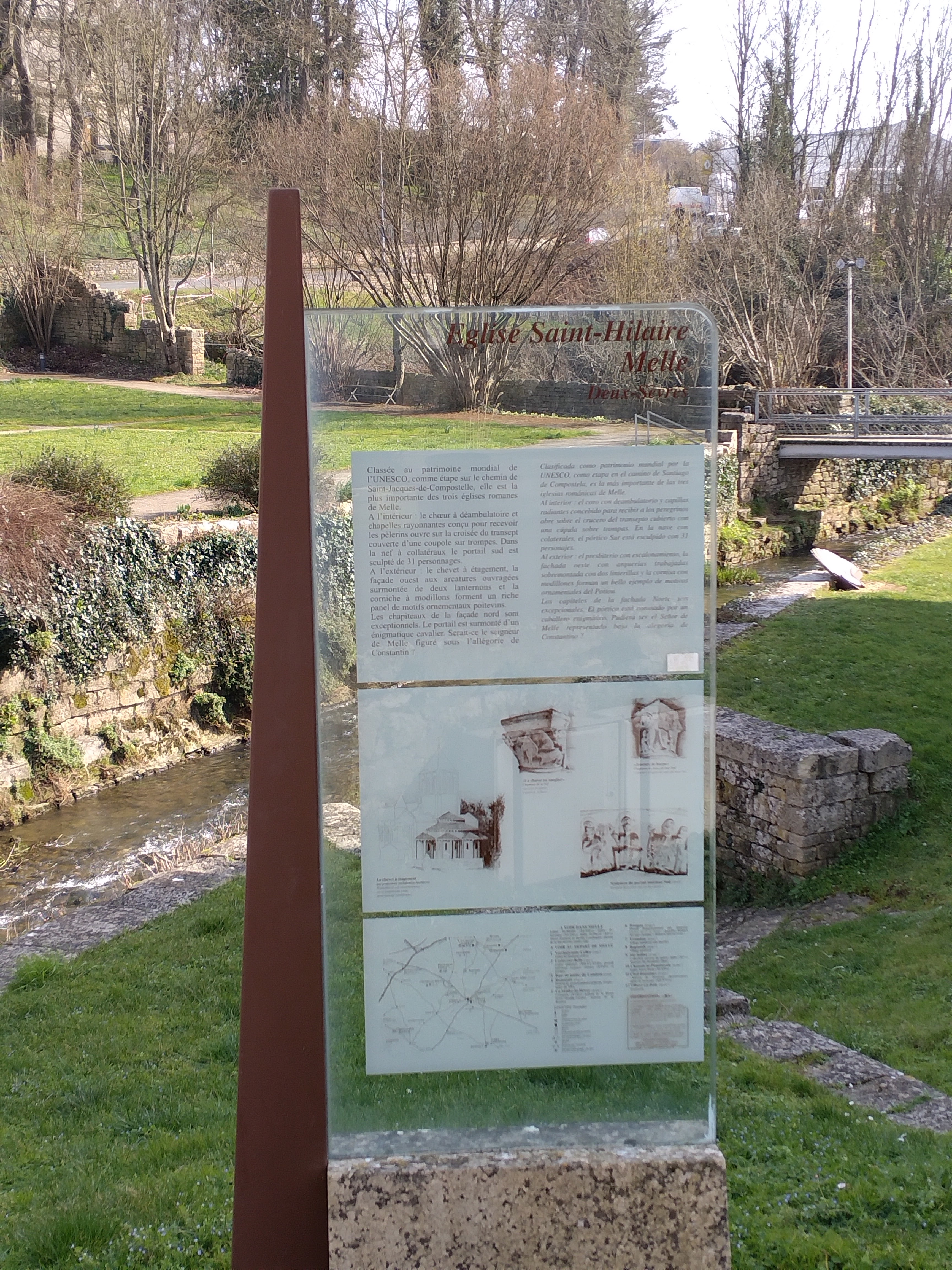 Une belle et ancienne église historique située sur le versant d'une vallée avec un autel moderne inhabituel. Le cadre paysager traversé par une petite rivière est de style français contemporain. Il y a une ou deux belles maisons et jardins au-dessus de l'église qui sont agréables à regarder. Traversez la route en contrebas de l'église et remontez à Melle par d'élégantes vieilles rues.