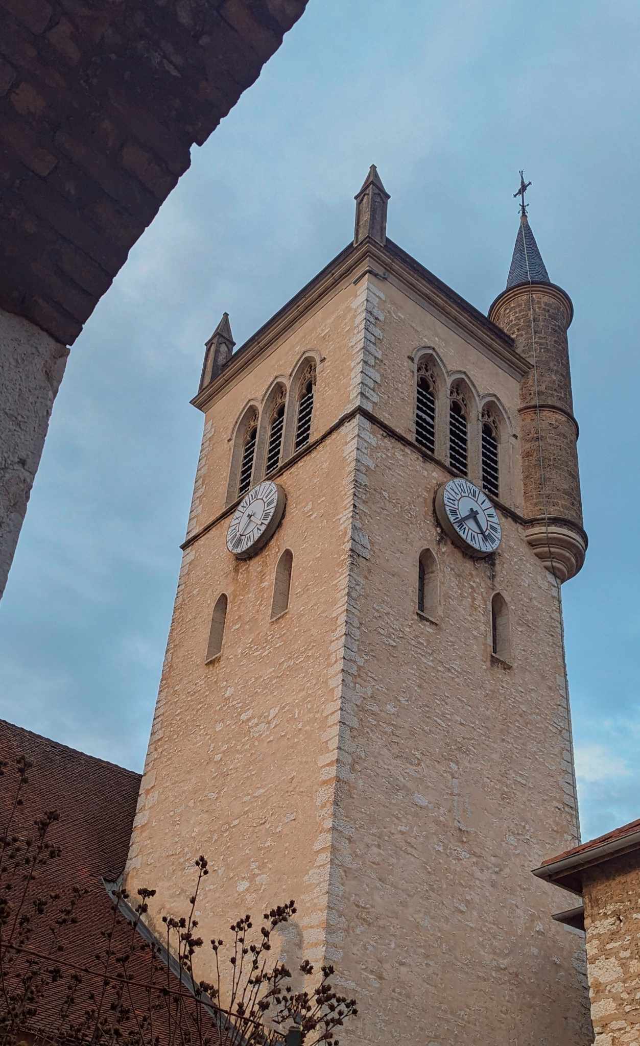 Église avec un curieux clocher dominant le (beau) village non loin du Donjon qu'il ne faut pas manquer...