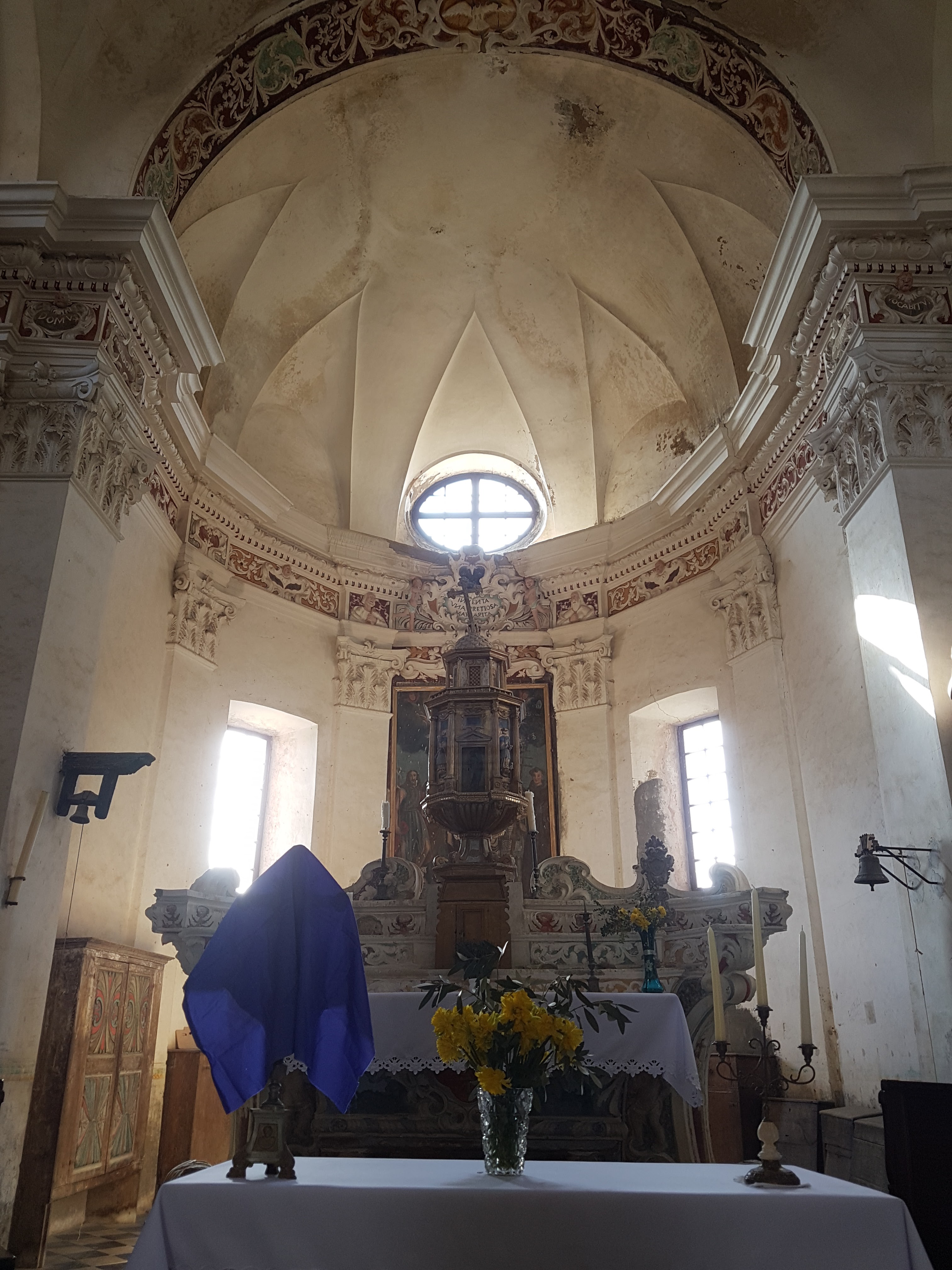 Les dimensions de cette église étonnent au premier abord vu la taille réduite du village. Avec sa décoration baroque, ainsi qu'à ses peintures aux couleurs vives réalisées par des artistes locaux, l'édifice démontre à lui seul que la Castagniccia fut jadis l'une des régions les plus riche de Corse.La région de la Castagniccia est la terre d'élection du châtaignier. Le châtaignier occupait 70% des terres cultivées de cette région au 18ème siècle. Le châtaignier existe en Corse depuis des millions d'années. Les Génois ont multiplié les châtaigniers en imposant à chaque propriétaire de planter, sous peine d'amende, 4 arbres fruitiers châtaigniers tous les ans.