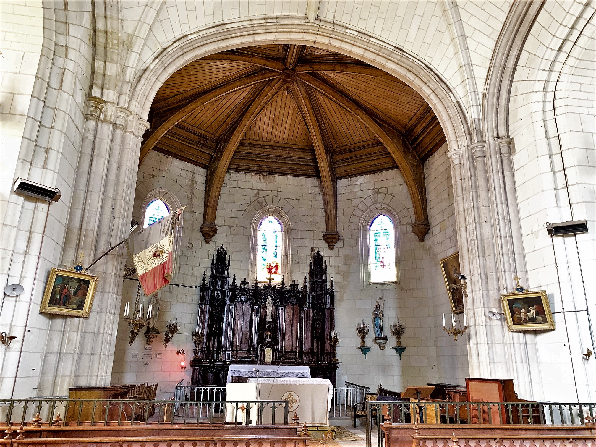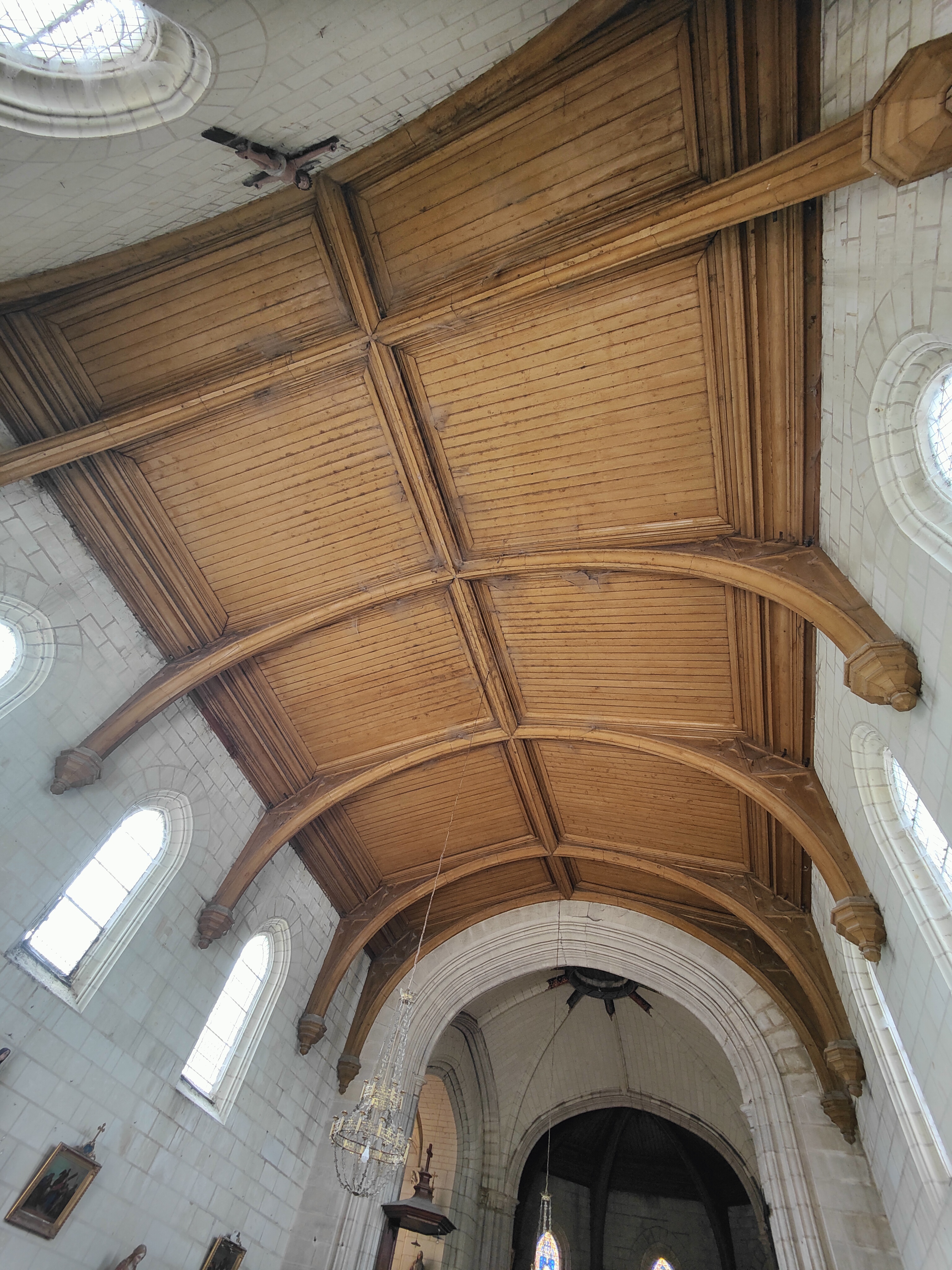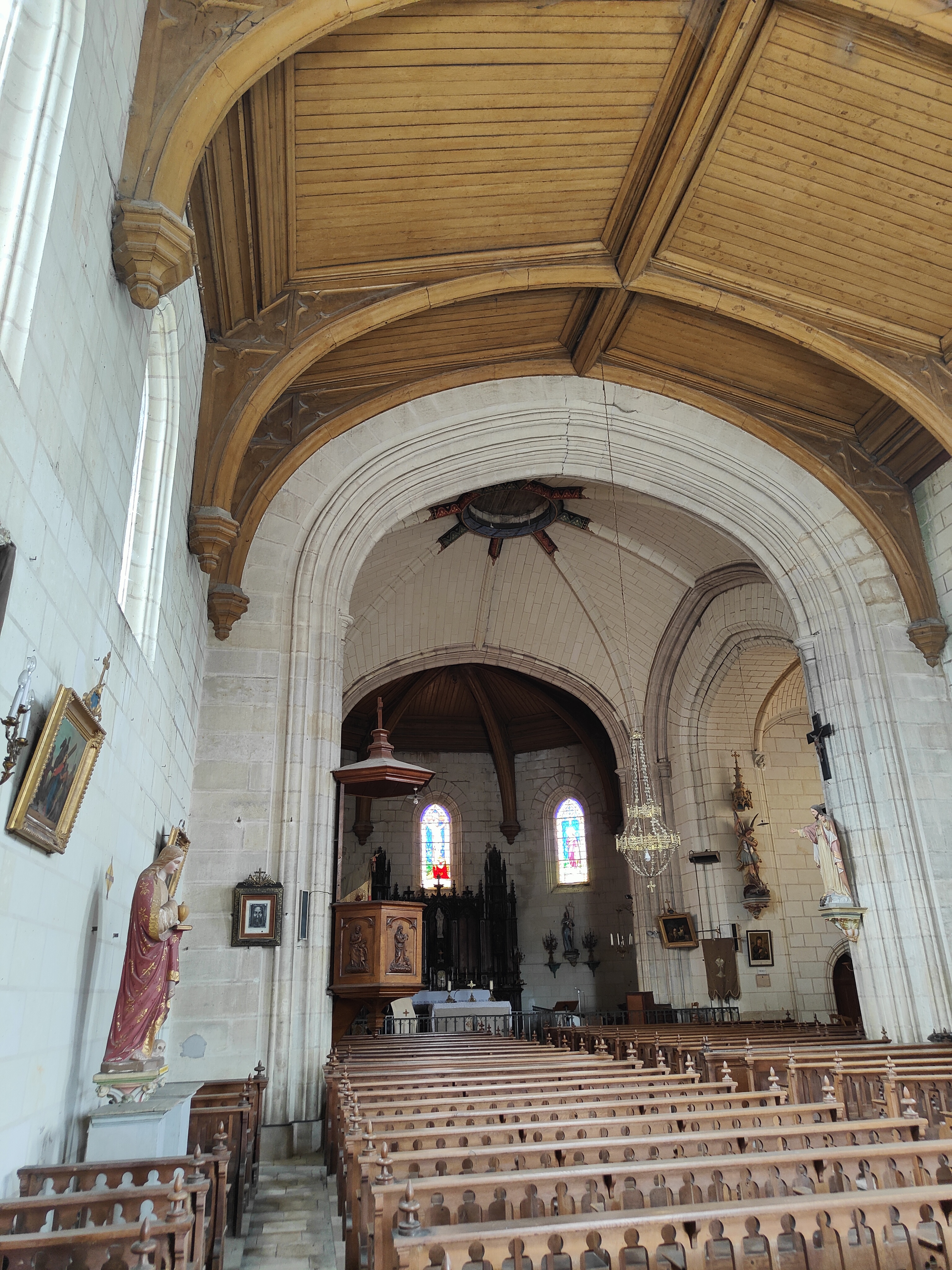 Une église que j'ai vu lors d'une pause (si vous faites du vélo le long de la Loire, le lieu est propice pour s'y arrêter), l'intérieur est très original, notamment son plafond. D'après un local, le plafond est une coque de bateau inversée (peu étonnant, les églises près des rivières où passent les marchands peuvent avoir ce genre de particulier), ensuite, l'orientation de l'église est liée à celui qui a payé une grande partie des travaux : pour le remercier, l'entrée se trouvait littéralement en face de chez lui