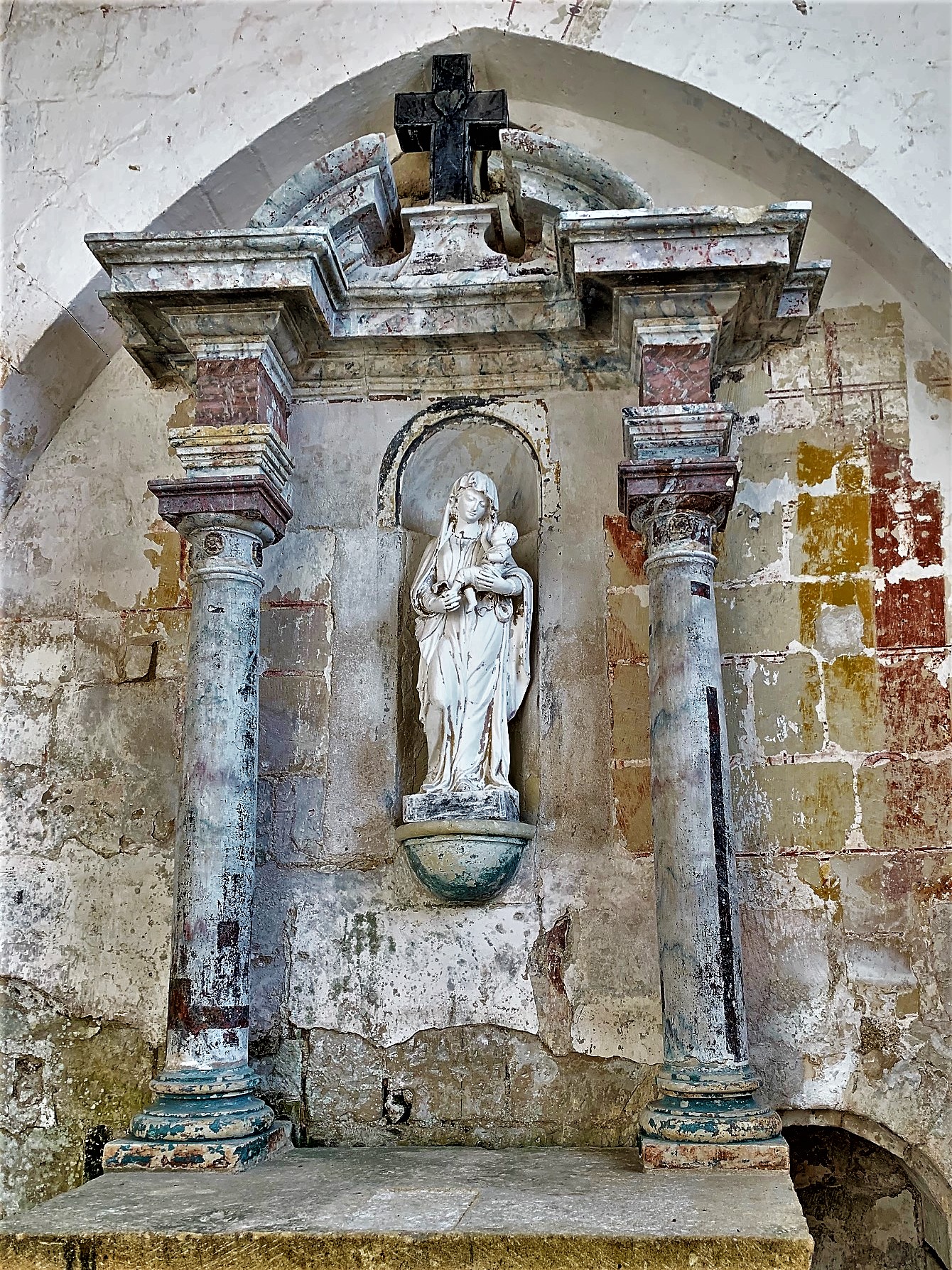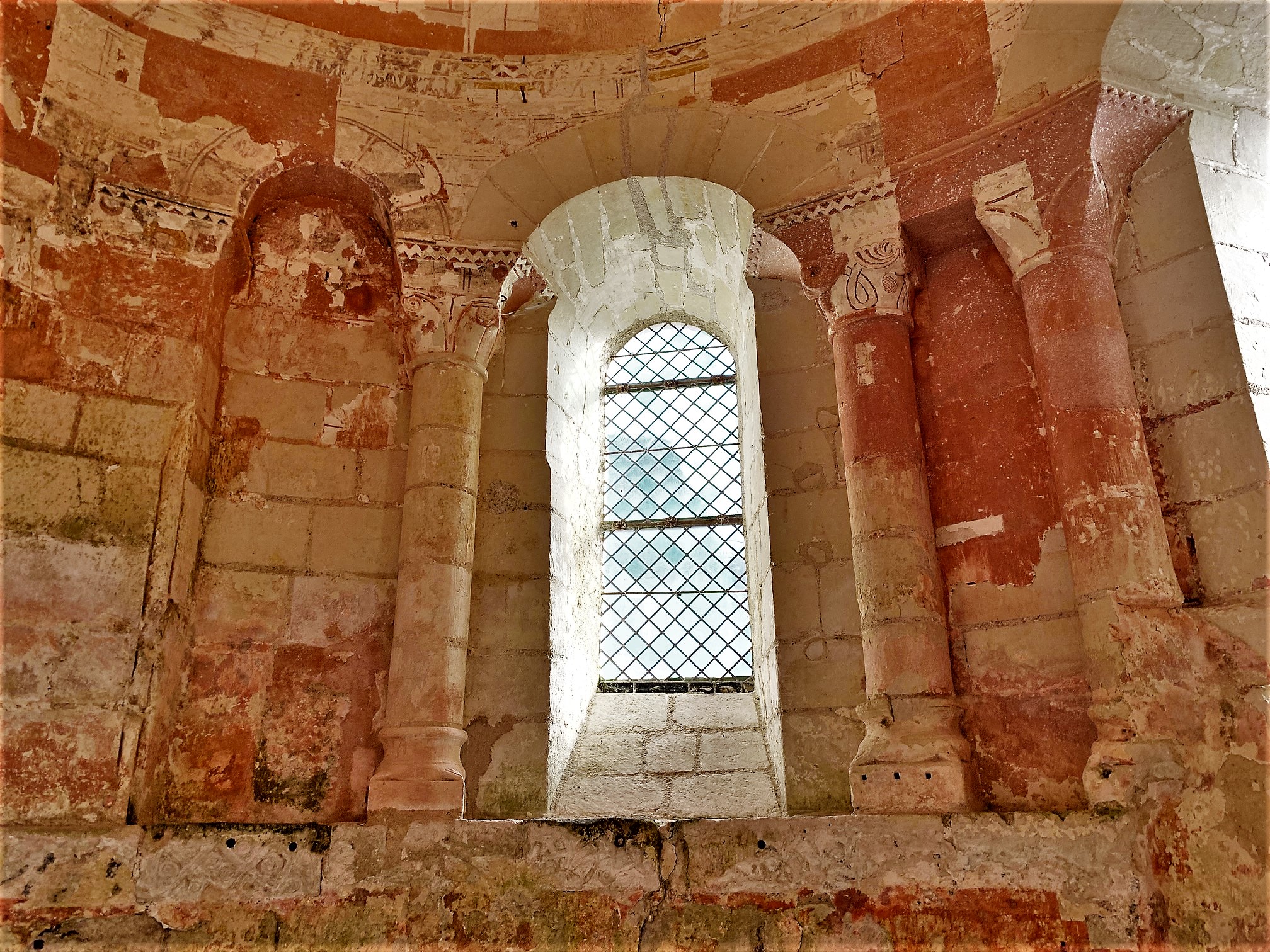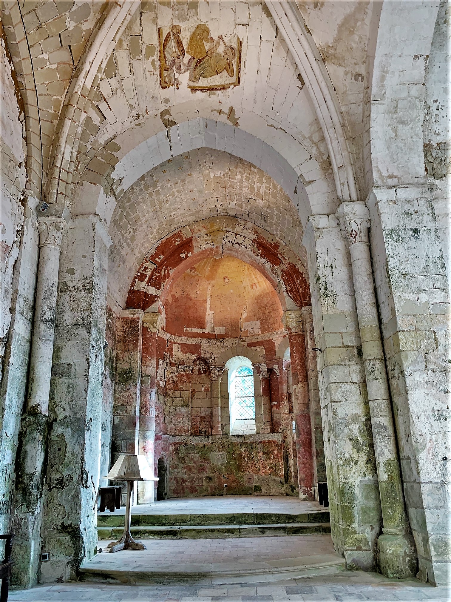 Une nef du 9ème siècle, un chœur du 12ème, une chapelle du 15ème et un petit musée lapidaire. Un monument, classé depuis 1913, situé à côté d'un cimetière, classé pour partie en 2012. Un lavoir intéressant est situé de l'autre côté de la route. Le cimetière était en travaux, je me suis concentré sur la découverte de l'église. Le dispositif automatique (superbe idée) de visites payantes, autorise une grande amplitude d'ouvertures. Il faut juste songer à s'équiper de monnaie : 0,50€, 1€, 2€ ou des billets de 5€ et 10€ sont les seuls moyens de paiement, et il n'y a pas de commerce à proximité. En 1863, presque mille ans après sa construction, l'édifice est désacralisé, échappe à la démolition, puis mis en vente aux enchères en 1865 pour un usage agricole ; la Société Archéologique de France en fait miraculeusement l'acquisition. Elle le revend en 1932 pour un montant symbolique de 100 francs (6000€ en pouvoir d'achat réactualisé) à l'Association des Amis du Vieux Cravant, qui en est le propriétaire actuel. Une visite intéressante à faire pour les amateurs de vieilles pierres et/ou de patrimoine, une nef du 9ème siècle, un chœur du 12ème, une chapelle du 15ème et un petit musée lapidaire.