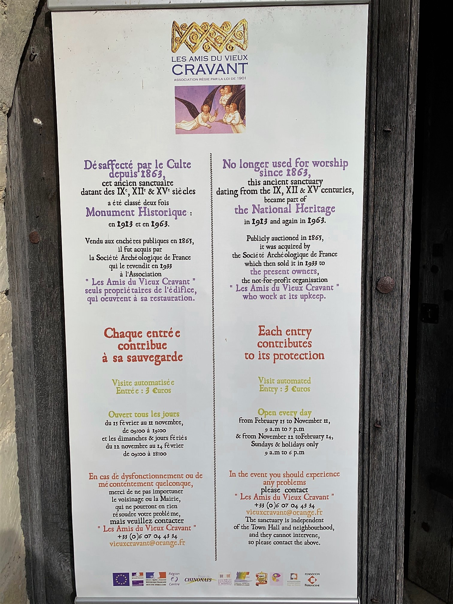 Je l'ai trouvé par hasard en revenant du château de Chinon. Je me croyais perdu, la route longue de plusieurs kilomètres traverse une forêt. Vous débouchez dans le village de Cravant et trouvez immédiatement le sanctuaire. Ce fut une découverte très agréable ! C'est un joyau d'histoire que je recommande à tous les fans du passé. Mes sincères félicitations à tous ceux qui ont travaillé à la restauration.