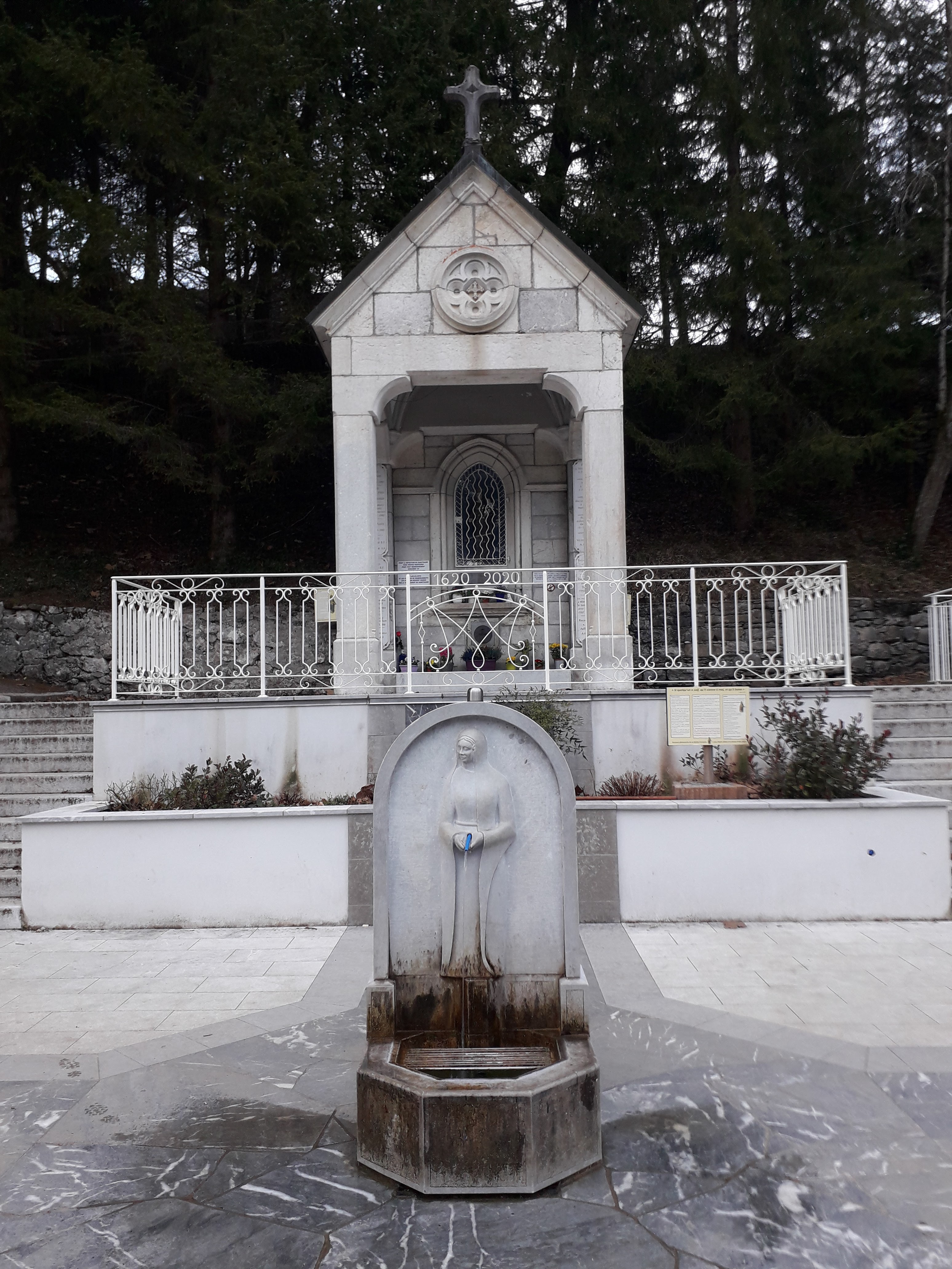 Un lieu pour se recueillir.ce jour était le jubilé des 400ans avec une messe en pleine air et un circuit le long du chemin de croix et à l Eglise. Une fontaine coule et est à disposition des visiteurs .l eau serait bénéfique et guérisseuse.