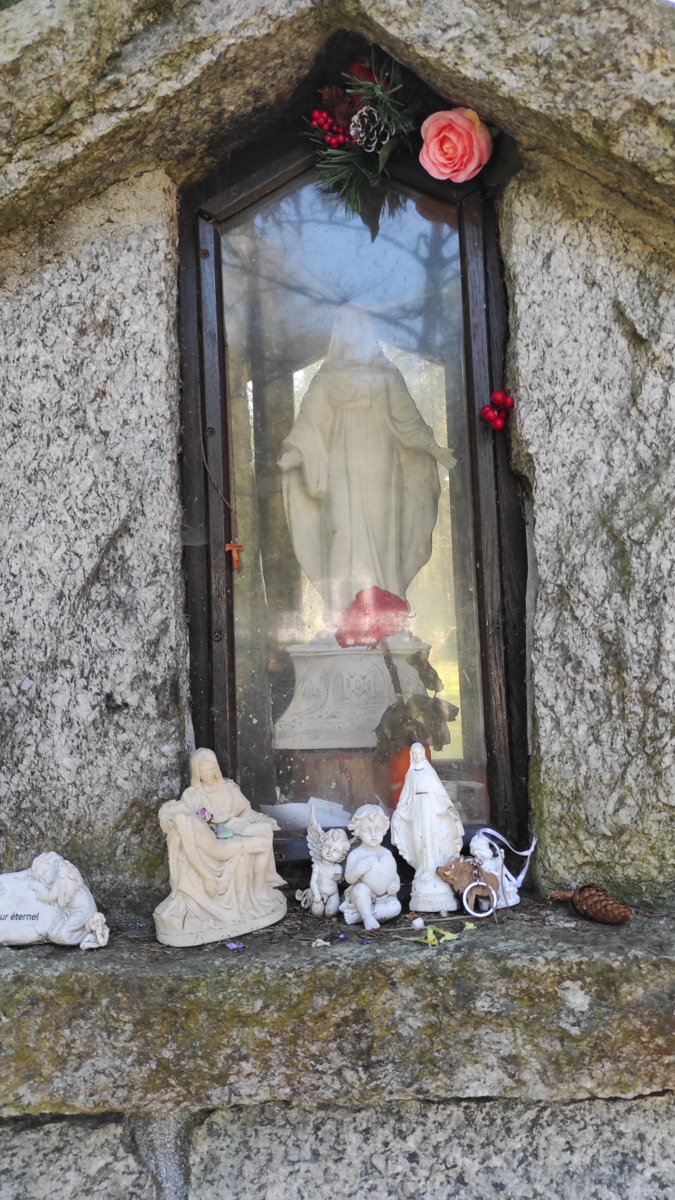 Havre de paix ! Croyant ou athé, la chapelle est l'étape première, l'atmosphère y est spirituelle. Empruntez le chemin qui descend à la source, quelques dizaines de mètres pour découvrir une source dite miraculeuse, de nombreux mots sculptés dans le marbre en témoignent. Miraculeuse ou non, elle est fraîche toute l'année, le lieu quant à lui est miraculeux... Sous les yeux de la Vierge entre les sapins et le ruisseau, on y vient déposer ses soucis, se désaltérer, lire ou se reposer et on repart différent, apaisé, rechargé. Un lieu particulier, où l'on croise des personnes de tous les horizons, chargés du poids de leur émotions et de bouteilles vides à la descente et qui remontent allégés de certains sentiments mais alourdis de quelques litres d'eau de source. A voir, goûter l'eau et à savourer le lieu