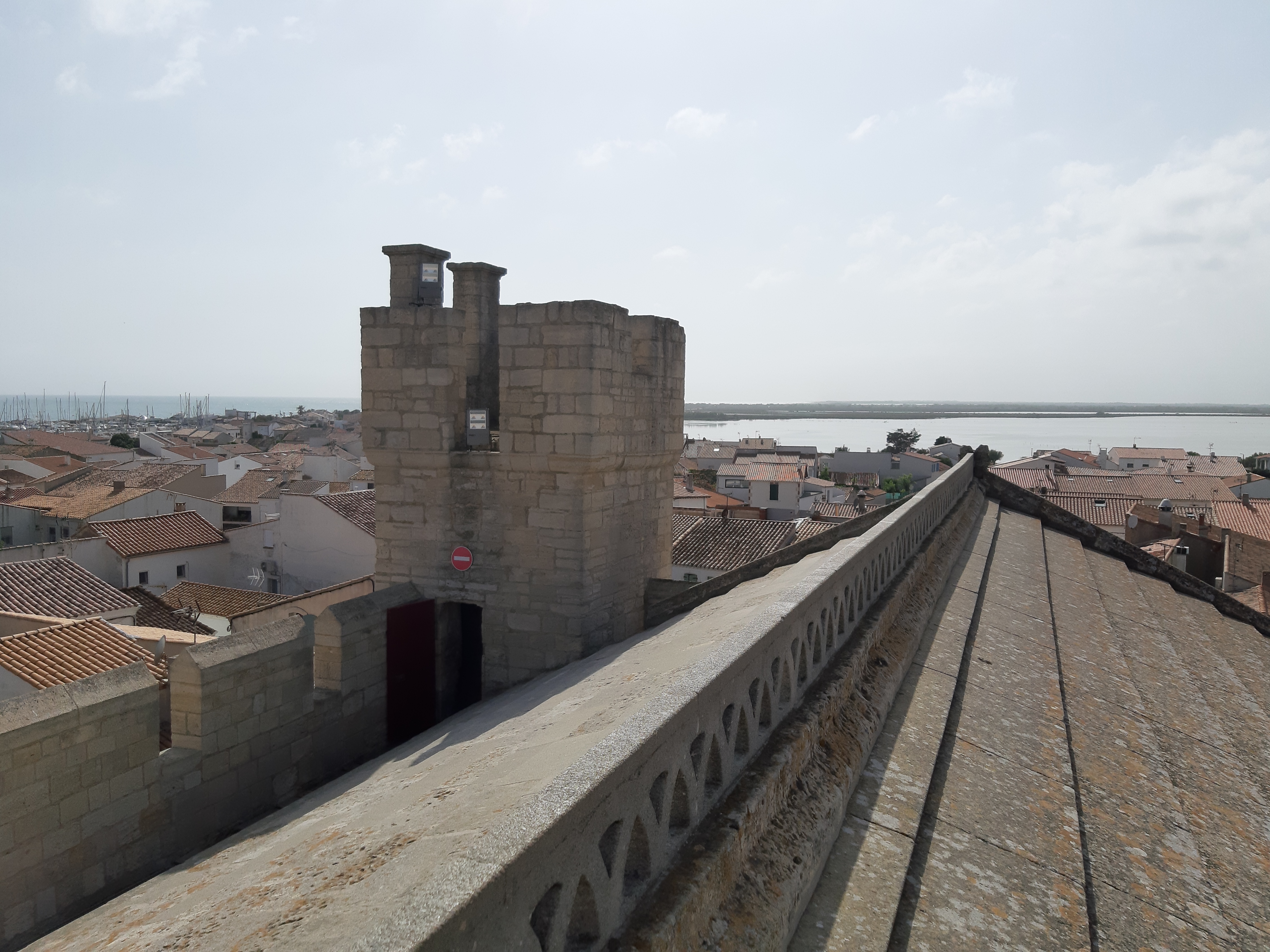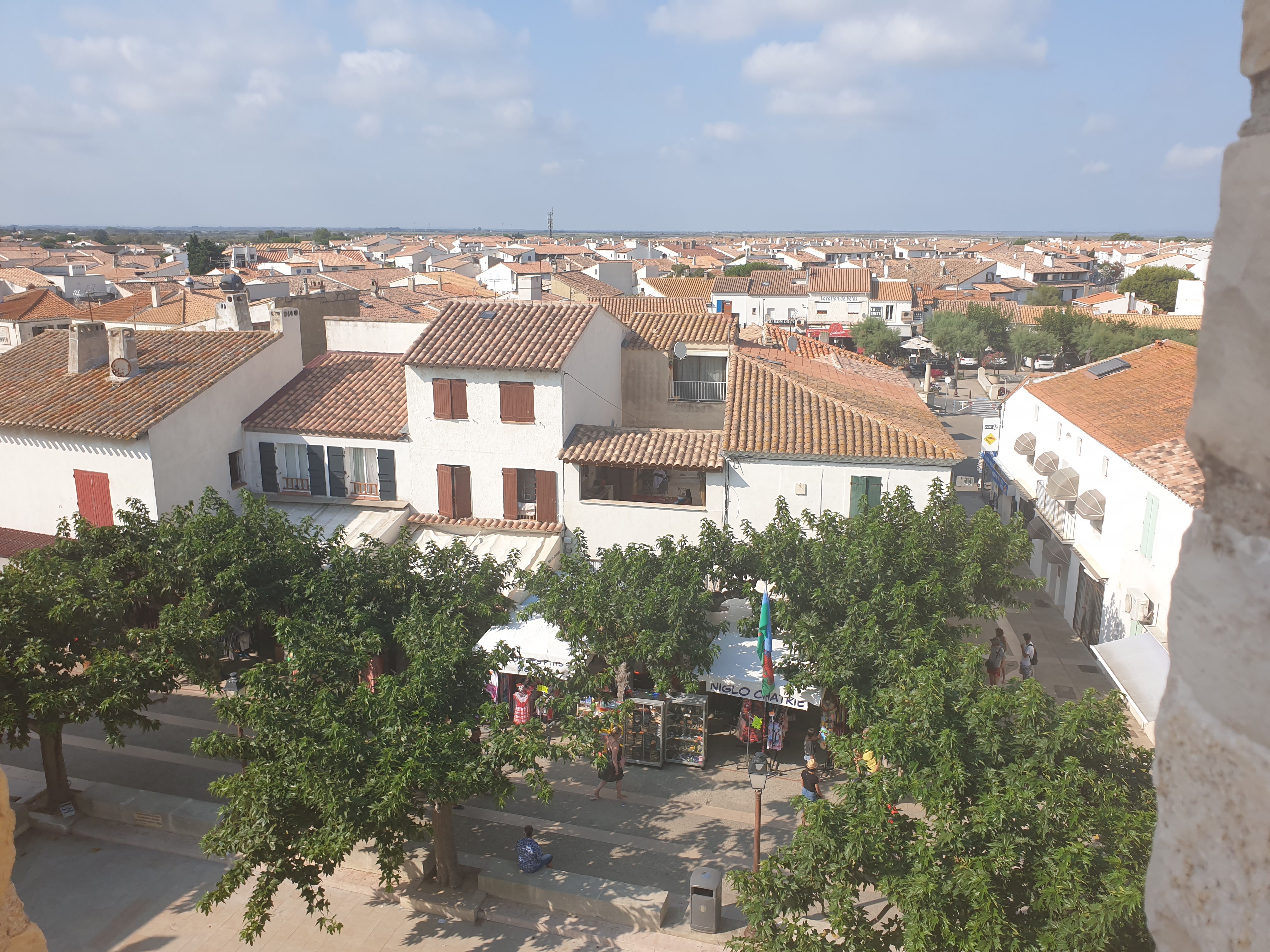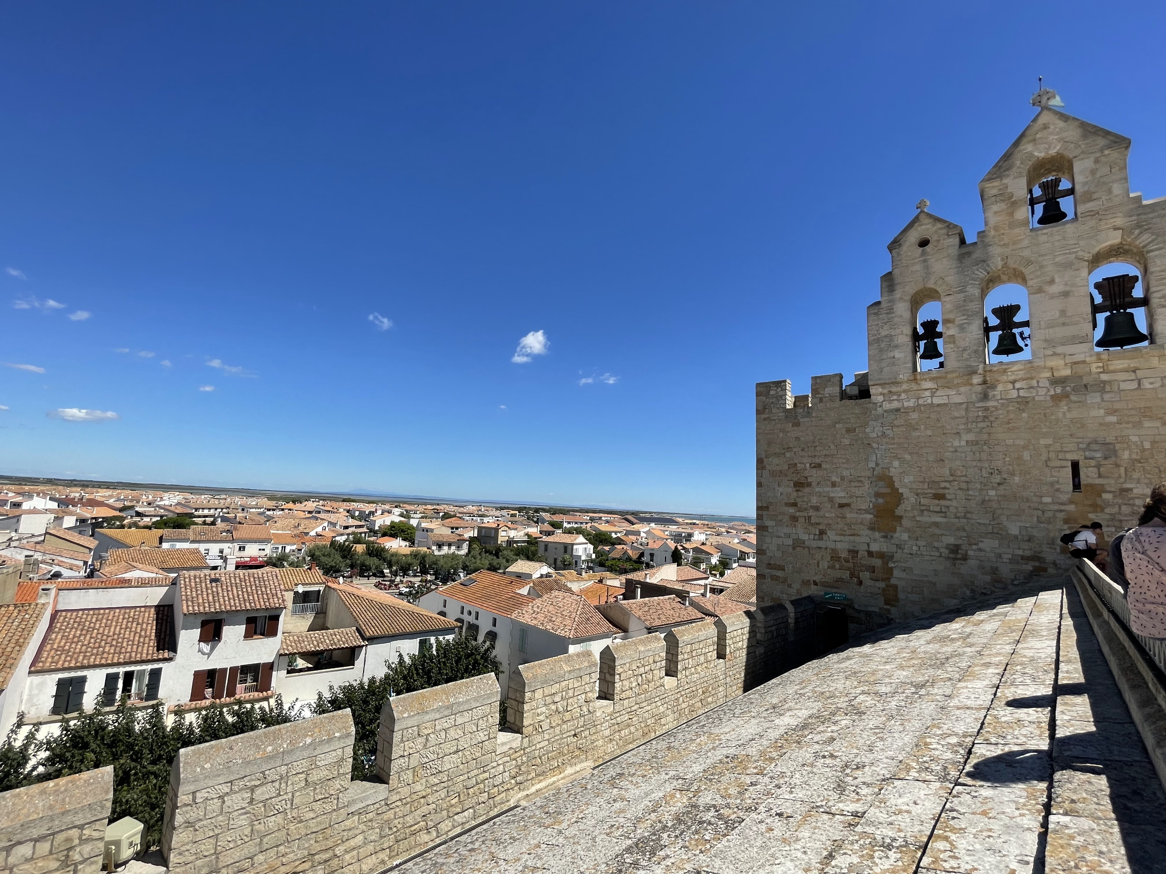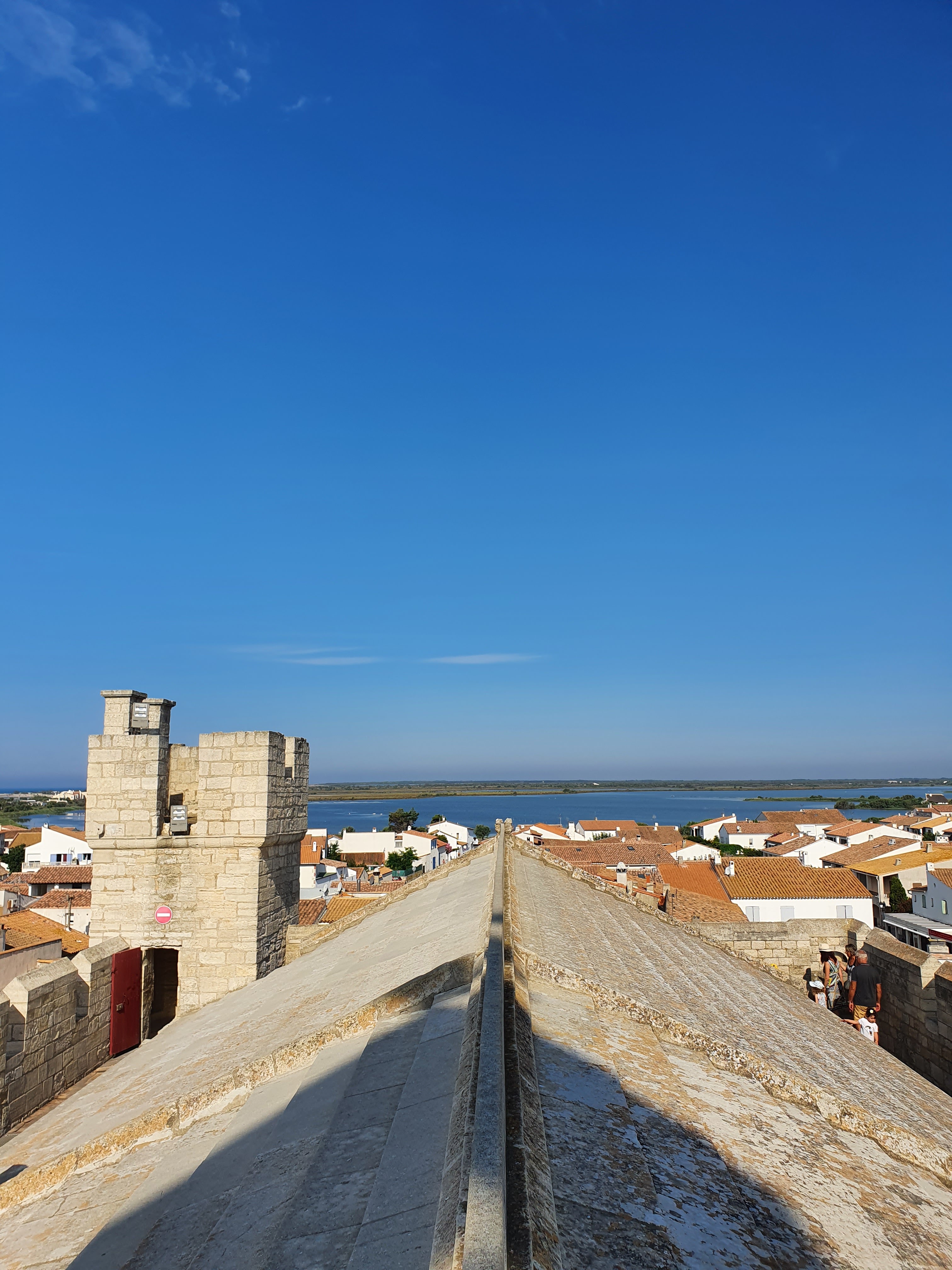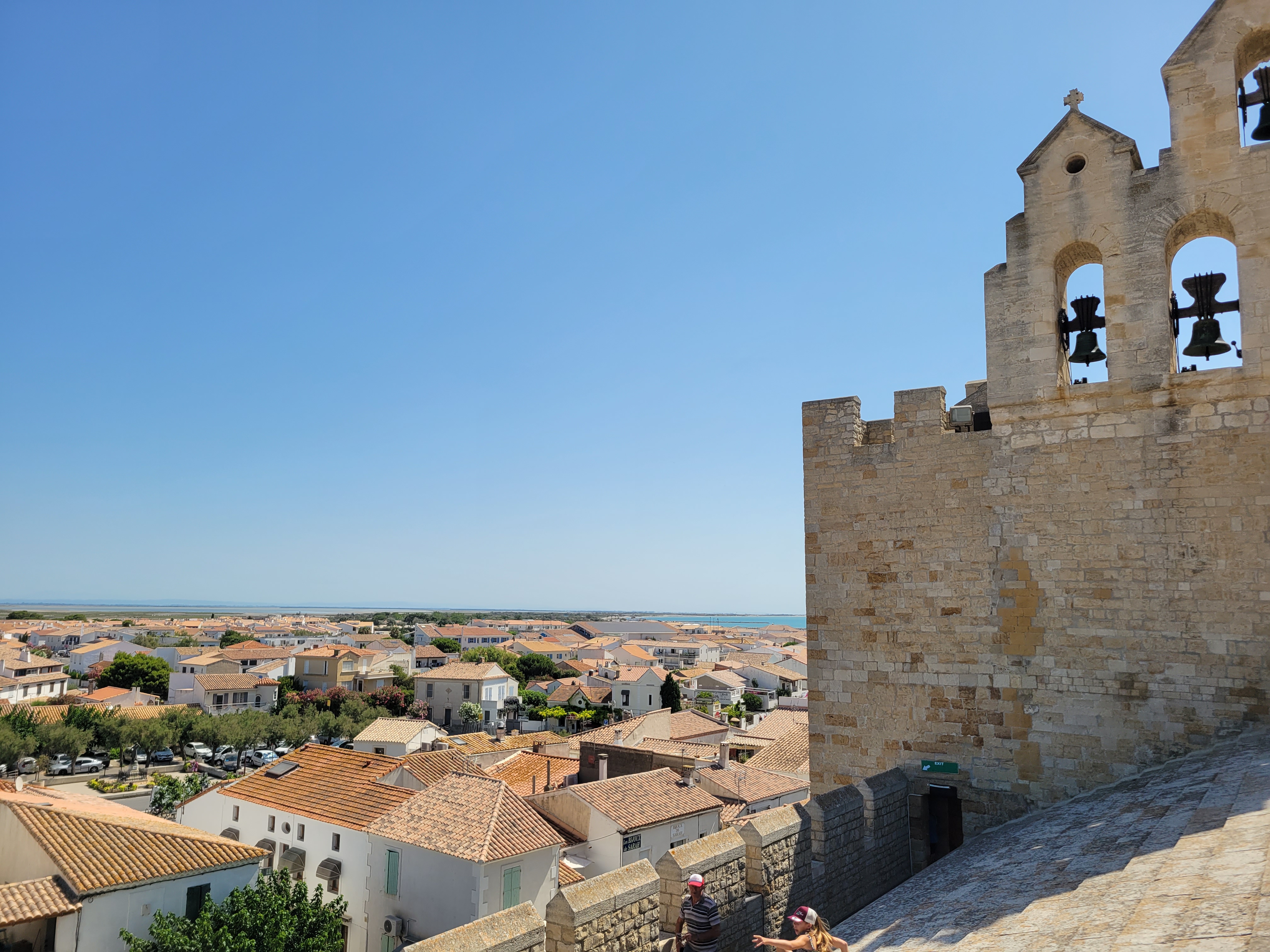 belle vue au sommet de l'église. vous pouvez même grimper sur le toit ! c'est un joli point de vue à sainte maries de la mer