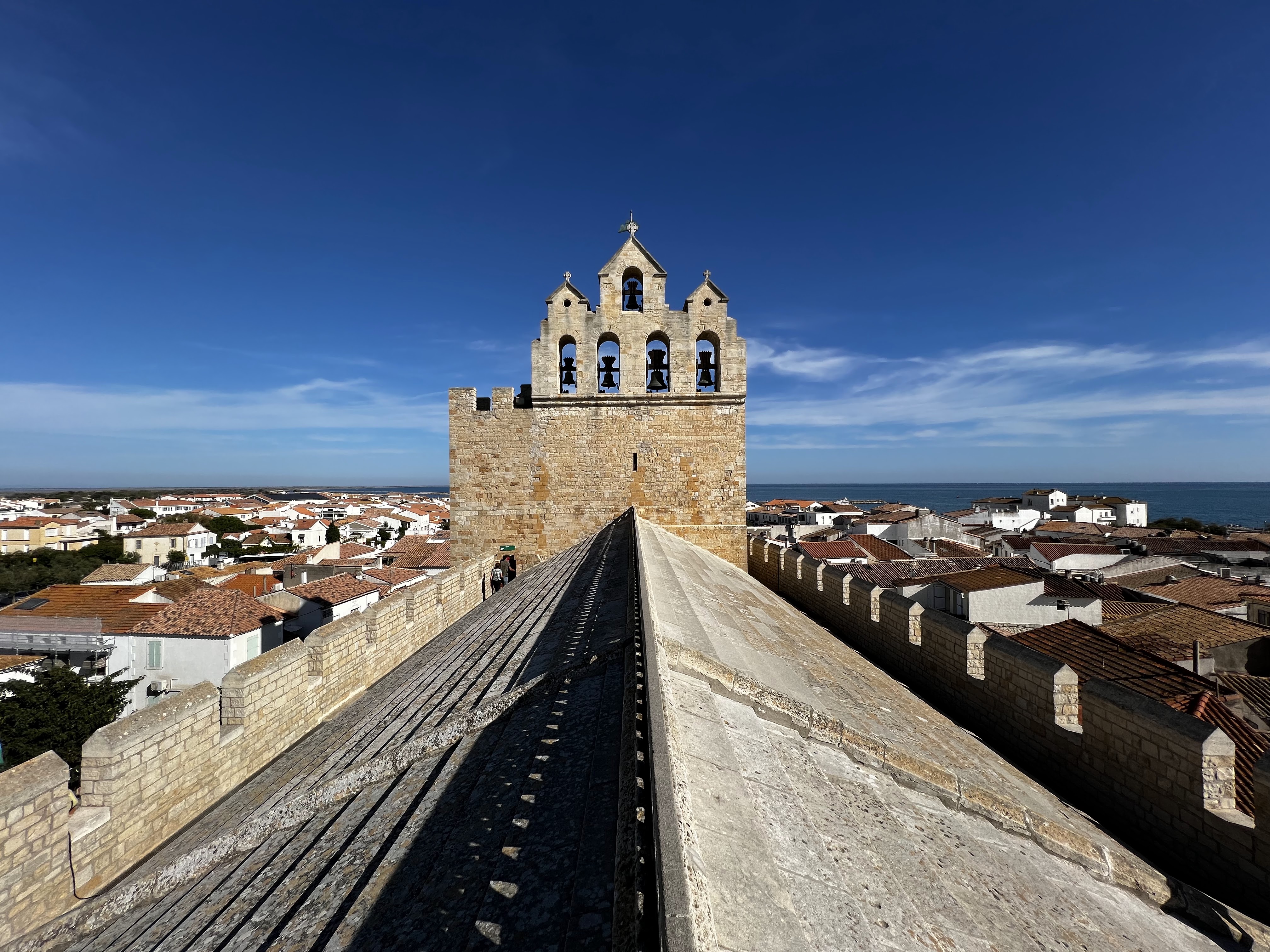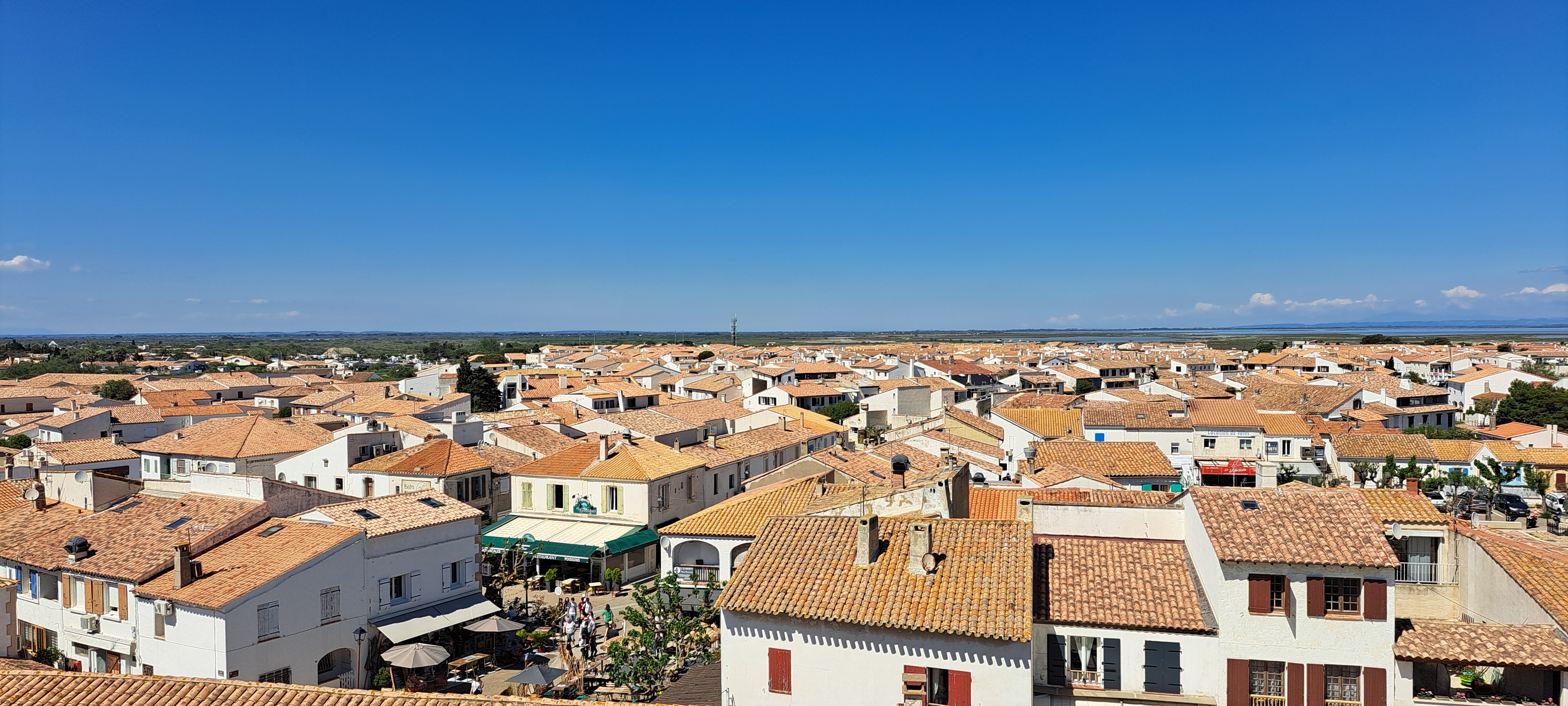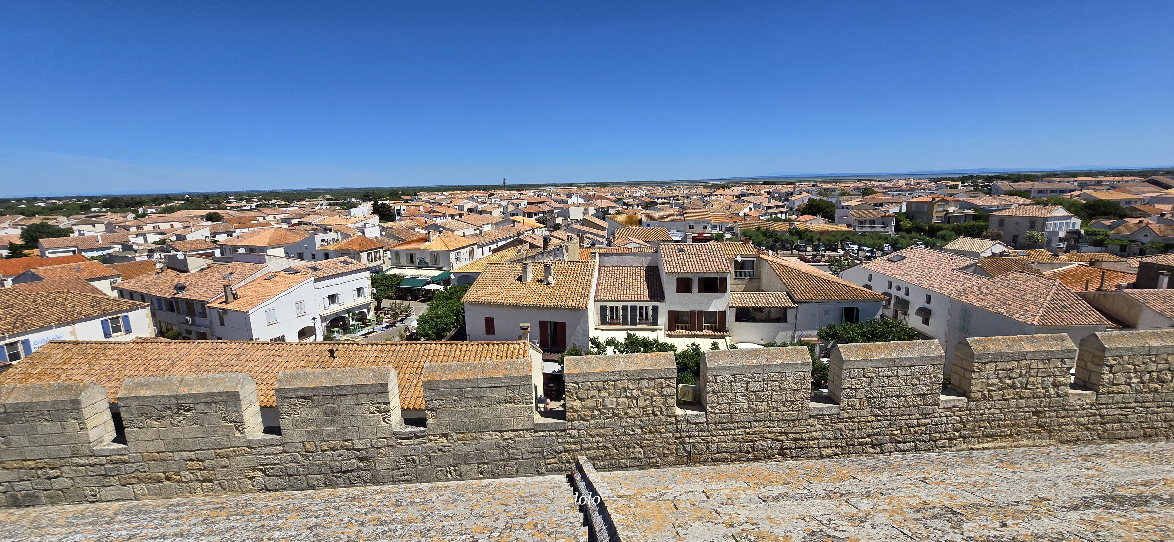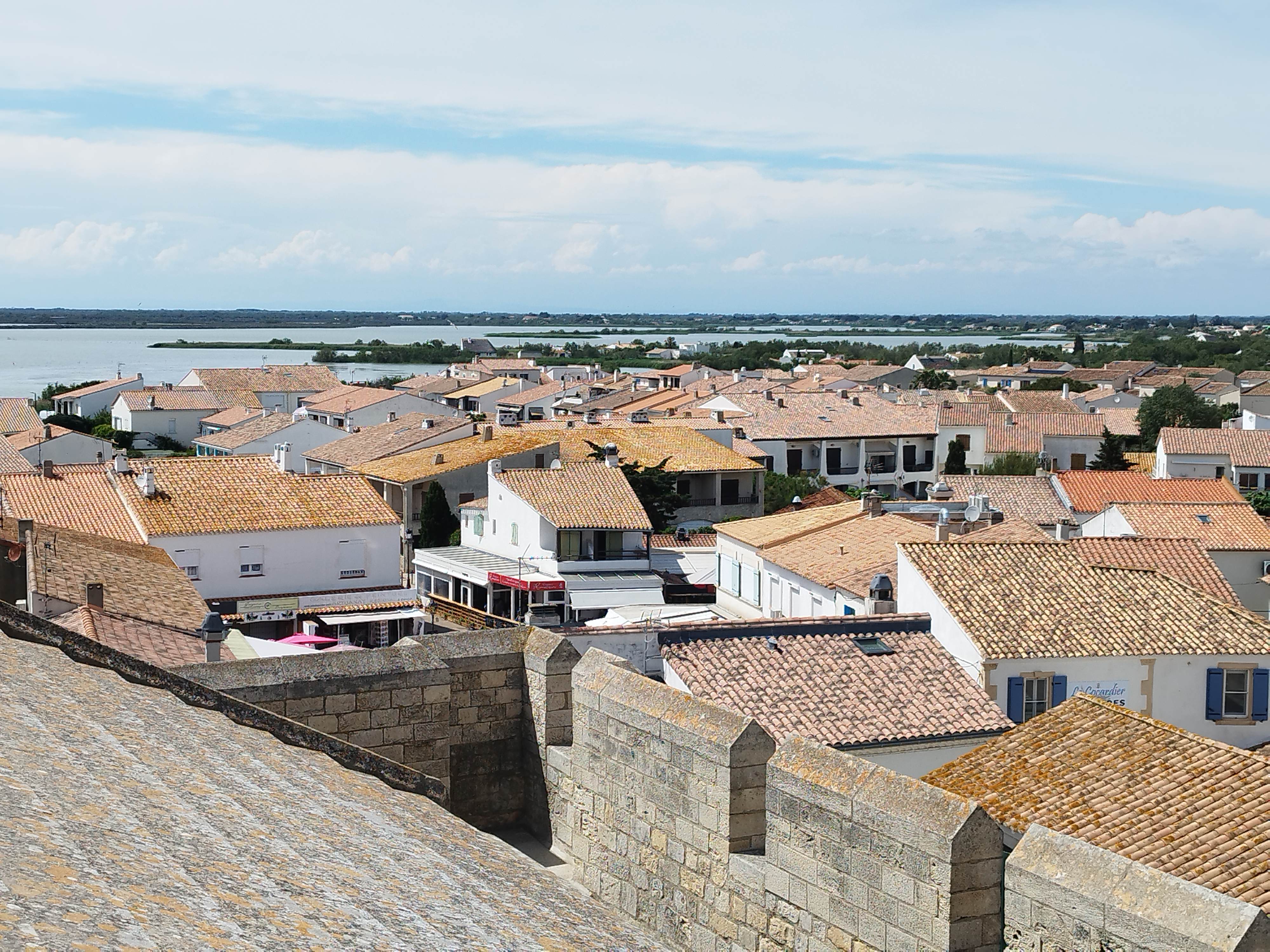 belle vue au sommet de l'église. vous pouvez même grimper sur le toit ! c'est un joli point de vue à sainte maries de la mer