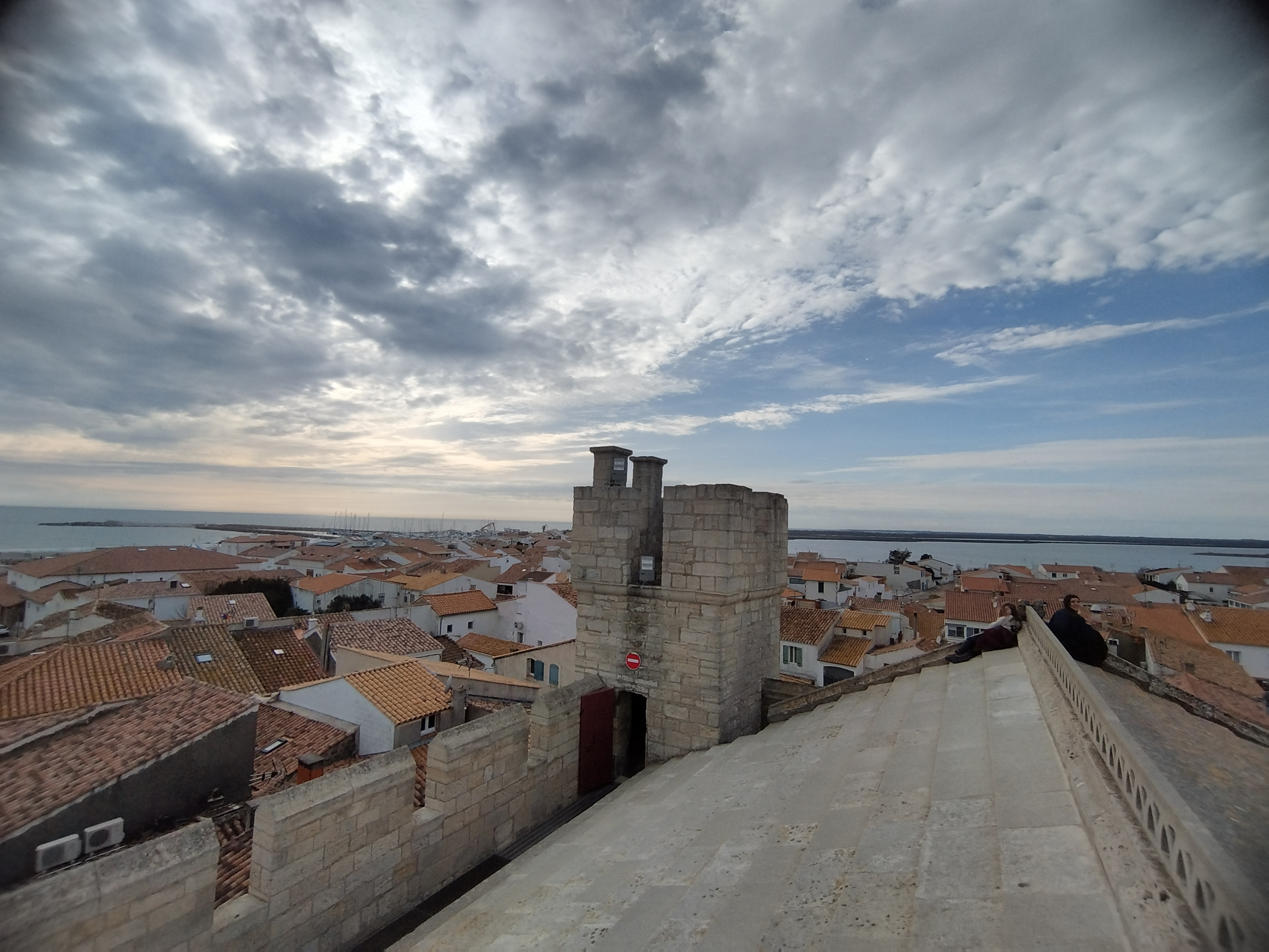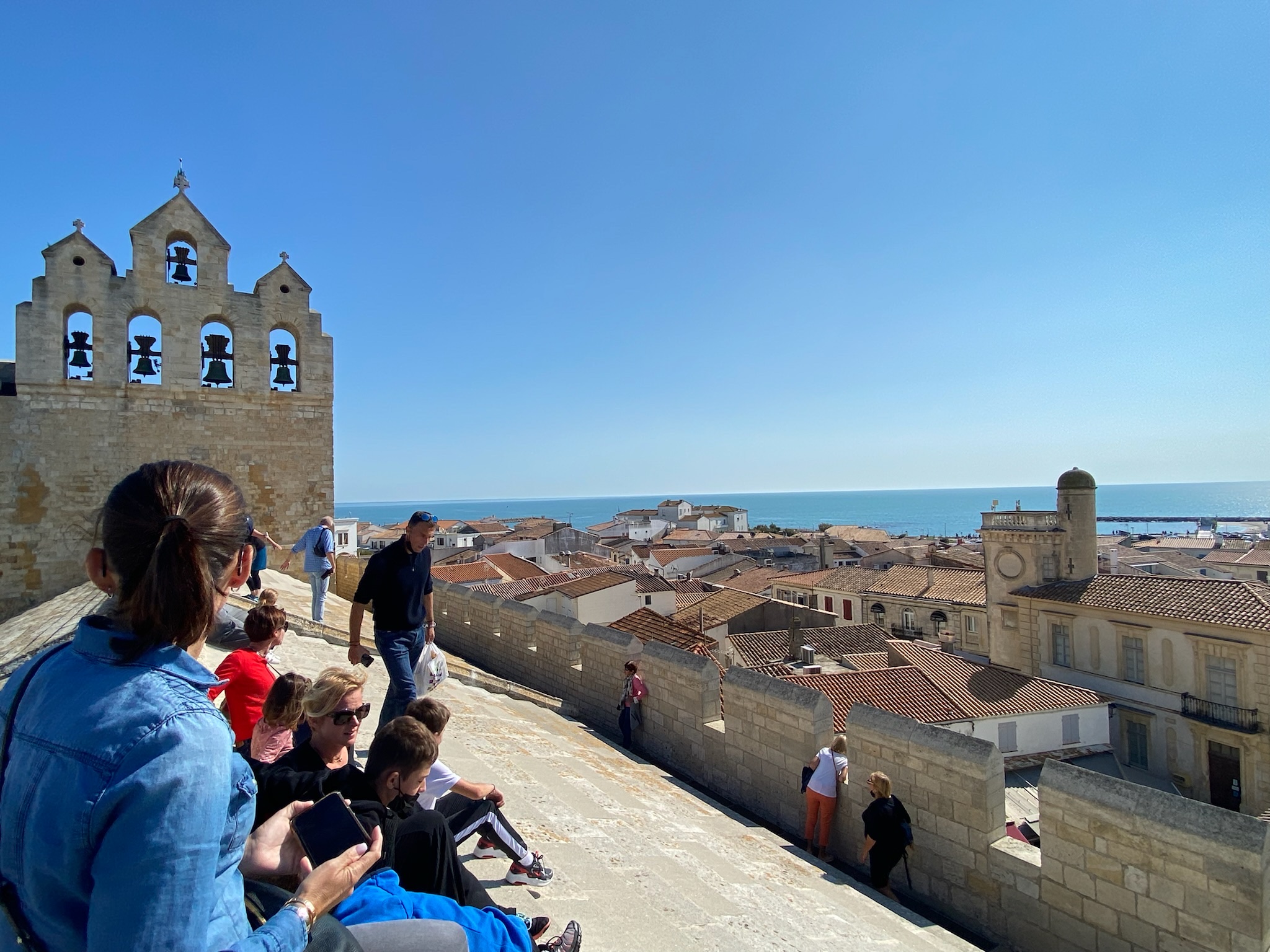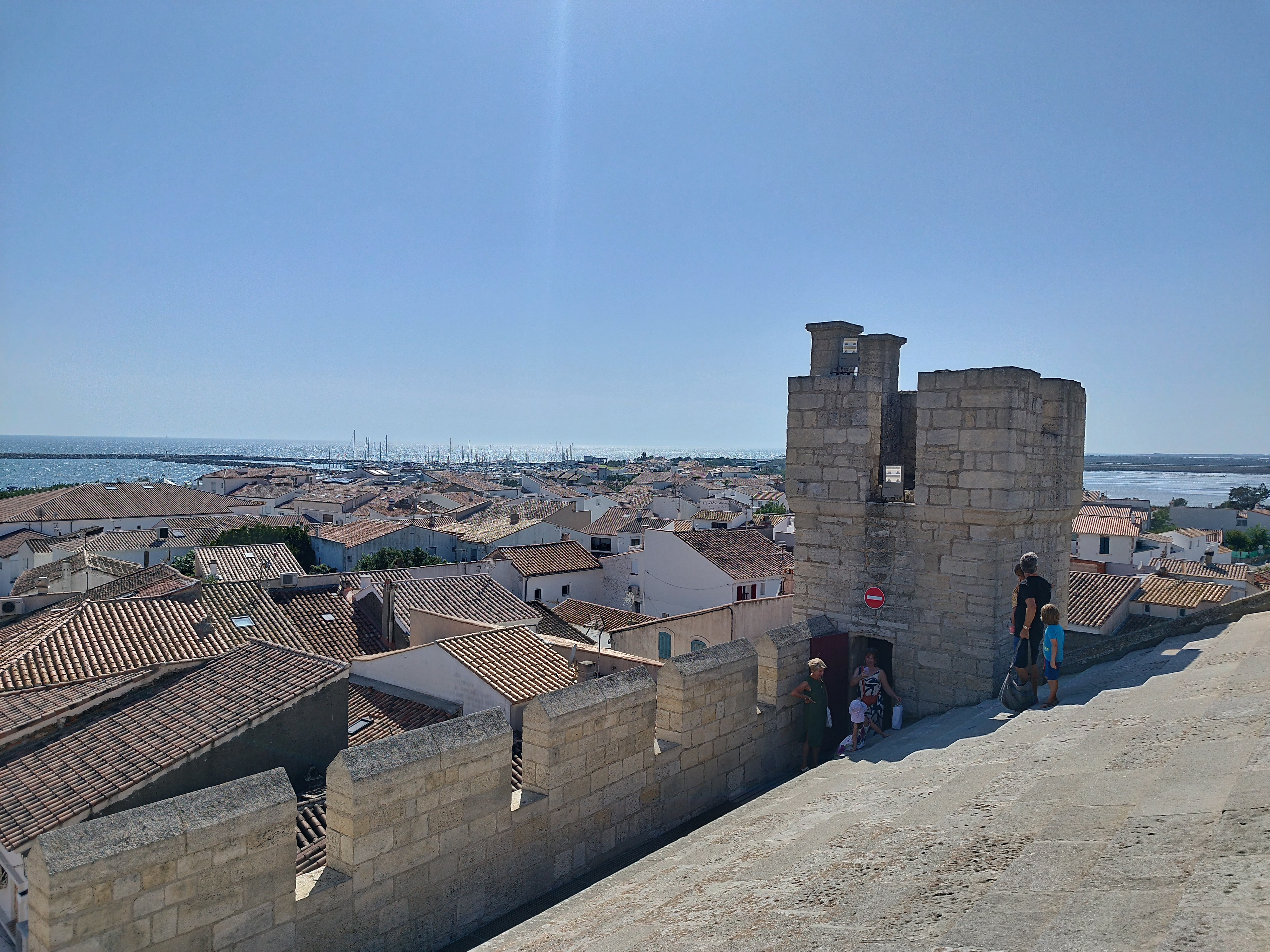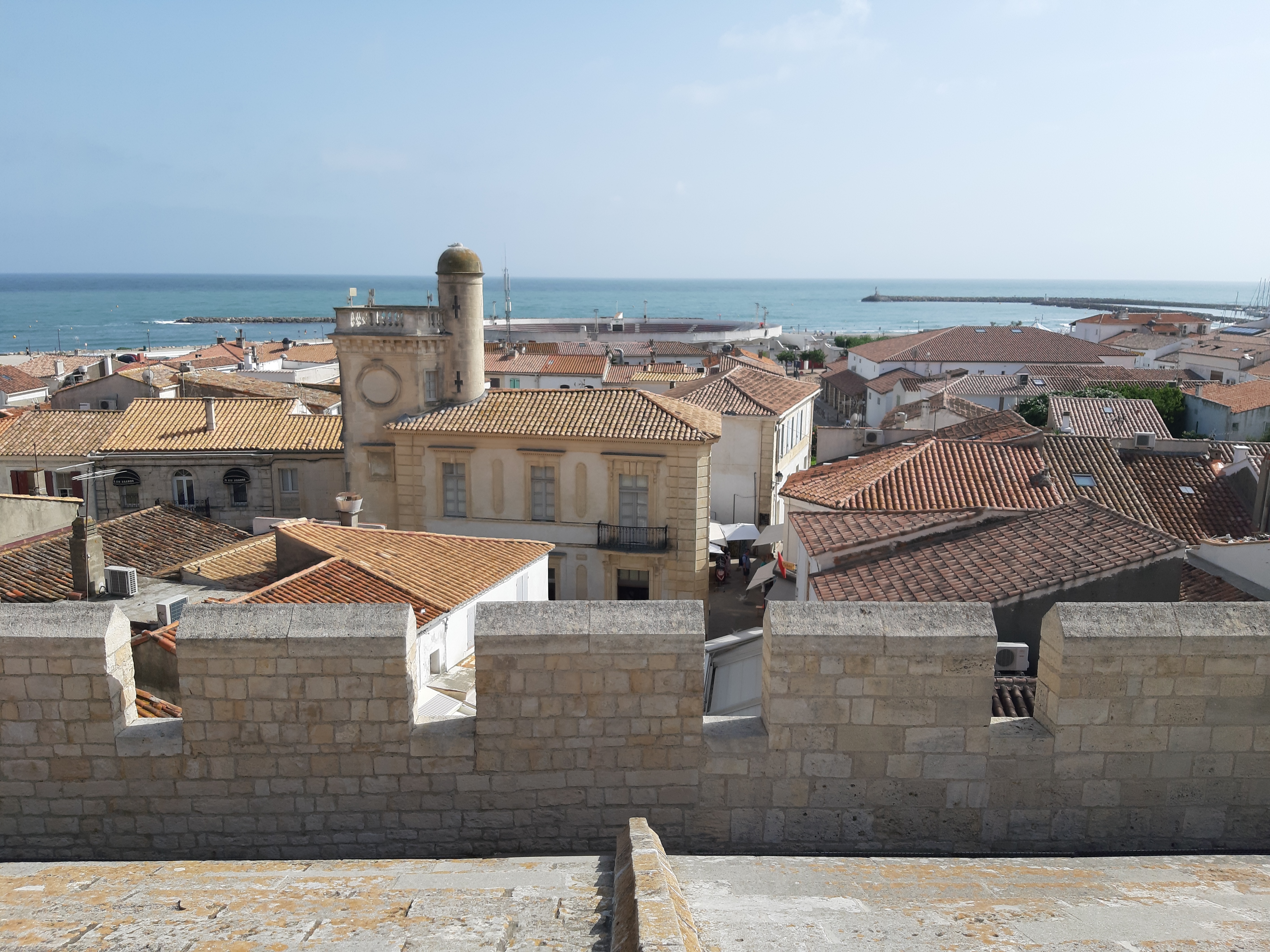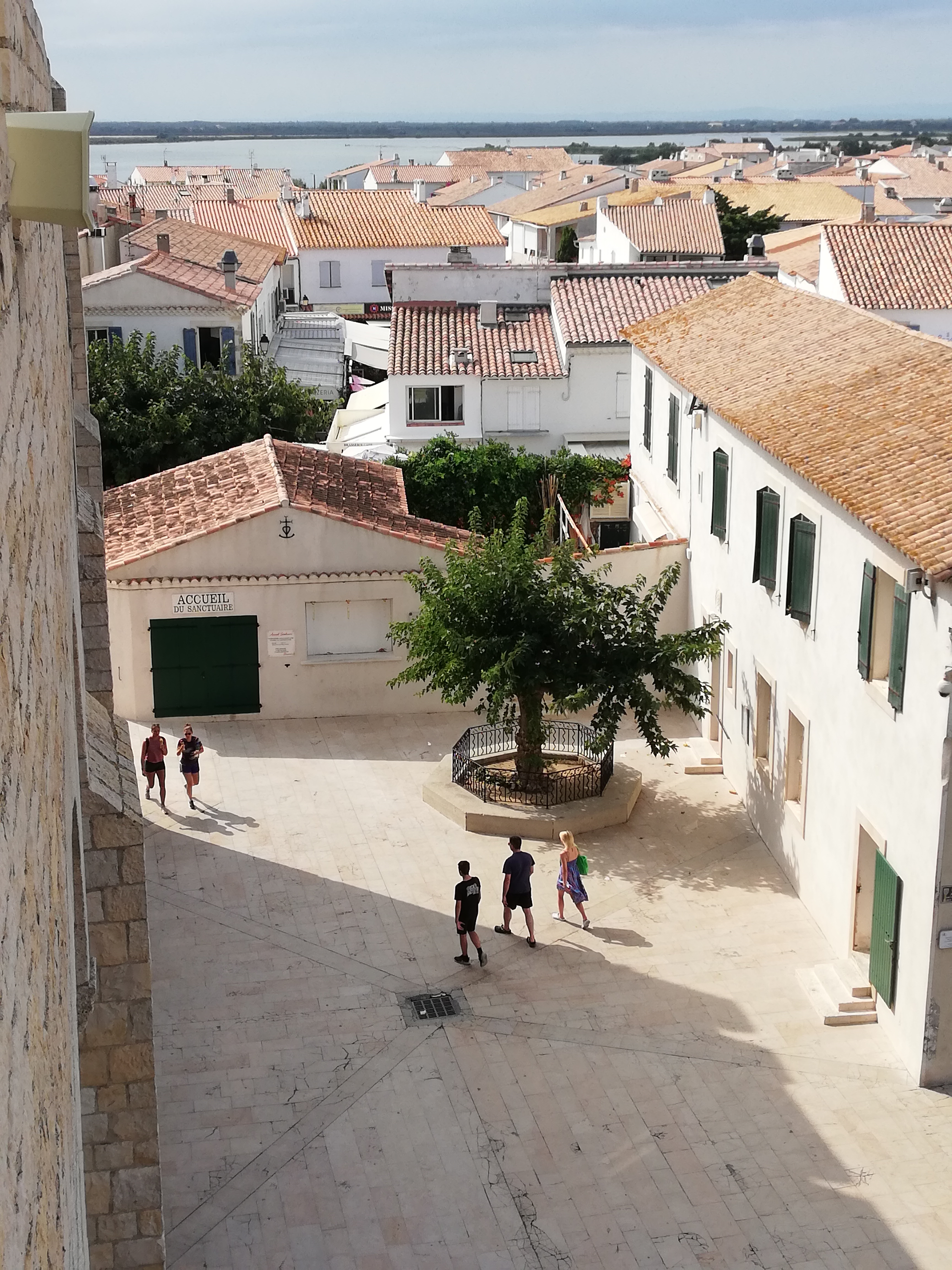 belle vue au sommet de l'église. vous pouvez même grimper sur le toit ! c'est un joli point de vue à sainte maries de la mer