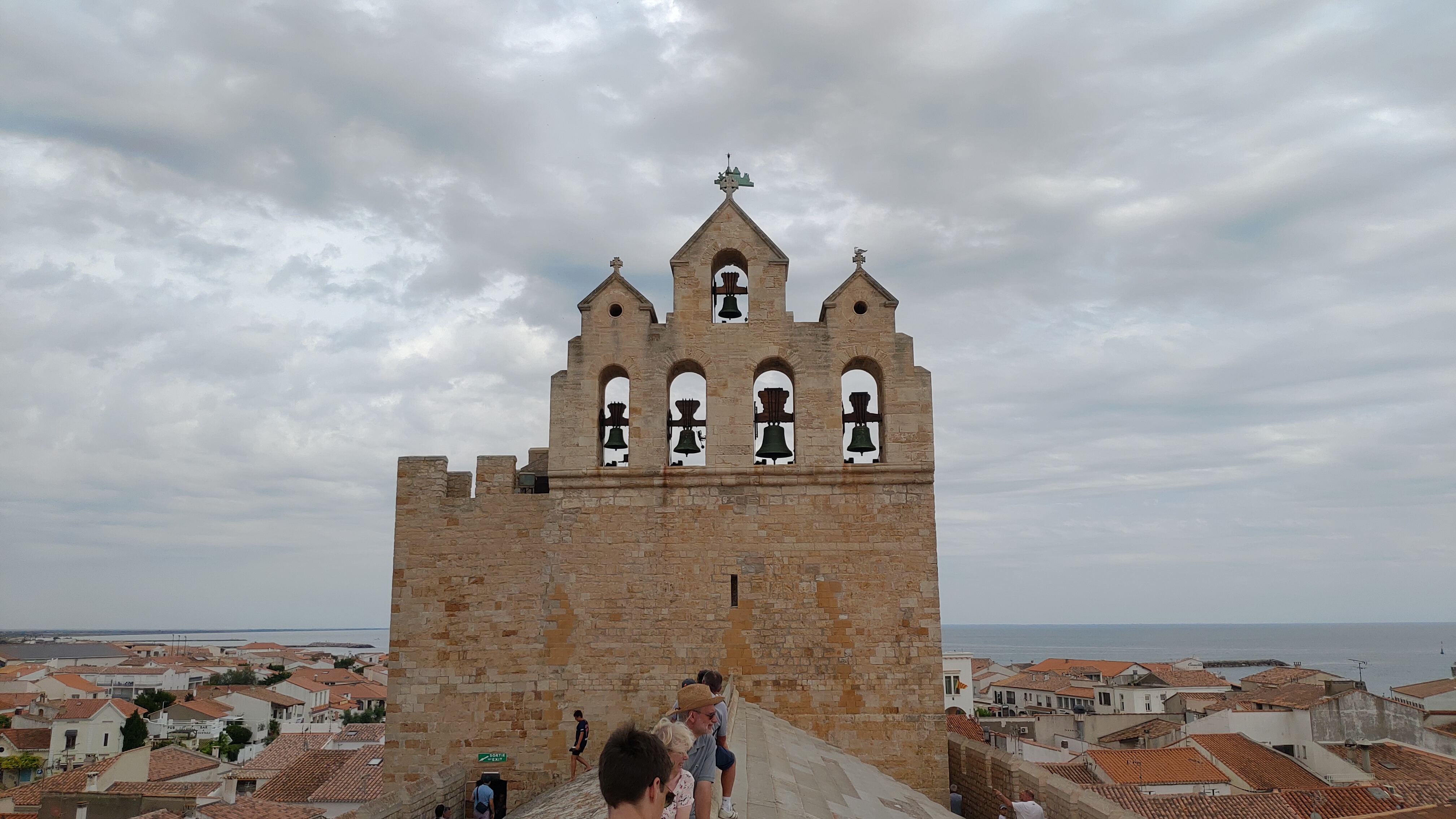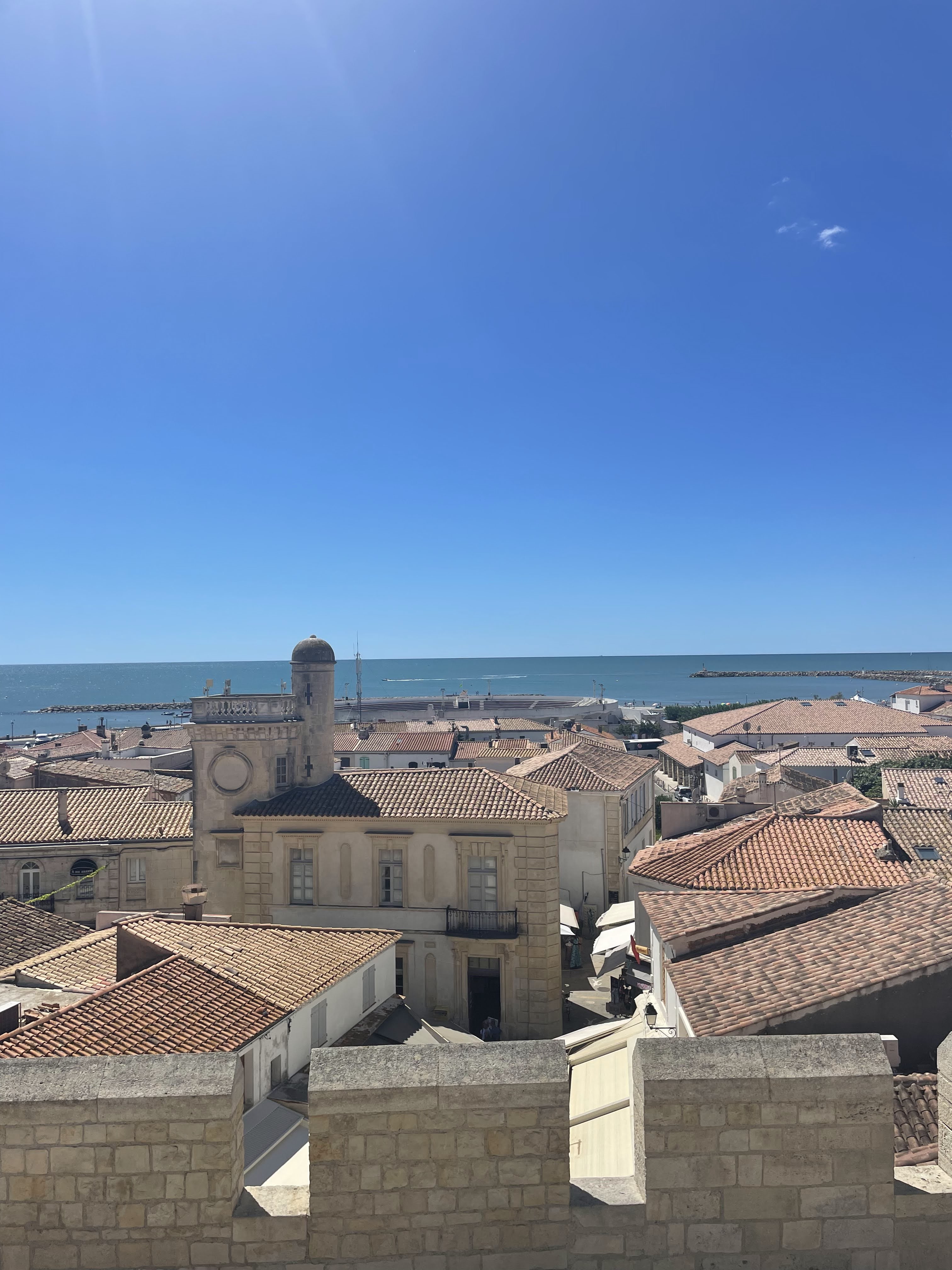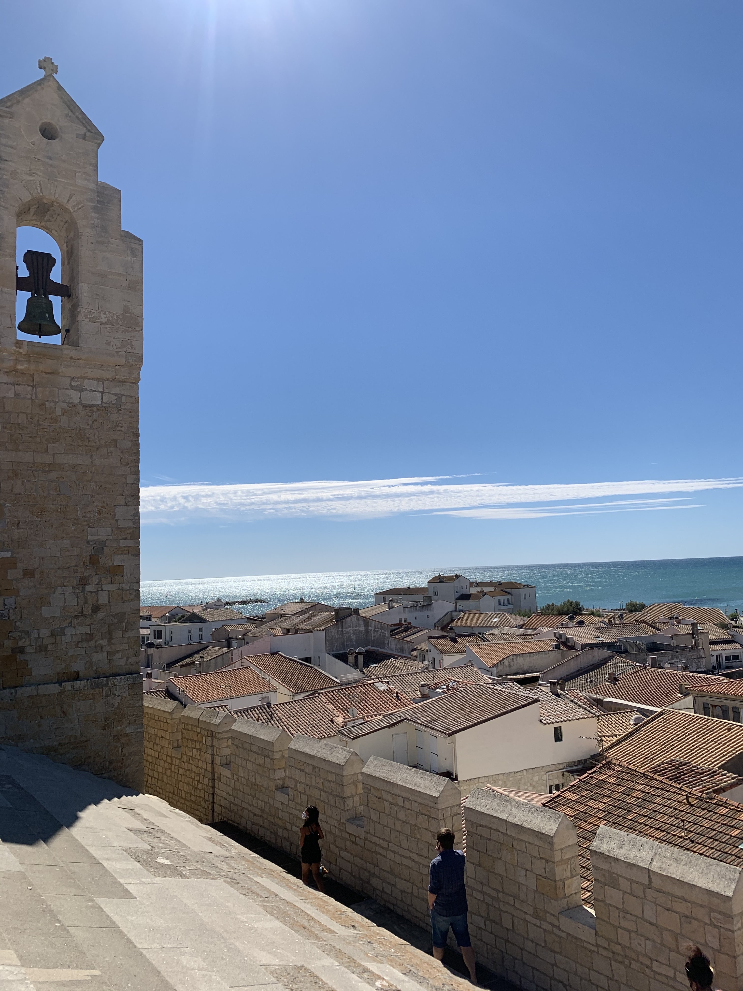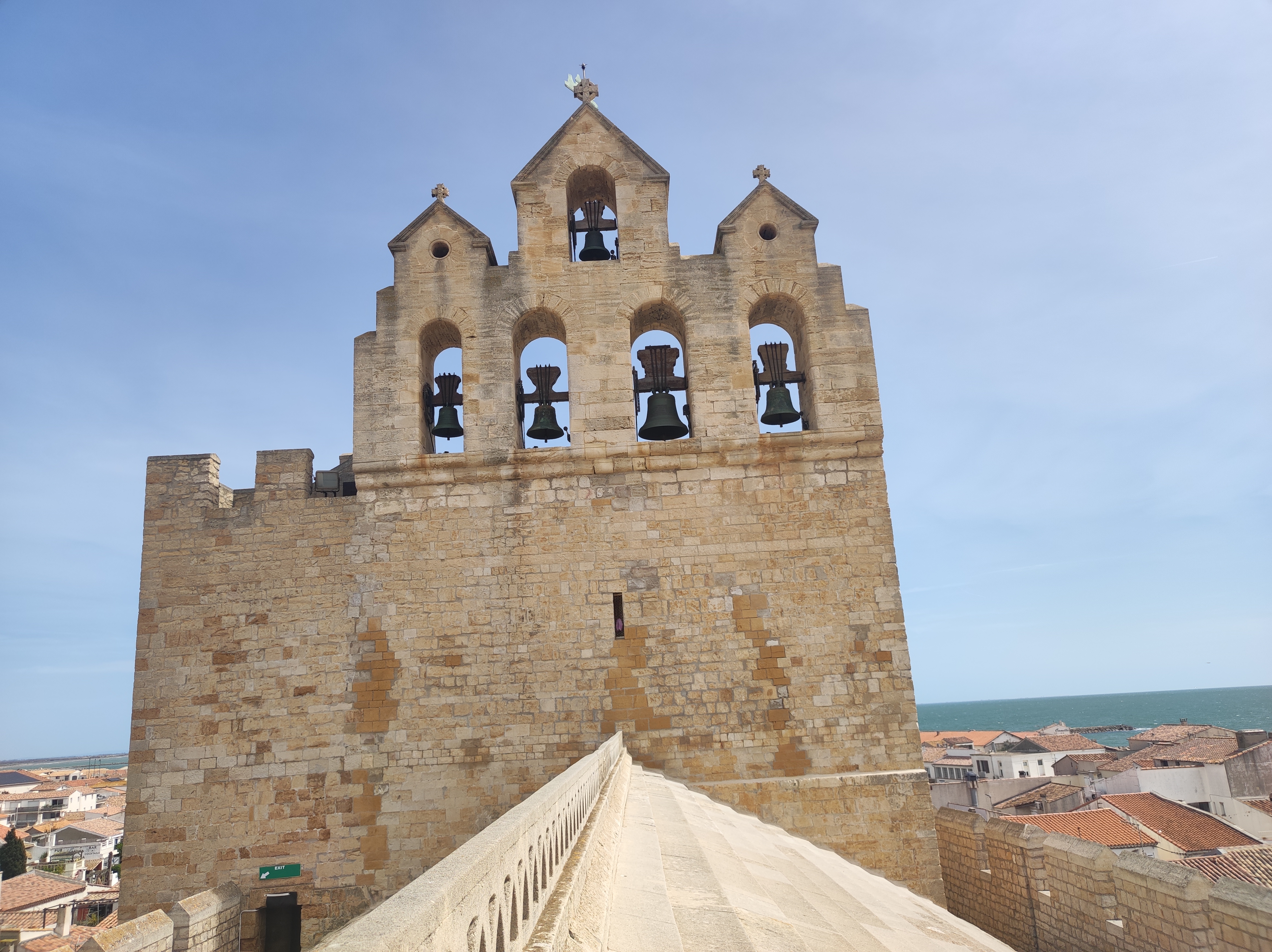belle vue au sommet de l'église. vous pouvez même grimper sur le toit ! c'est un joli point de vue à sainte maries de la mer