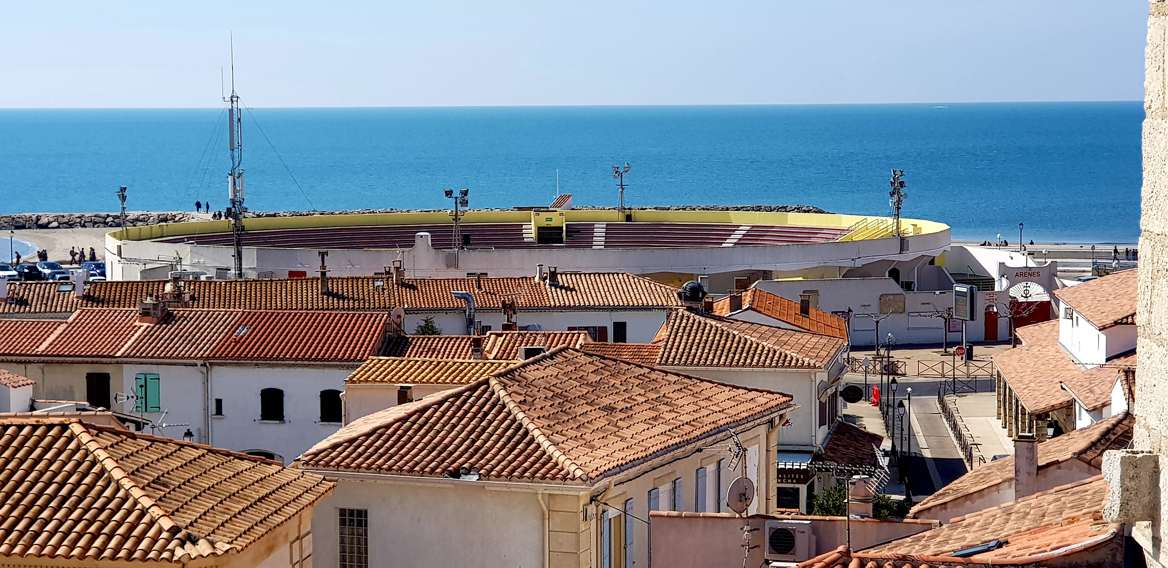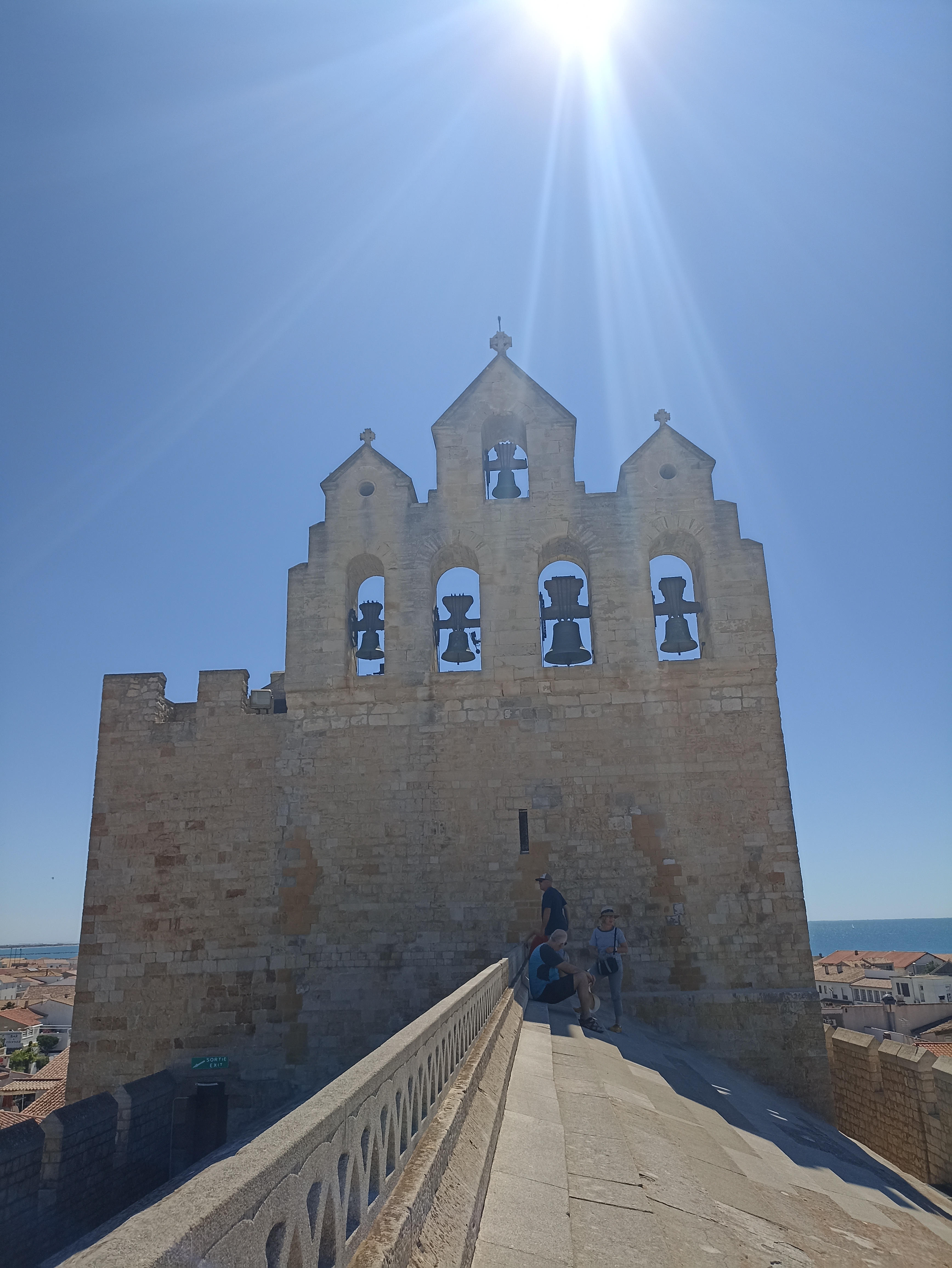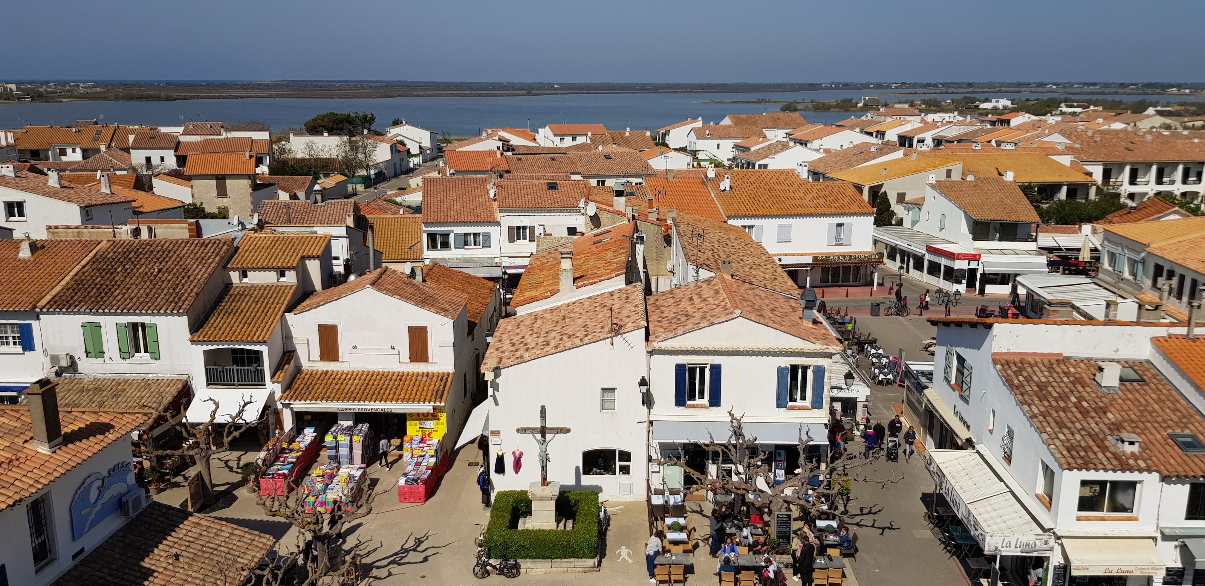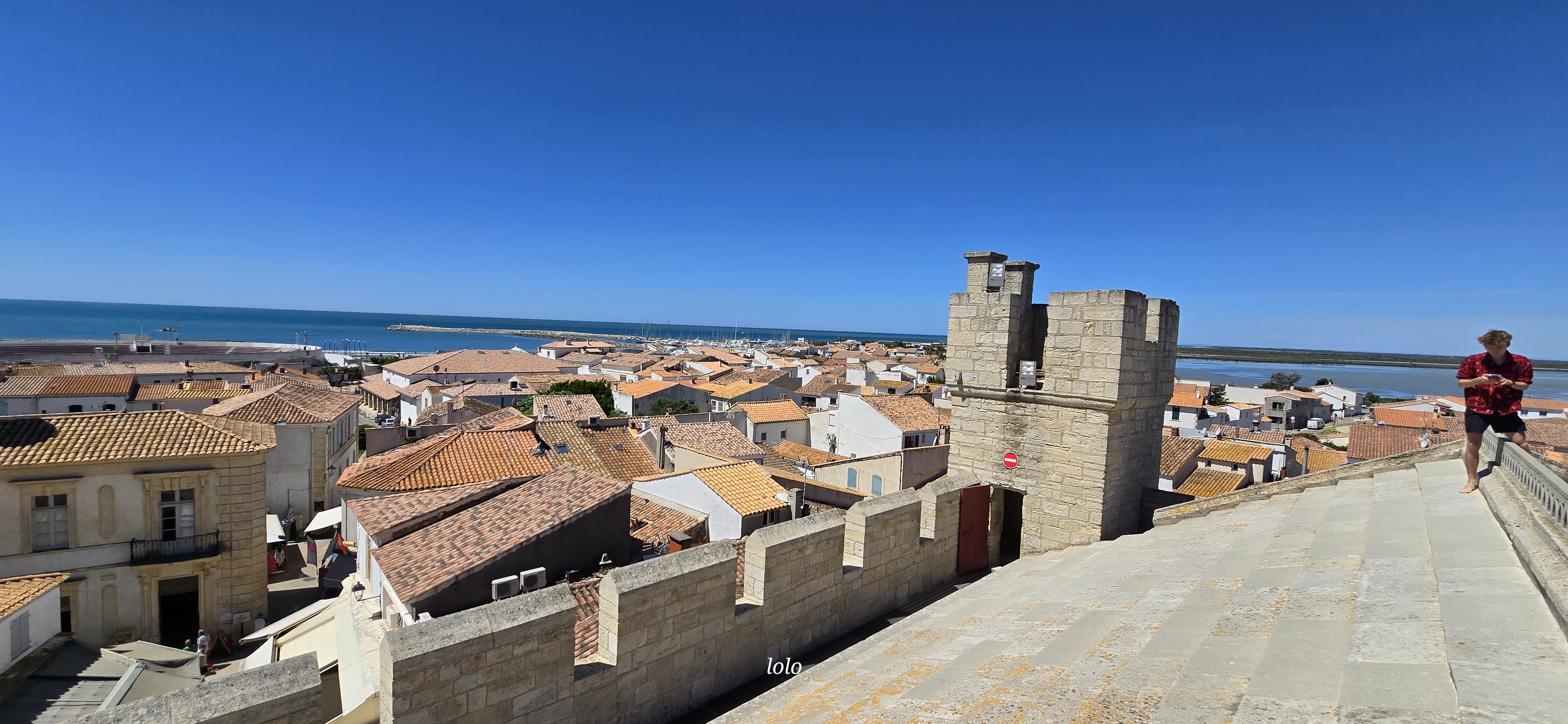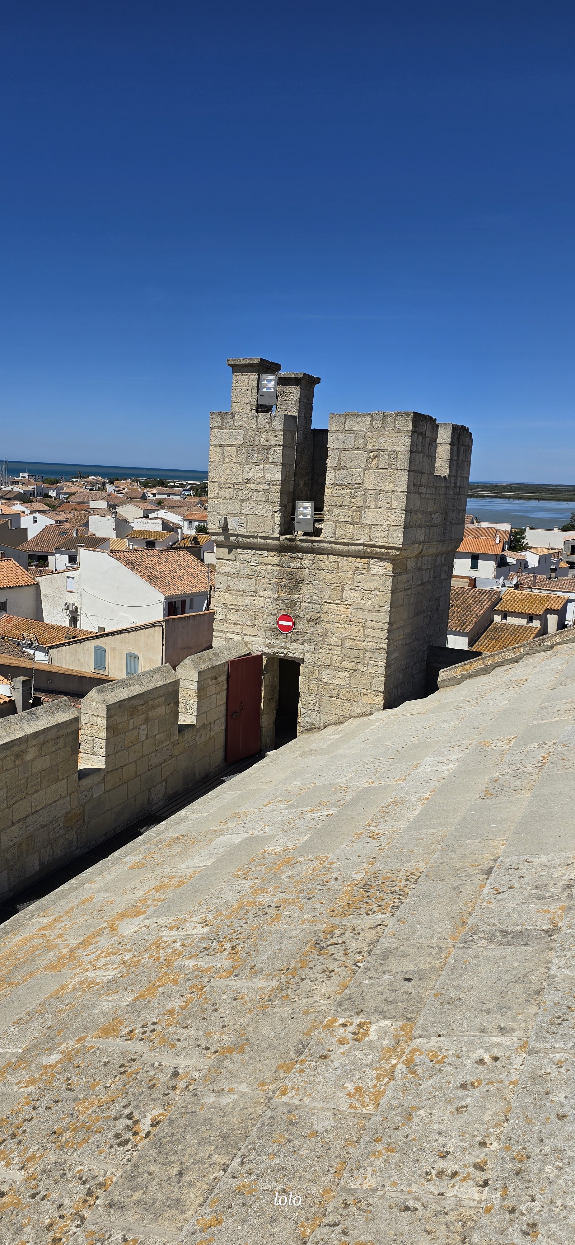 belle vue au sommet de l'église. vous pouvez même grimper sur le toit ! c'est un joli point de vue à sainte maries de la mer