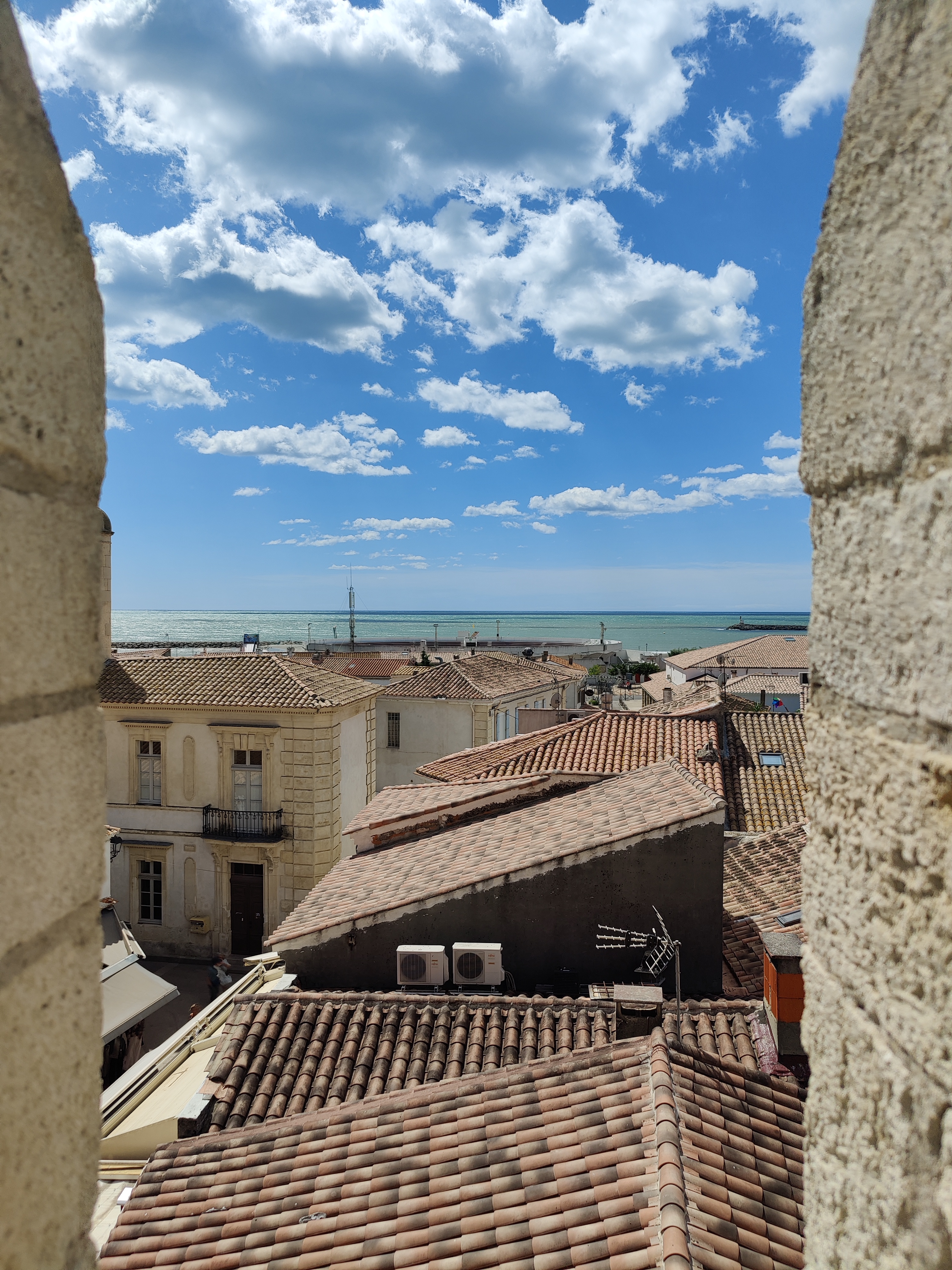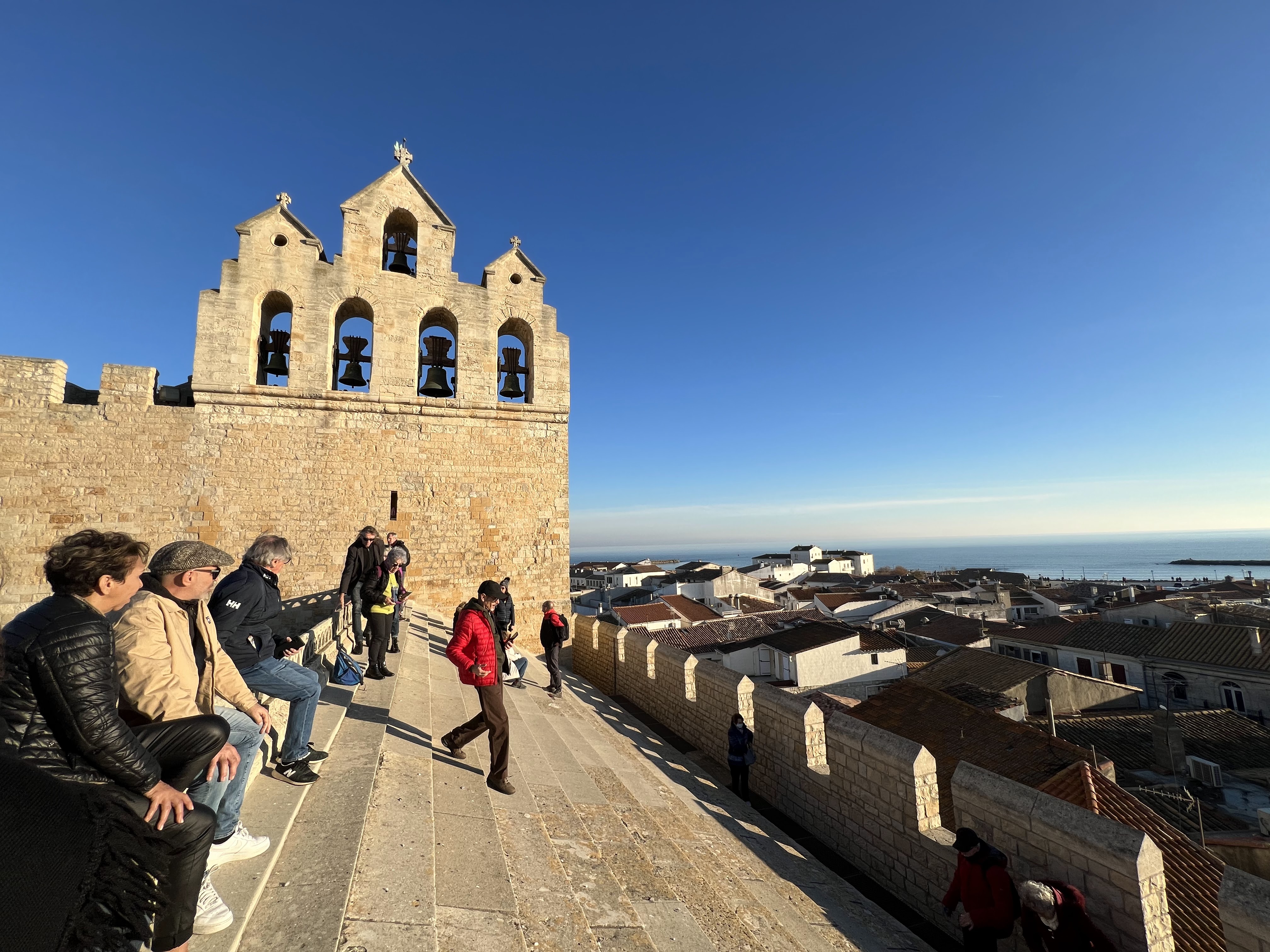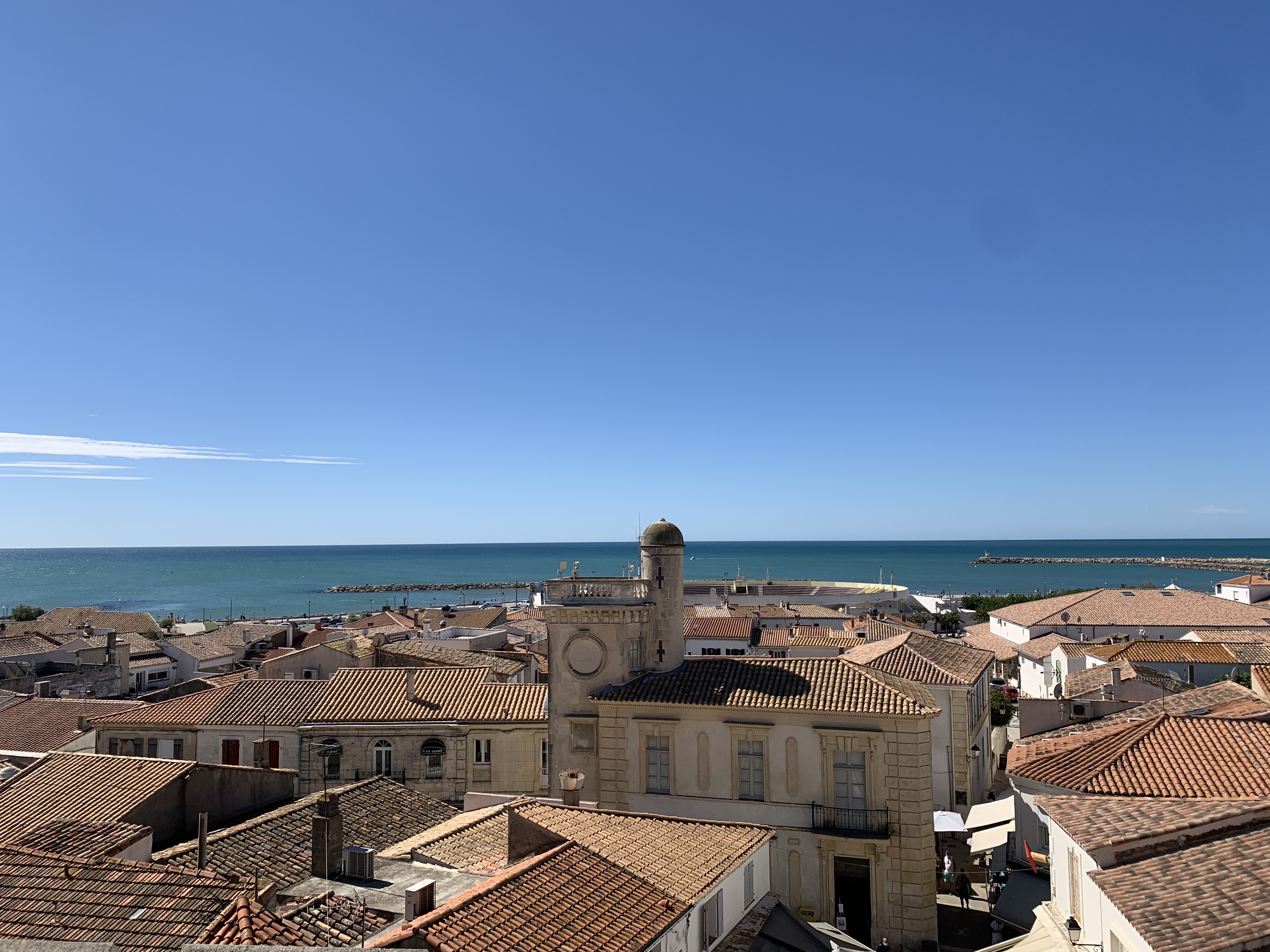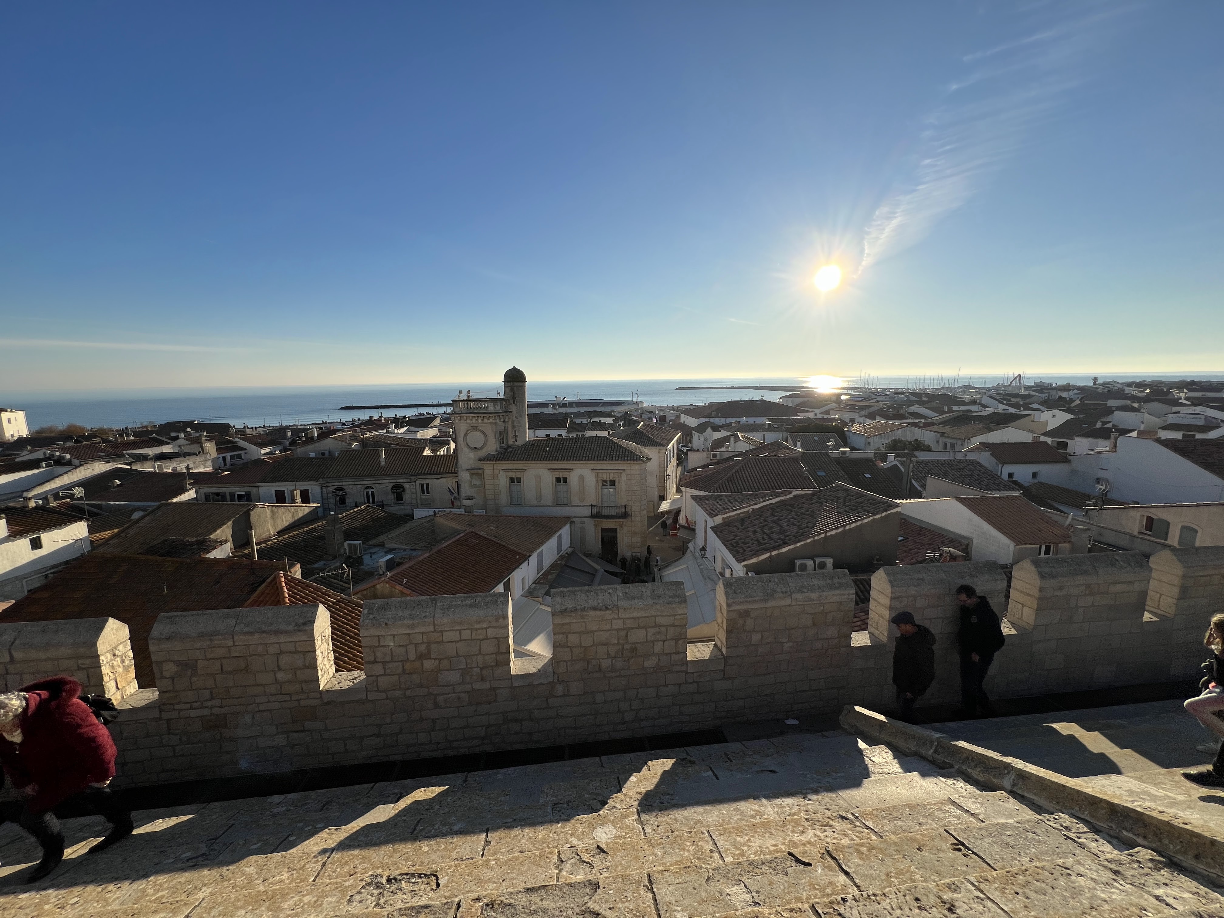 belle vue au sommet de l'église. vous pouvez même grimper sur le toit ! c'est un joli point de vue à sainte maries de la mer