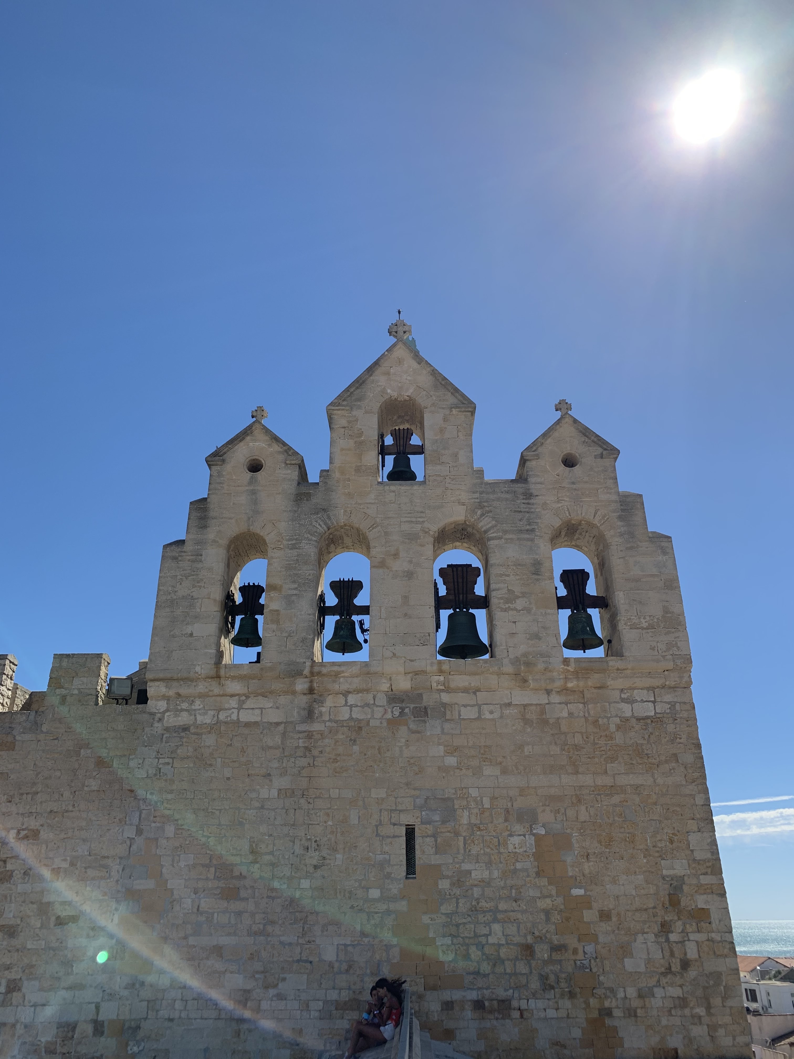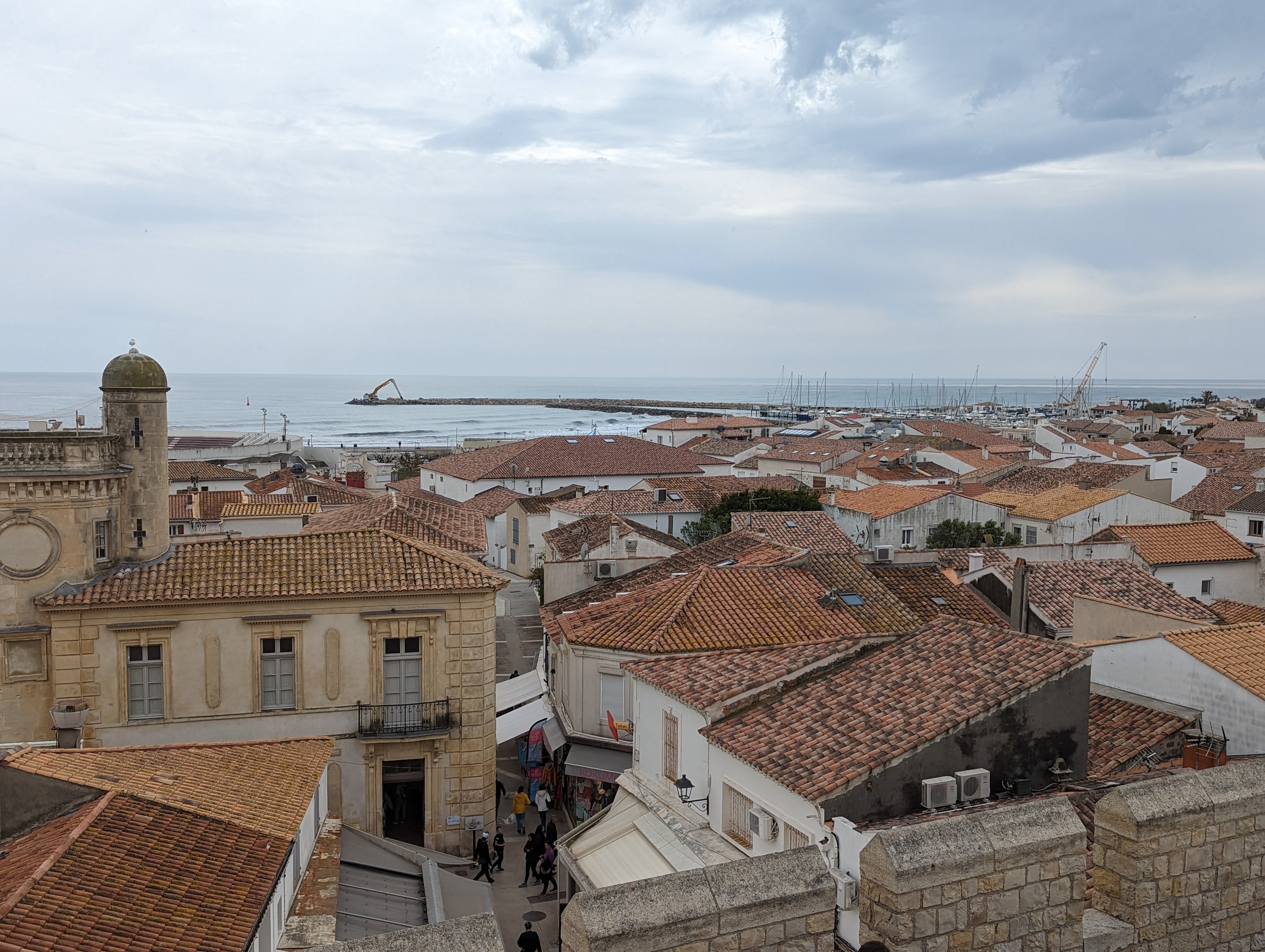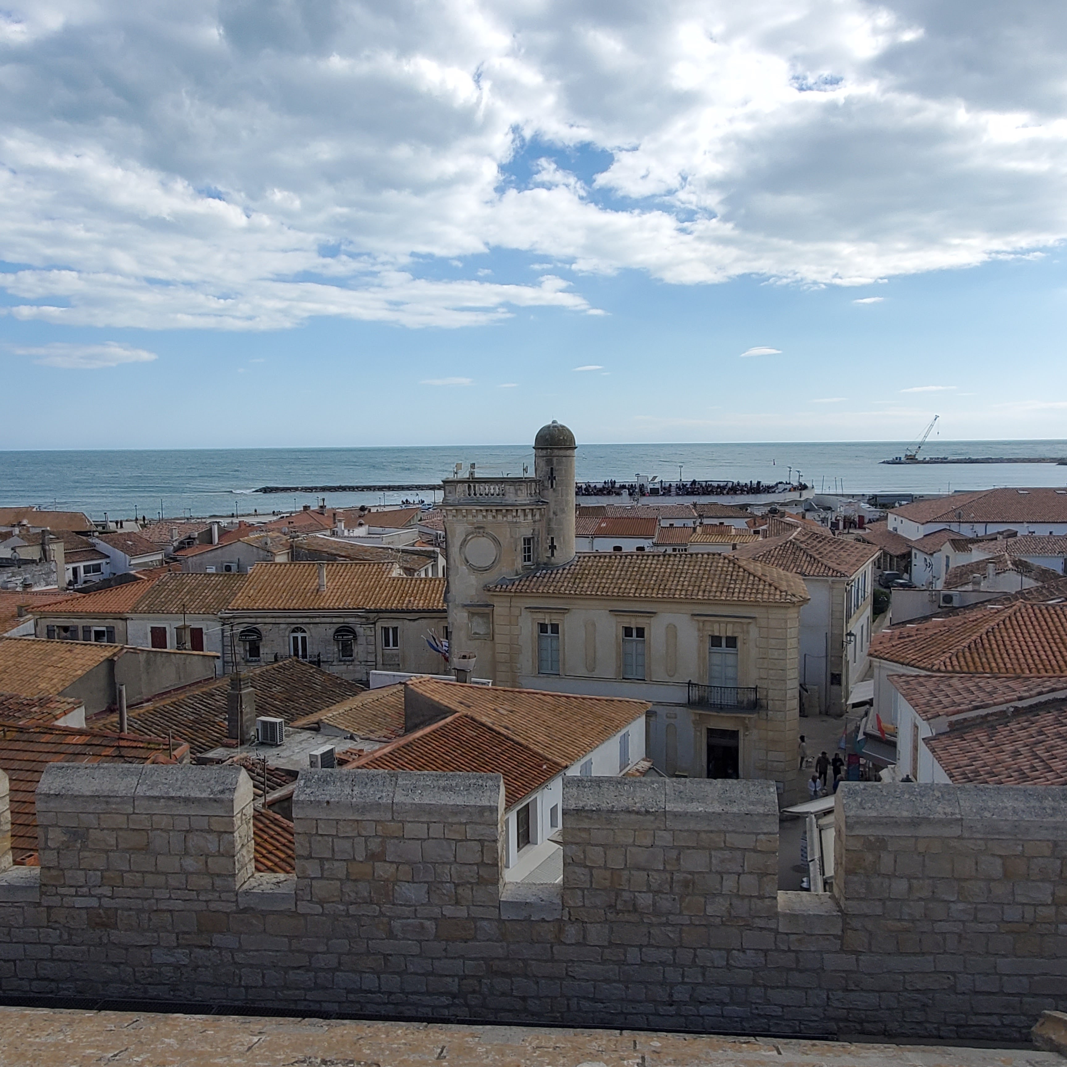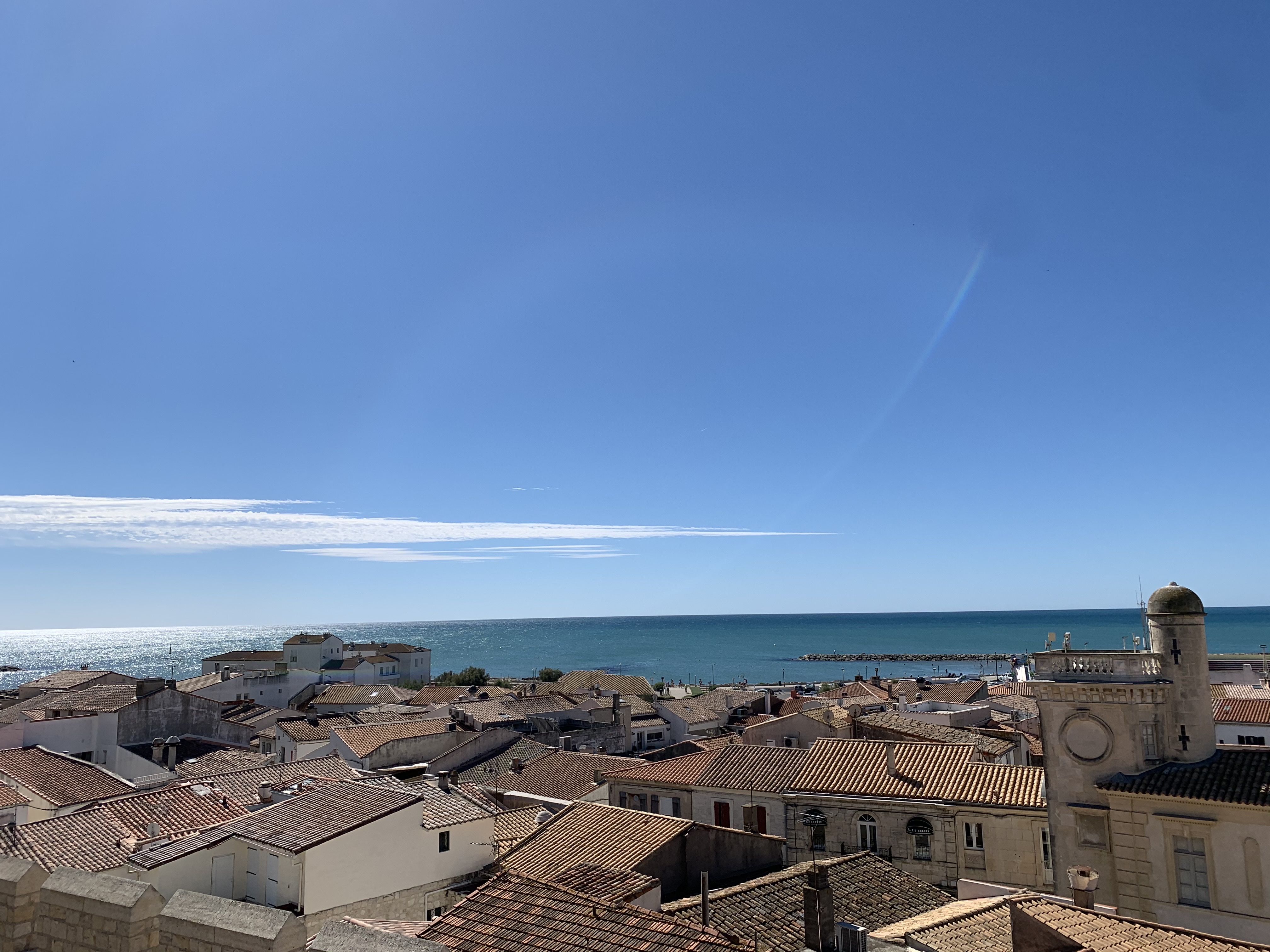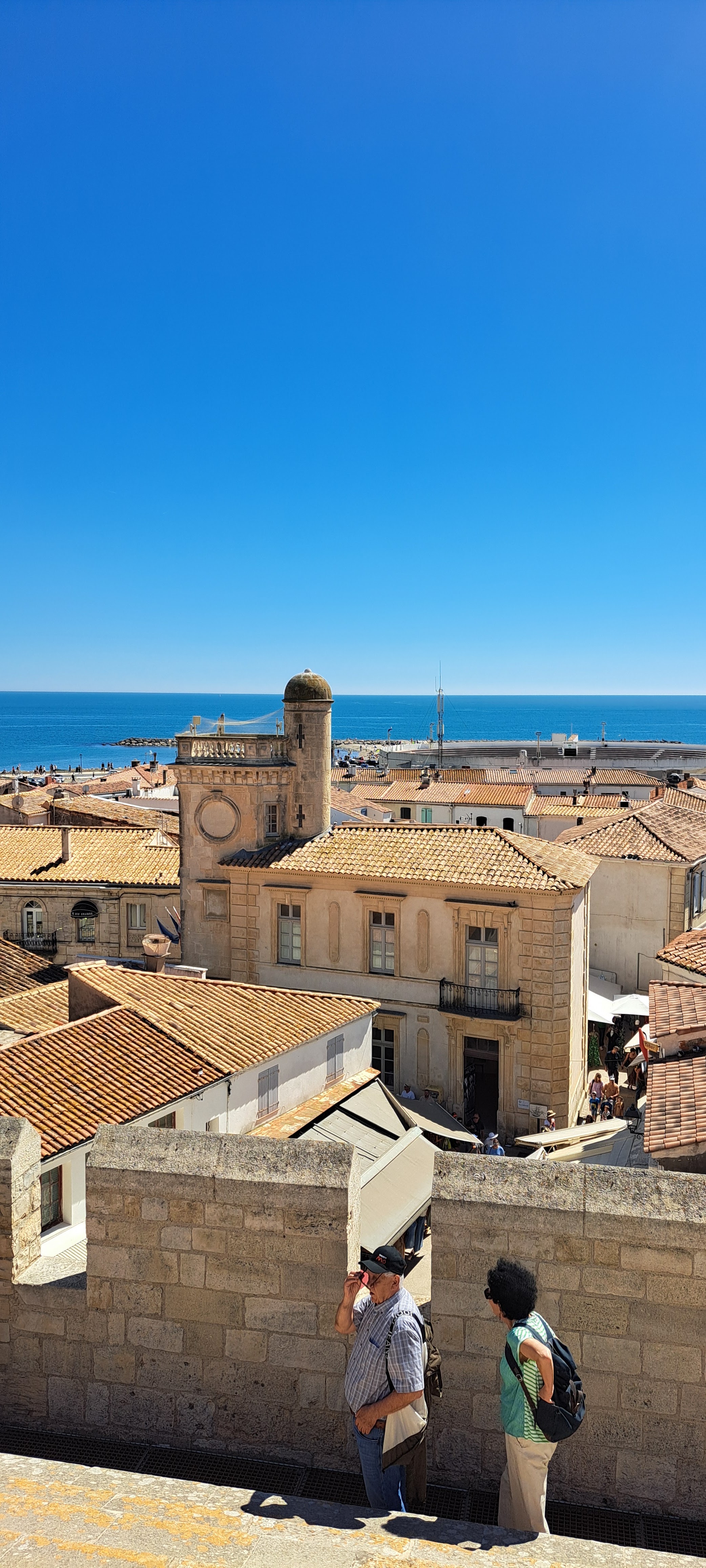 belle vue au sommet de l'église. vous pouvez même grimper sur le toit ! c'est un joli point de vue à sainte maries de la mer