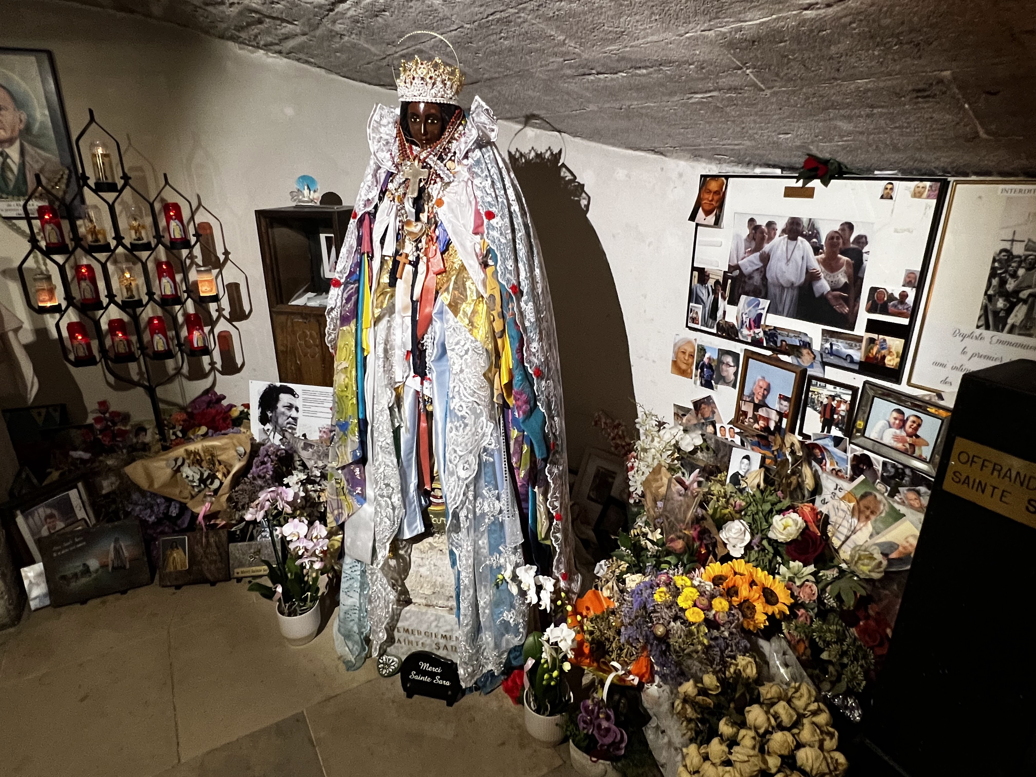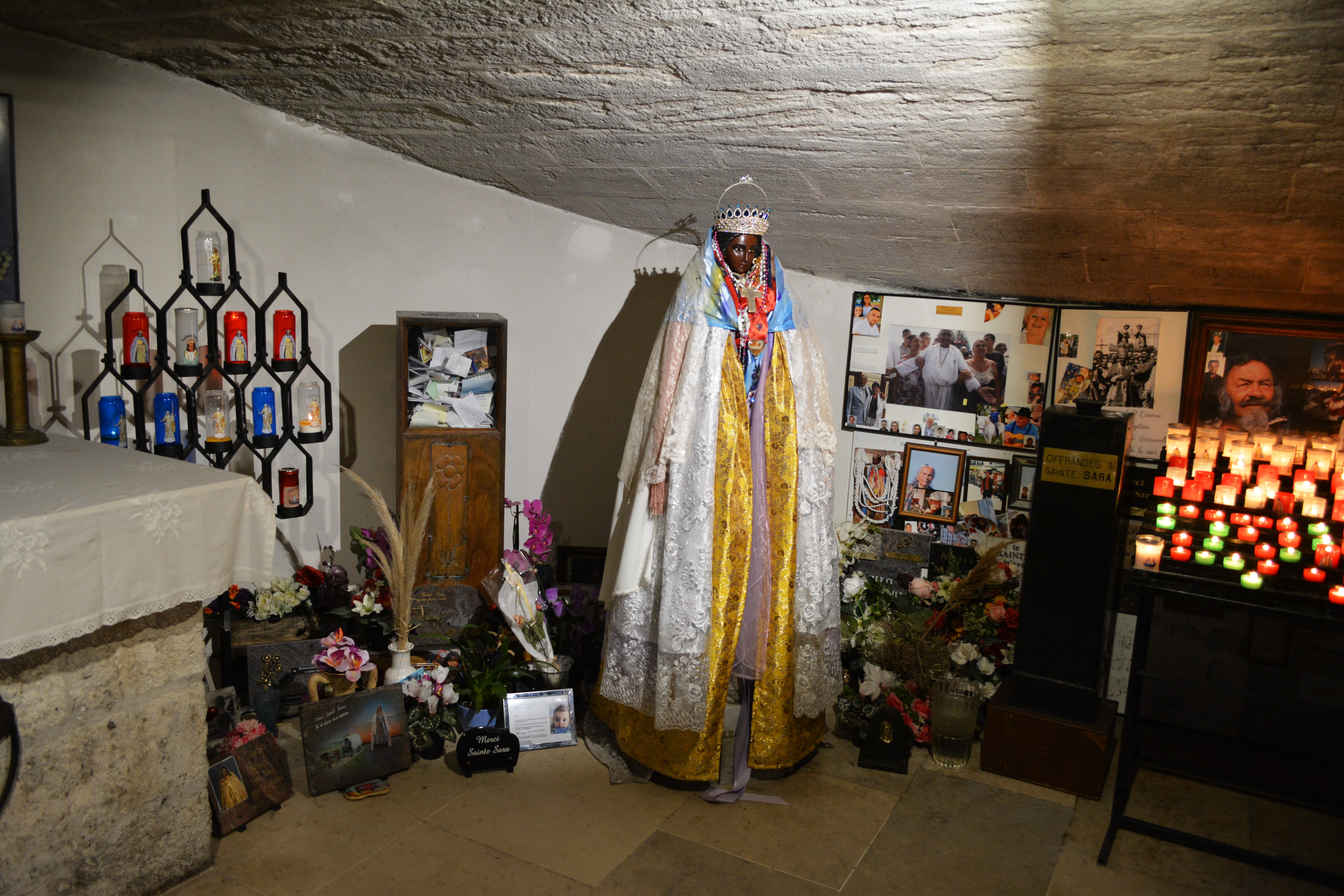 La crypte de l'église des Saintes Maries-de-la-Mer est incontournable. Il y règne une émotion et une ferveur très particulière en la présence de Sara et des nombreuses bougies allumées, offrandes et pèlerins