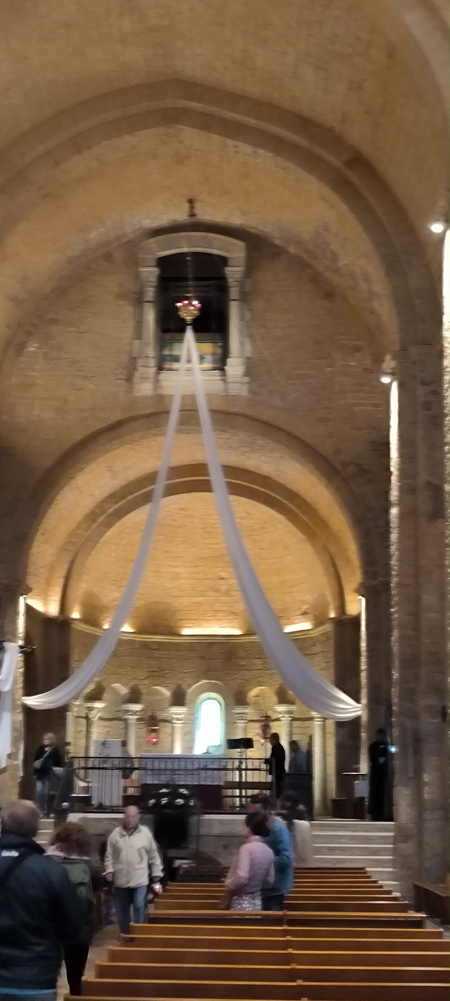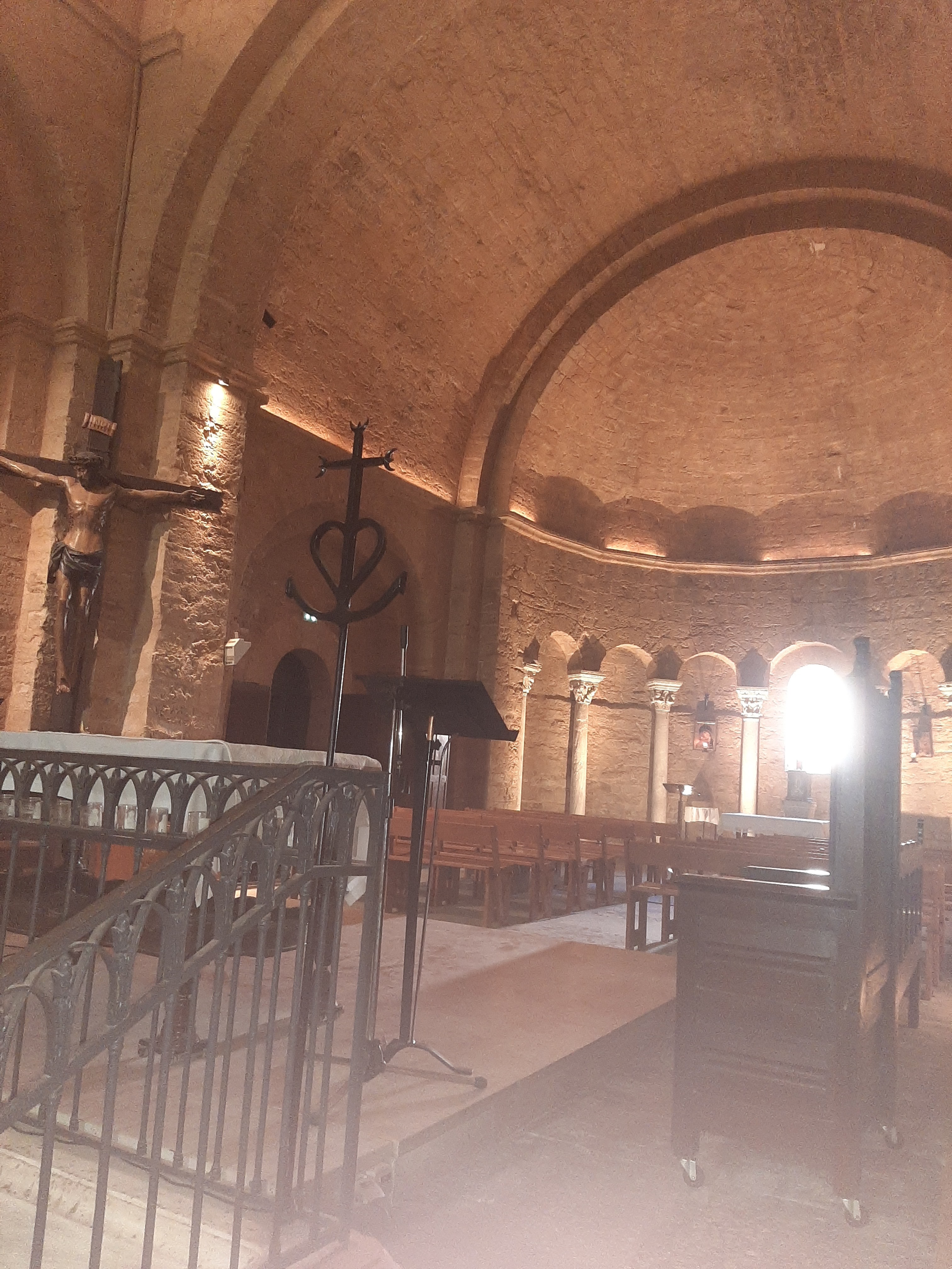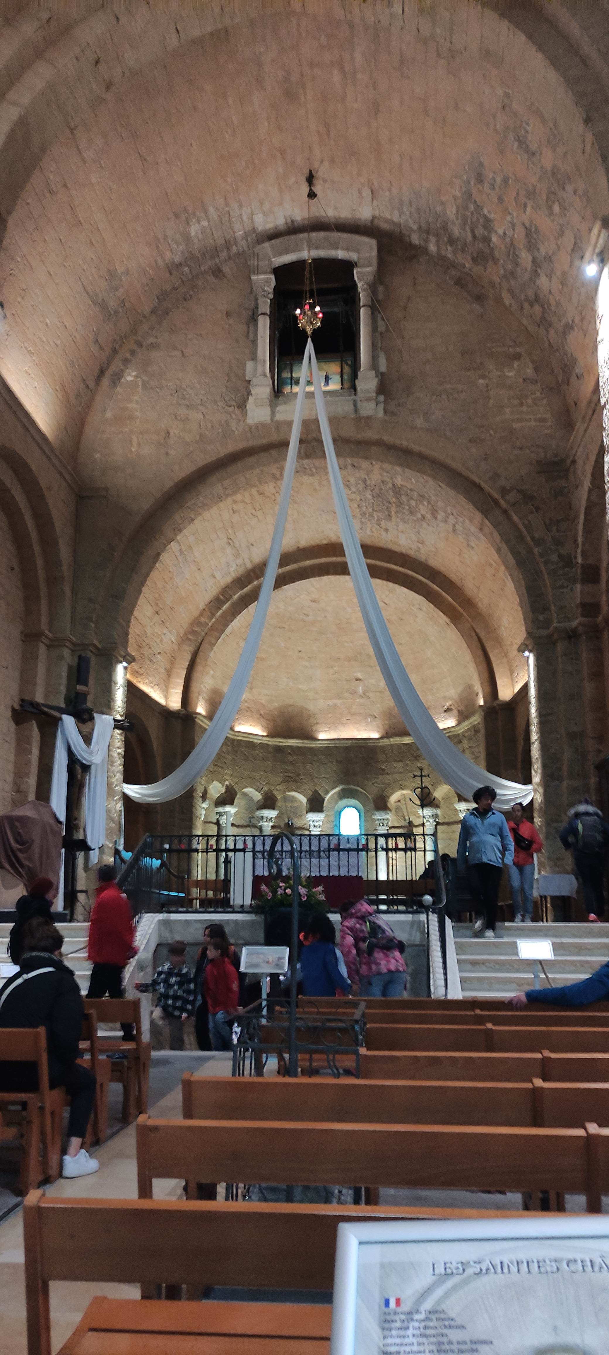 Eglise style roman épuré, explications didactiques intéressantes,crypte très bondieuseries.