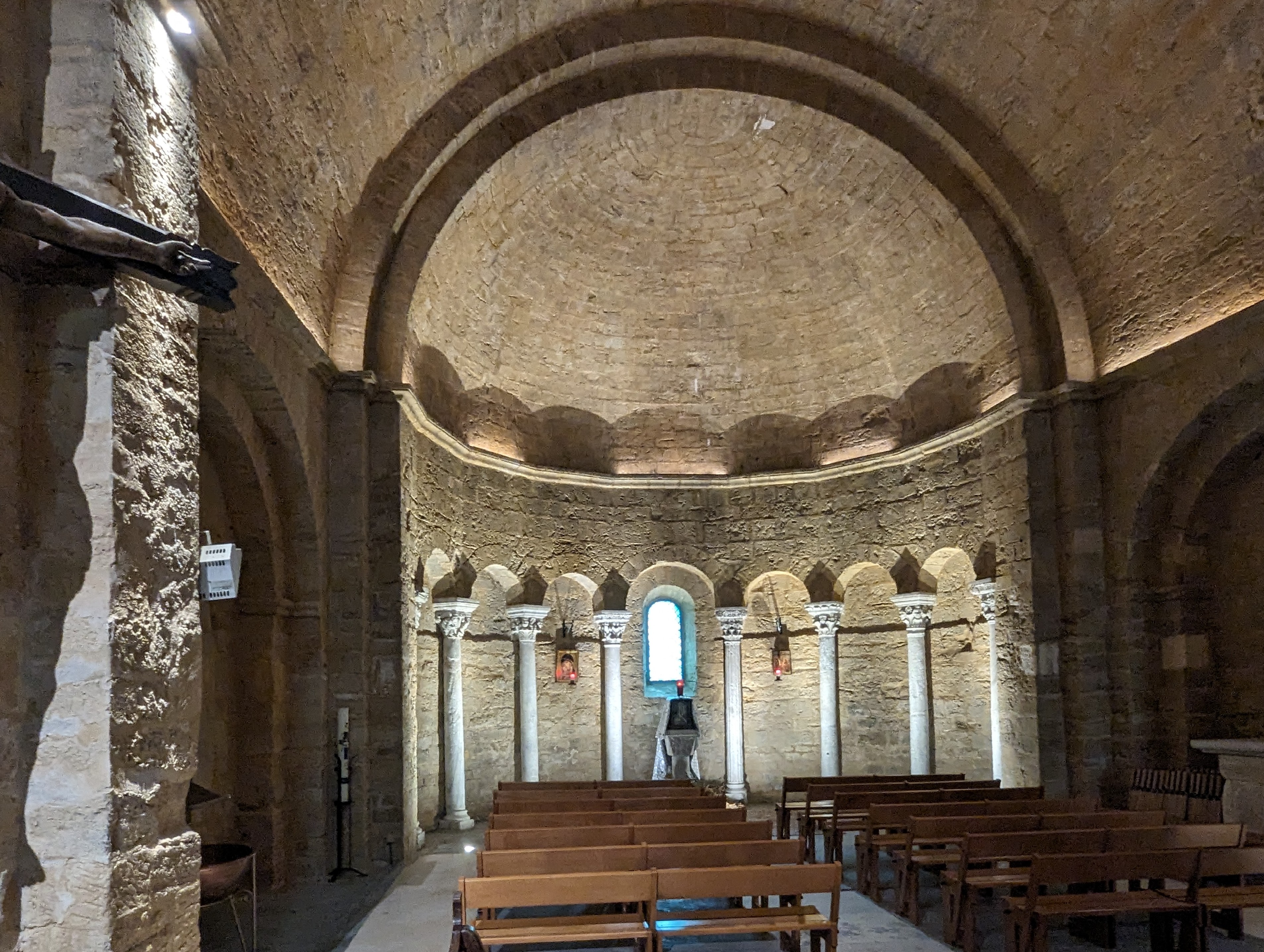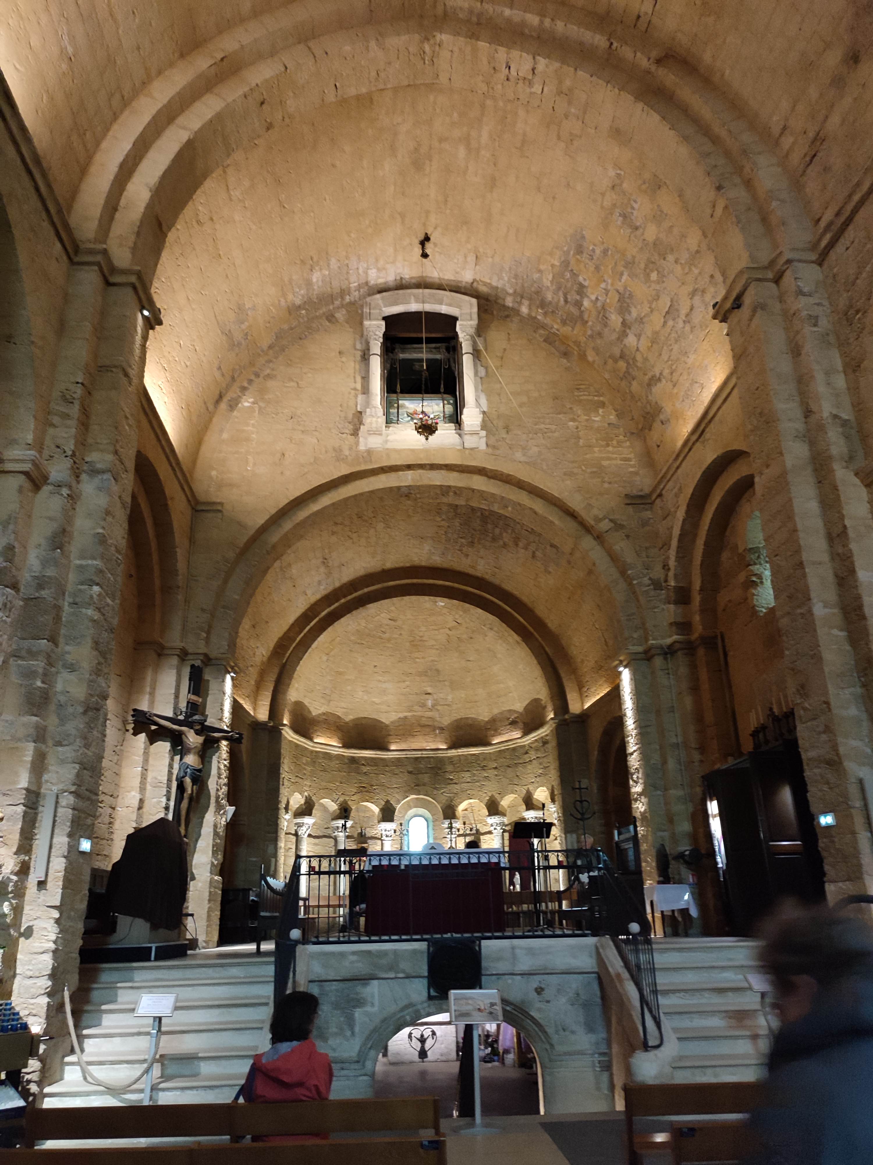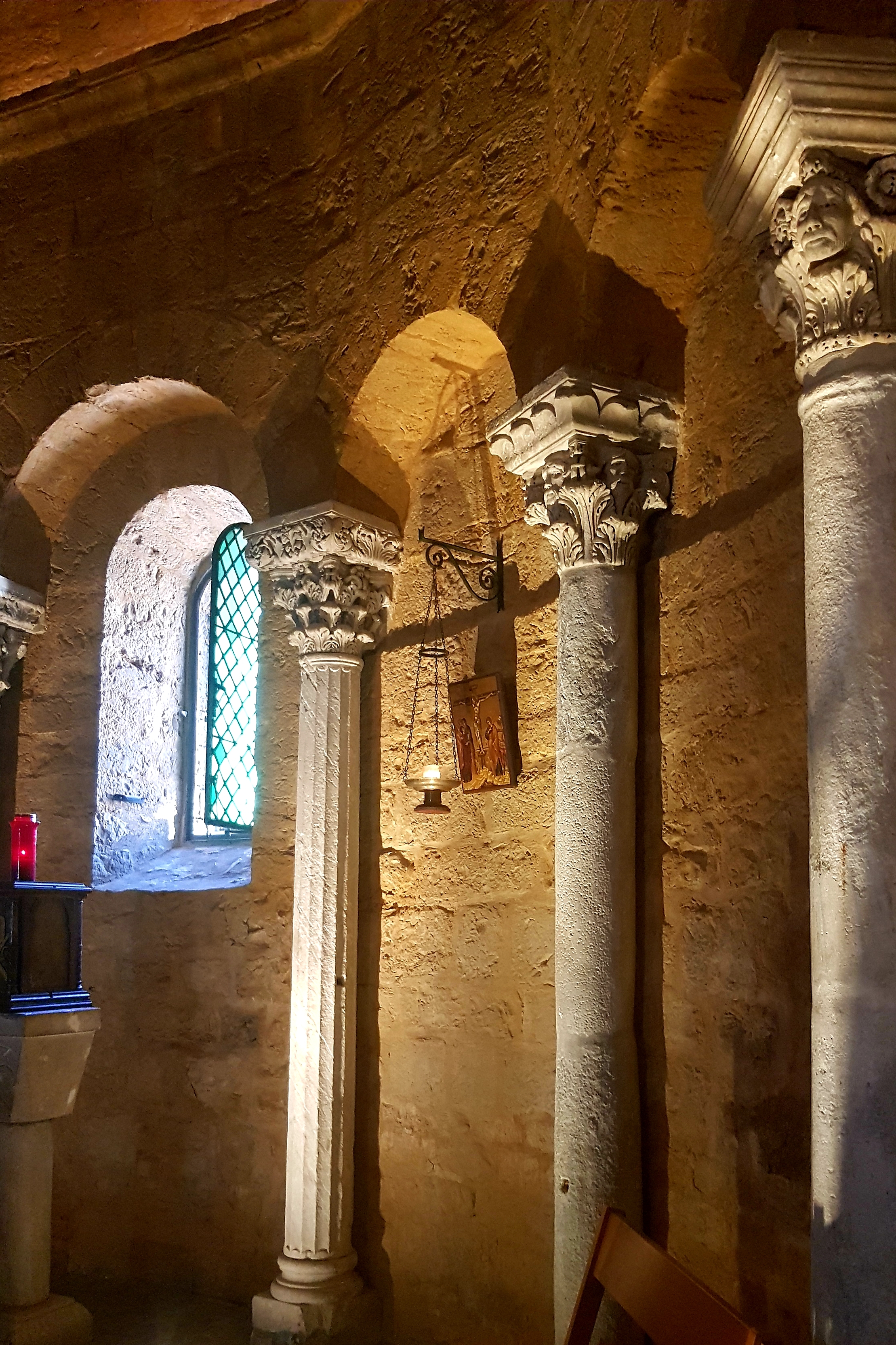 Eglise style roman épuré, explications didactiques intéressantes,crypte très bondieuseries.