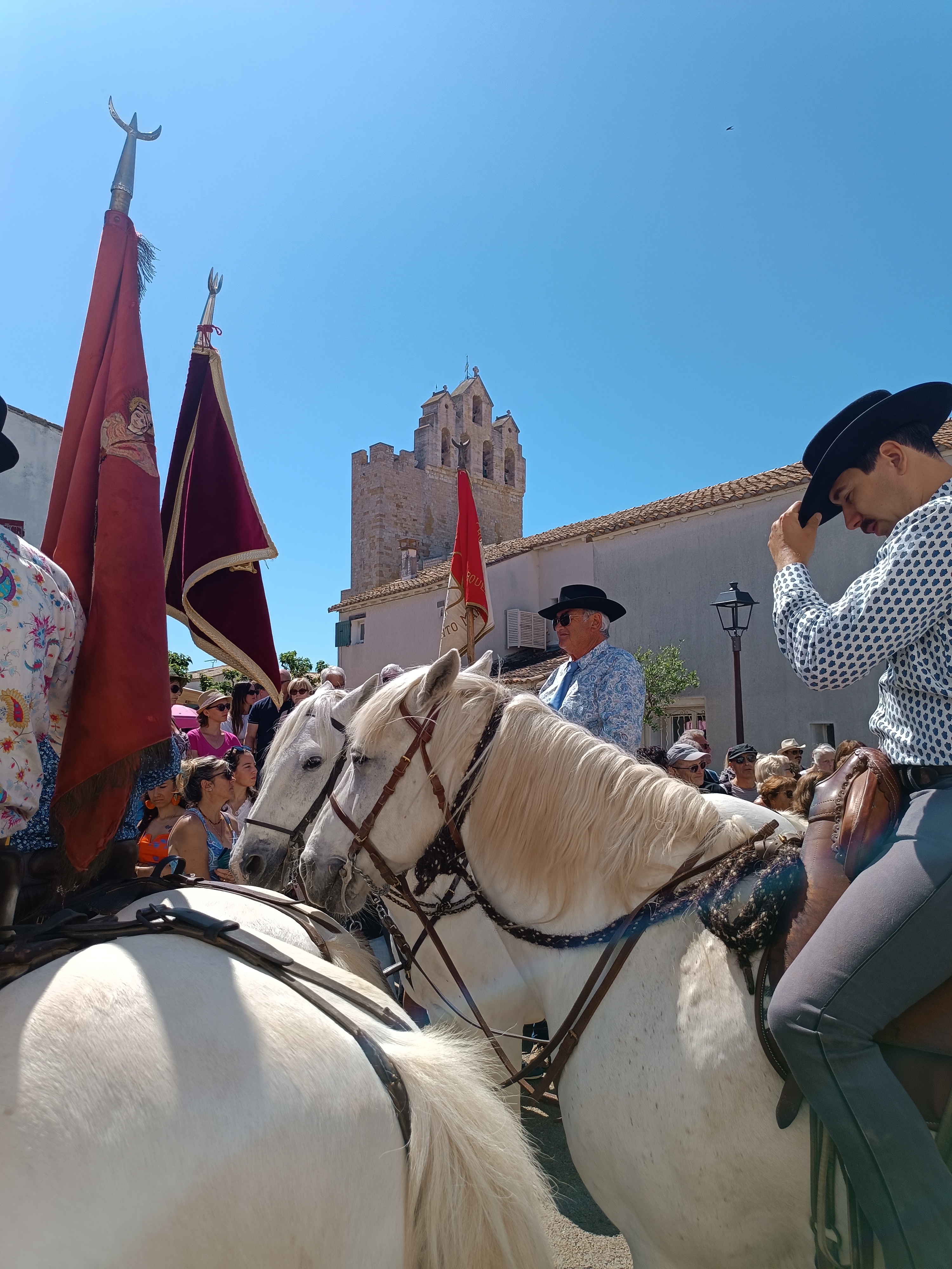 Super eglise. On est venu pendant le 115ème « Fèsto Vierginenco » avec la Nacioun Gardiano. Costumes d'époque chevaux camargués...