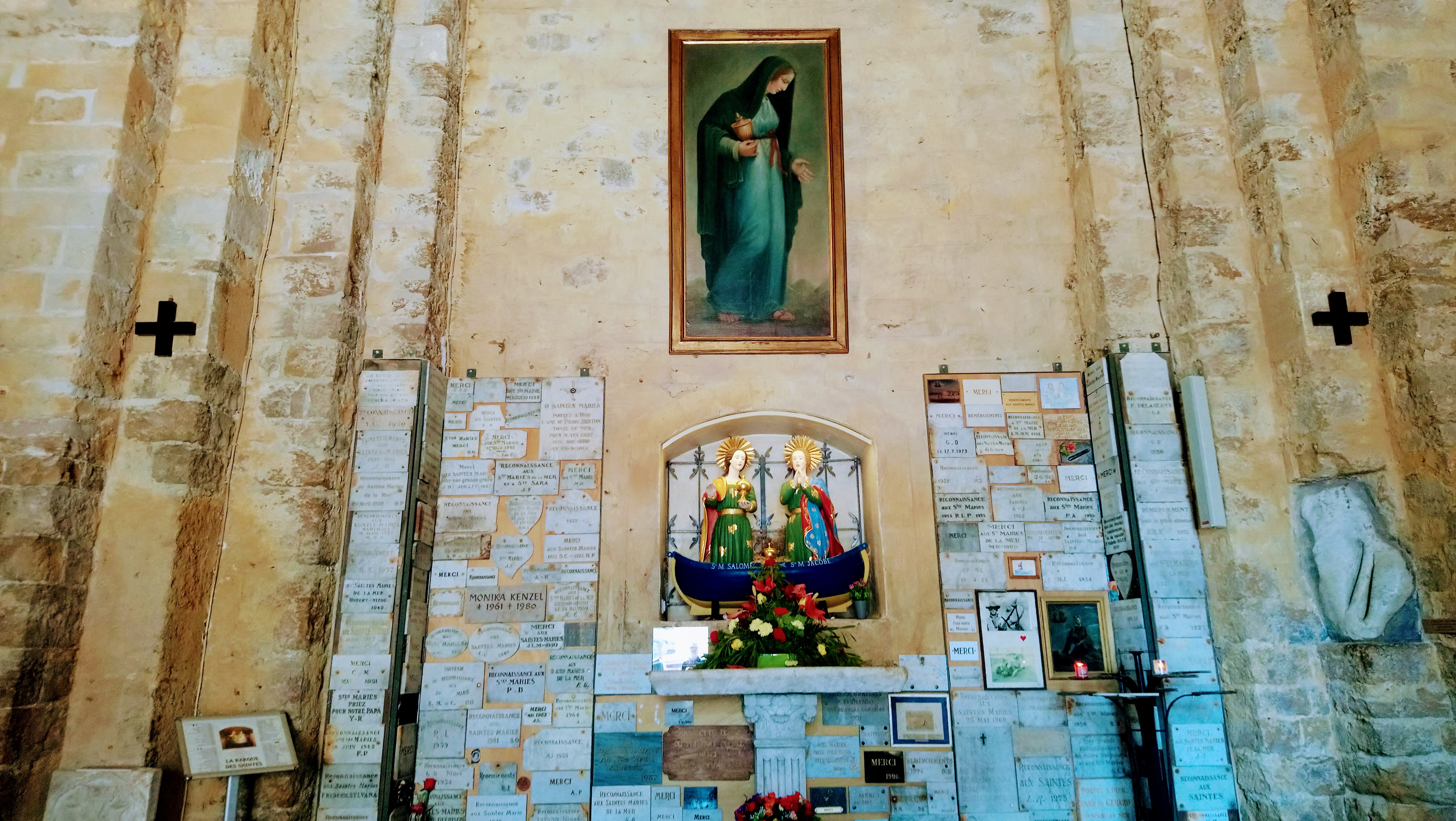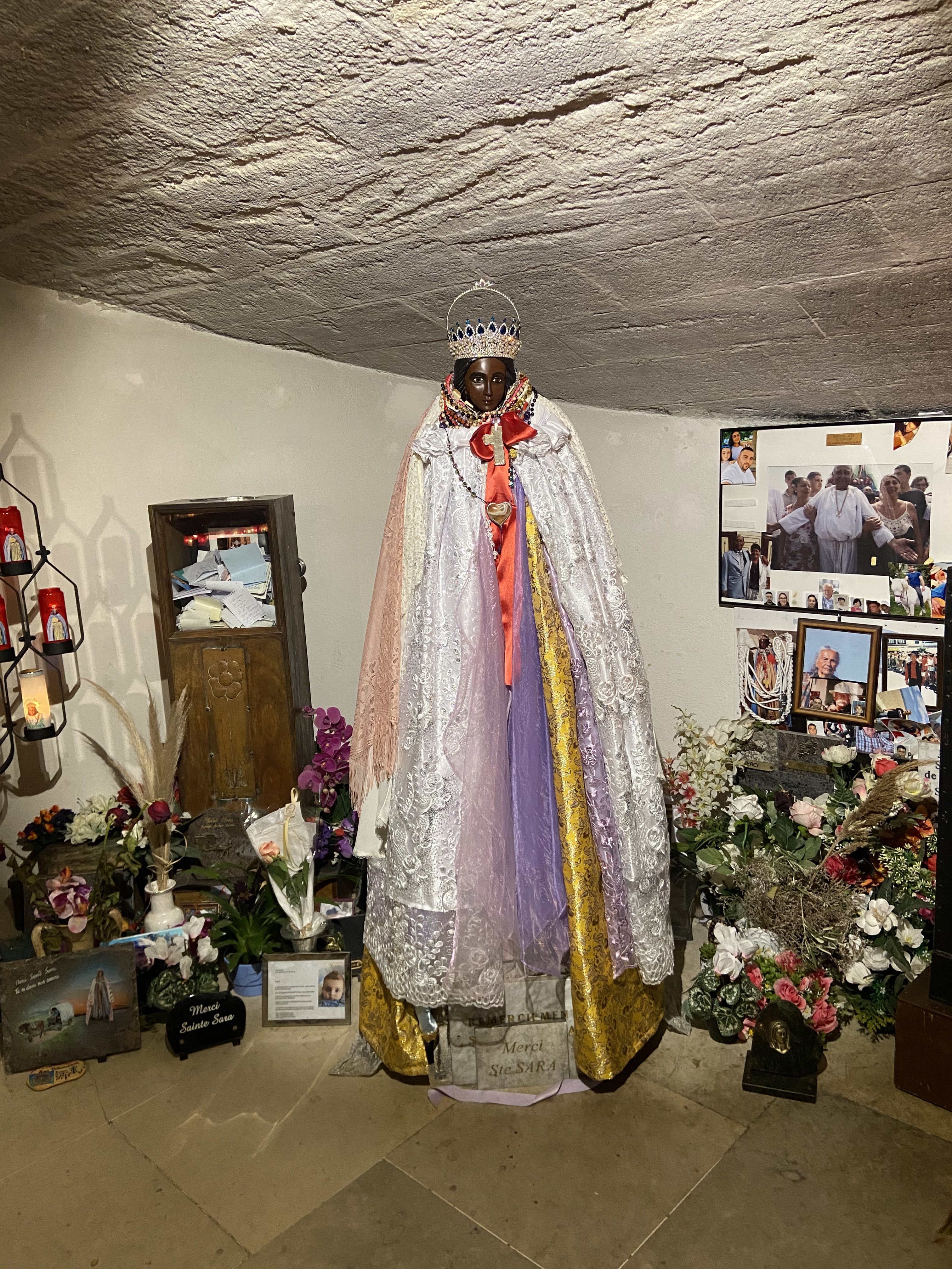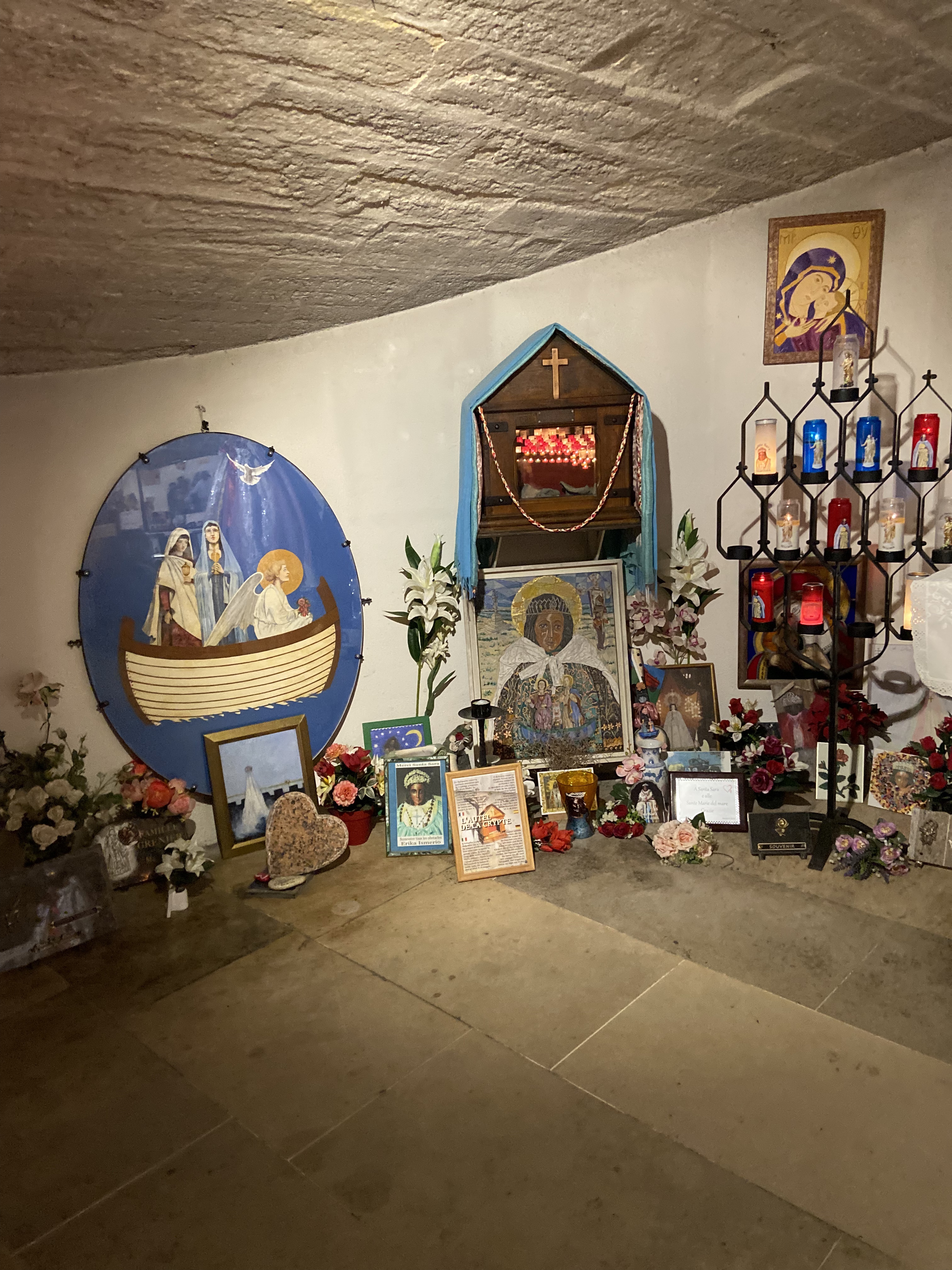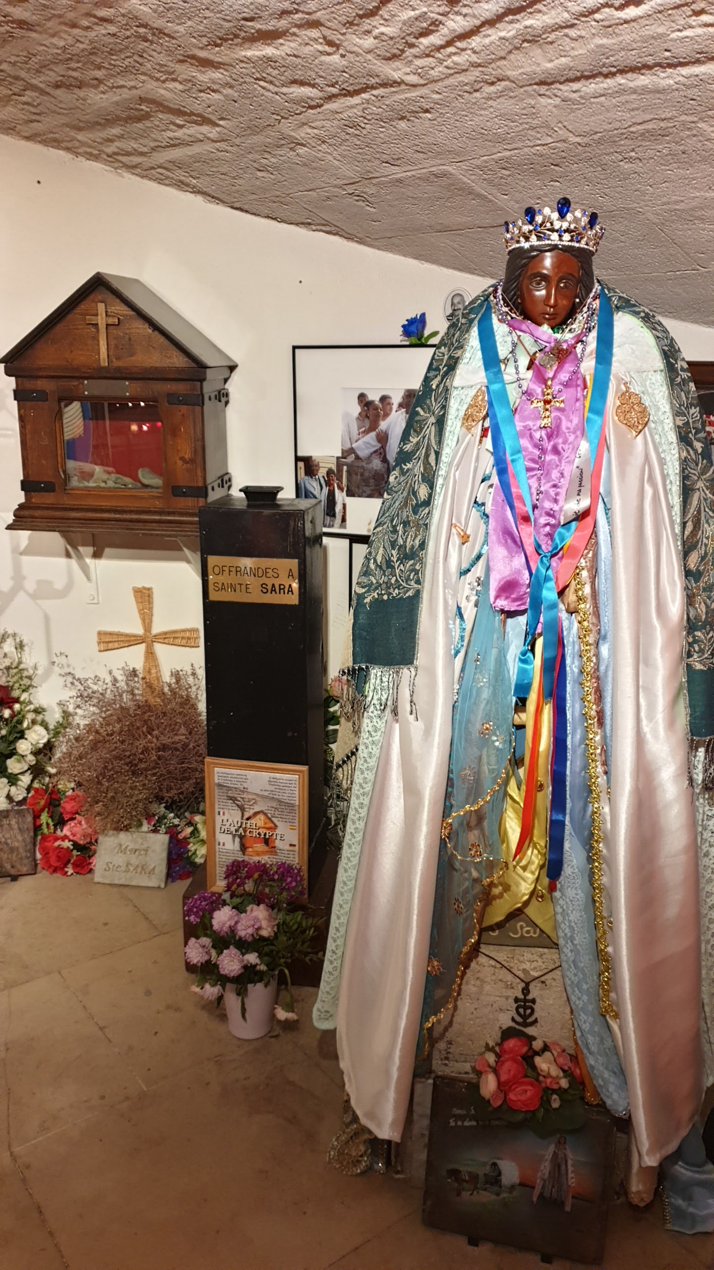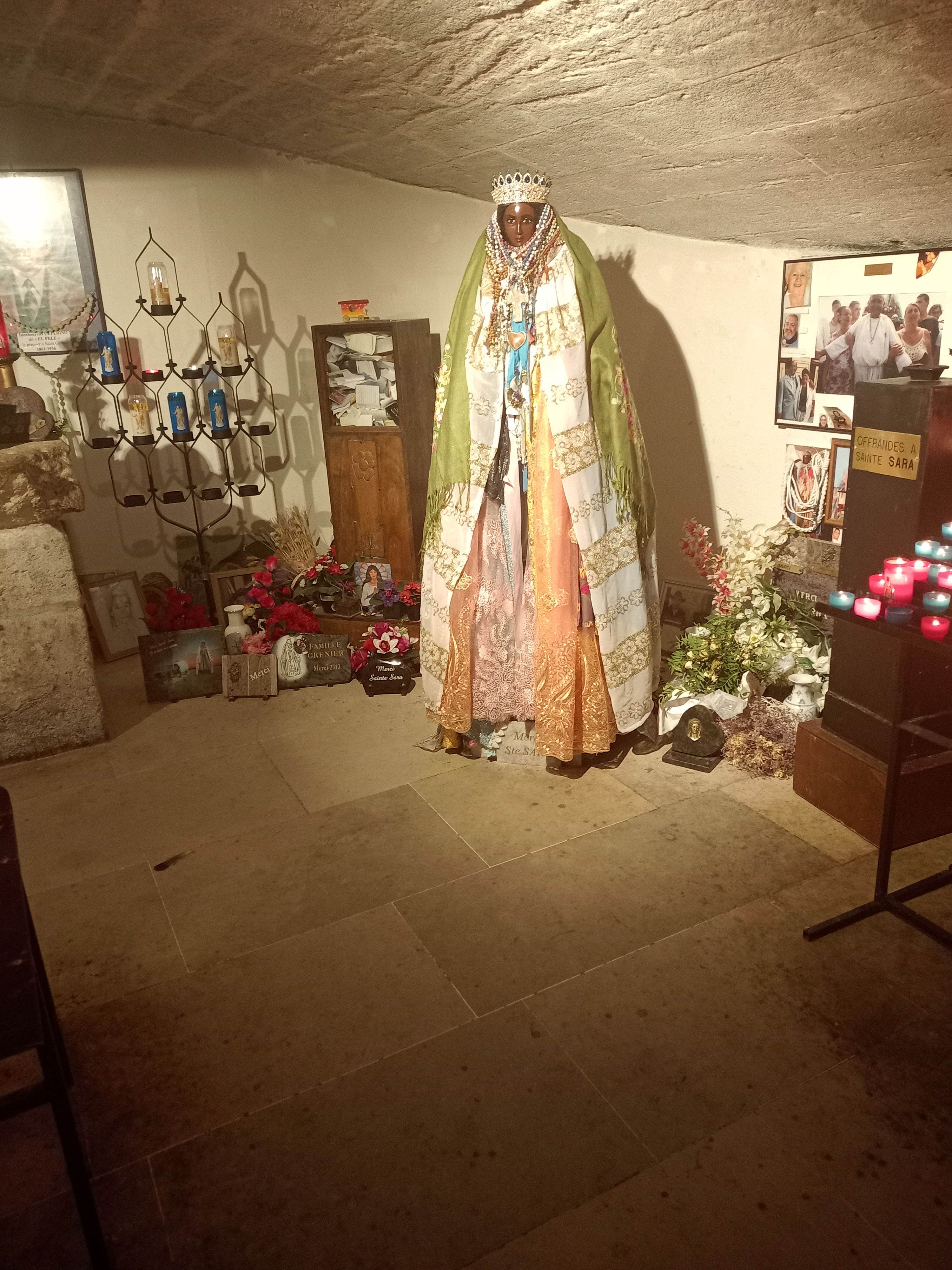 Très belle église et quelle émotions à la vue de Ste Sara. Malheureusement il y avait trop de monde, on passait devant en file indienne, sans avoir le temps de s'arrêter un instant, pour prier Ste Sara ou y laisser une photo...