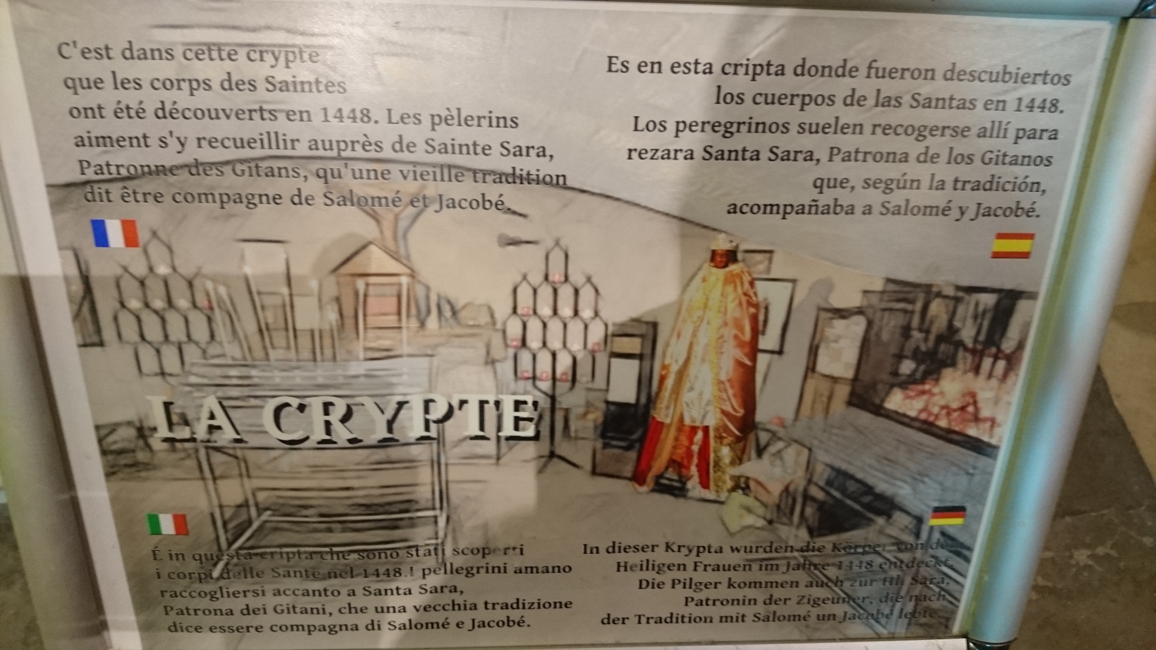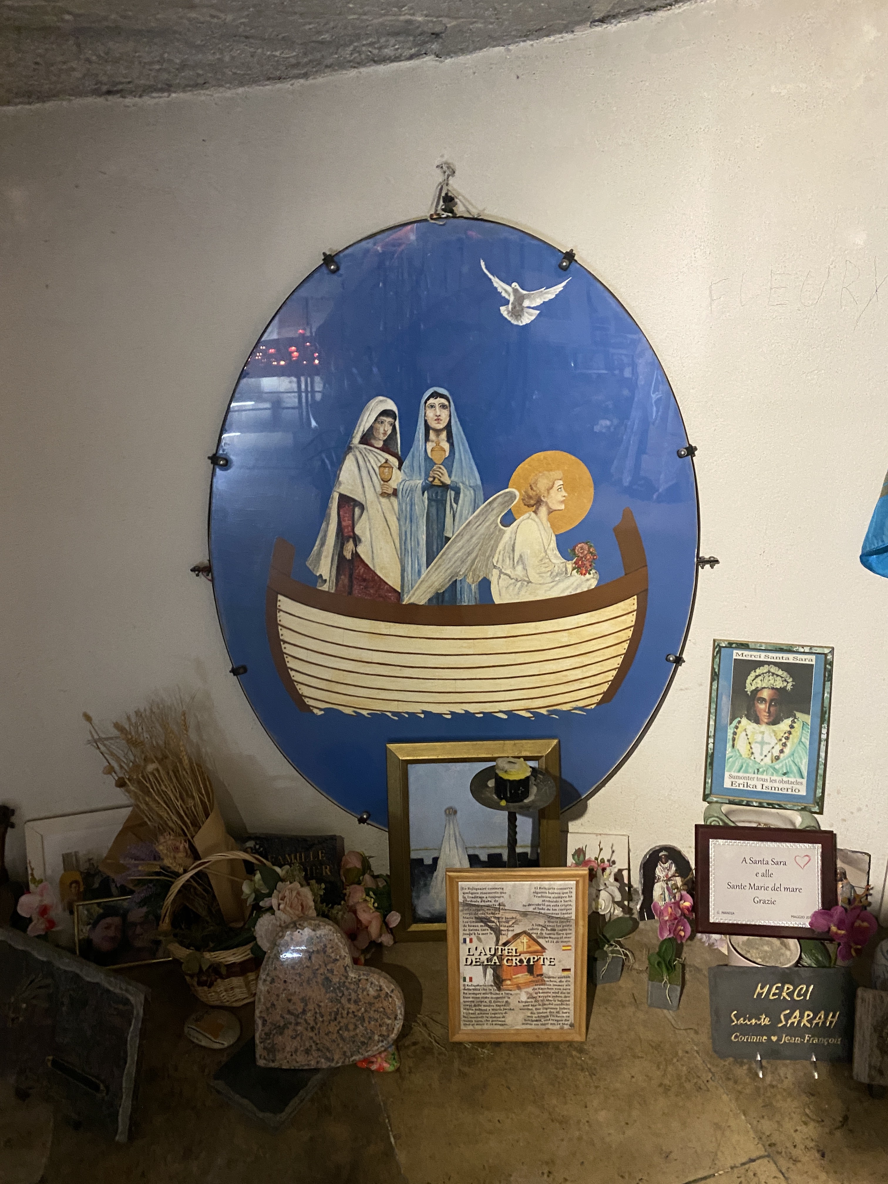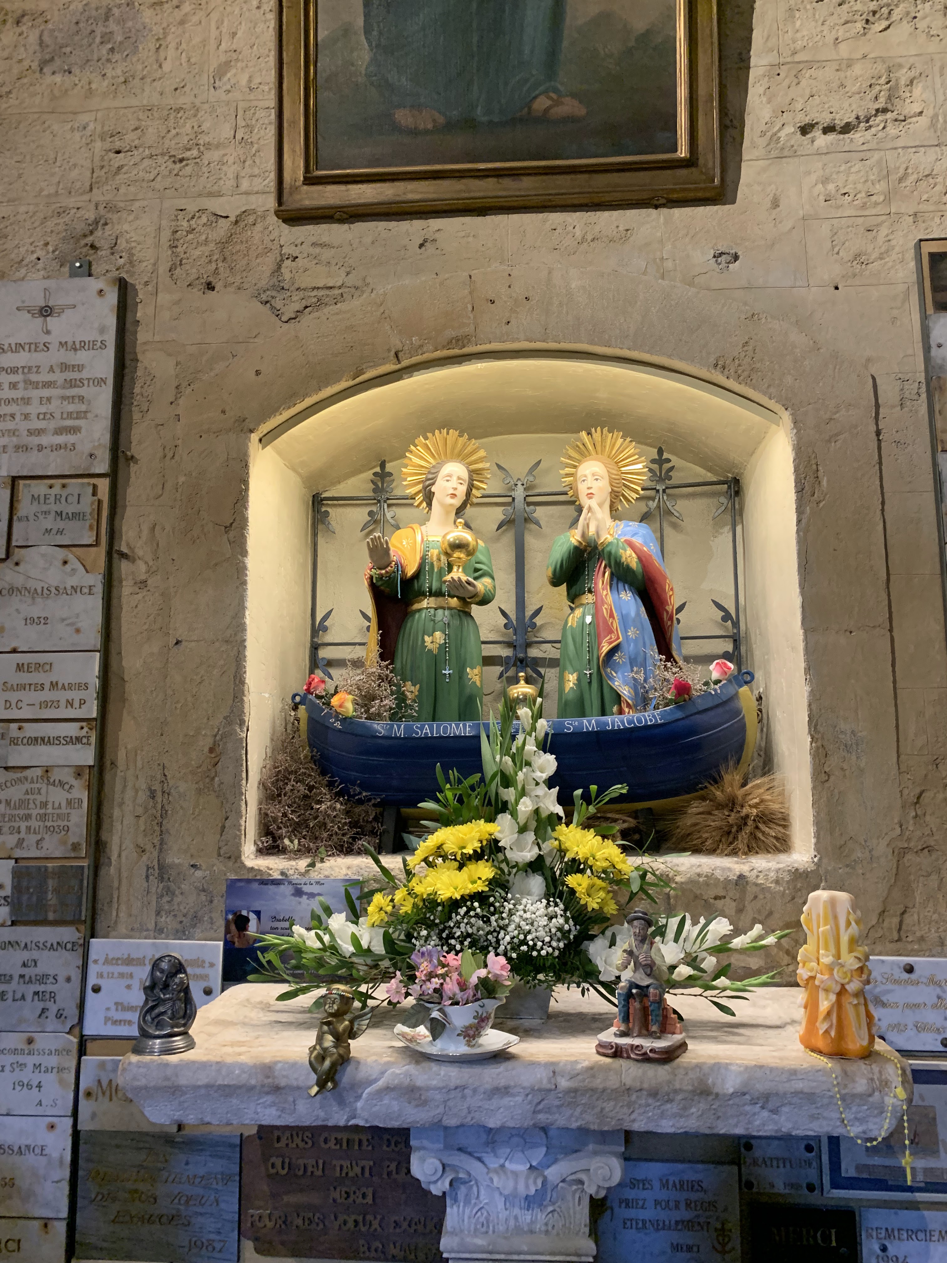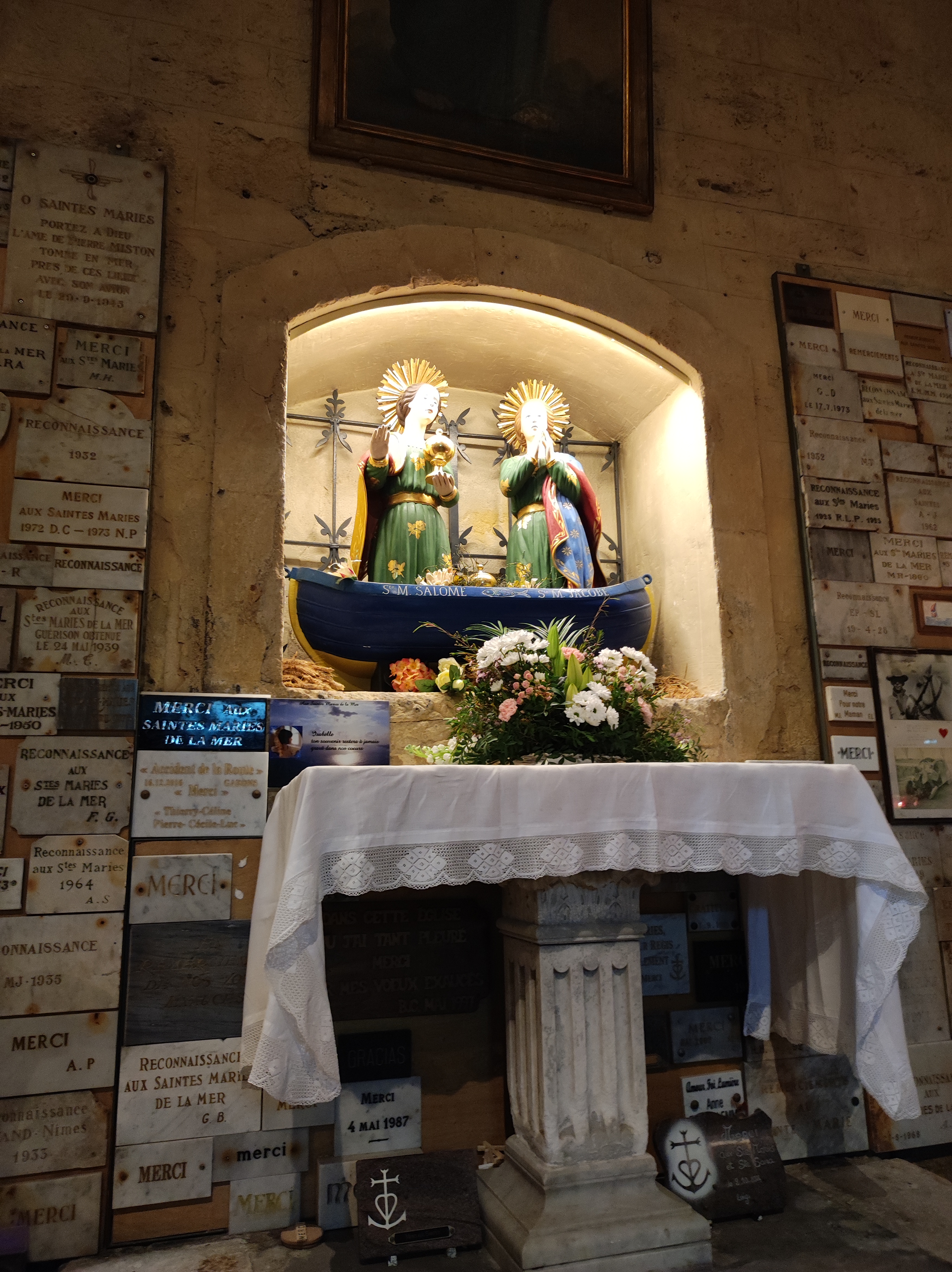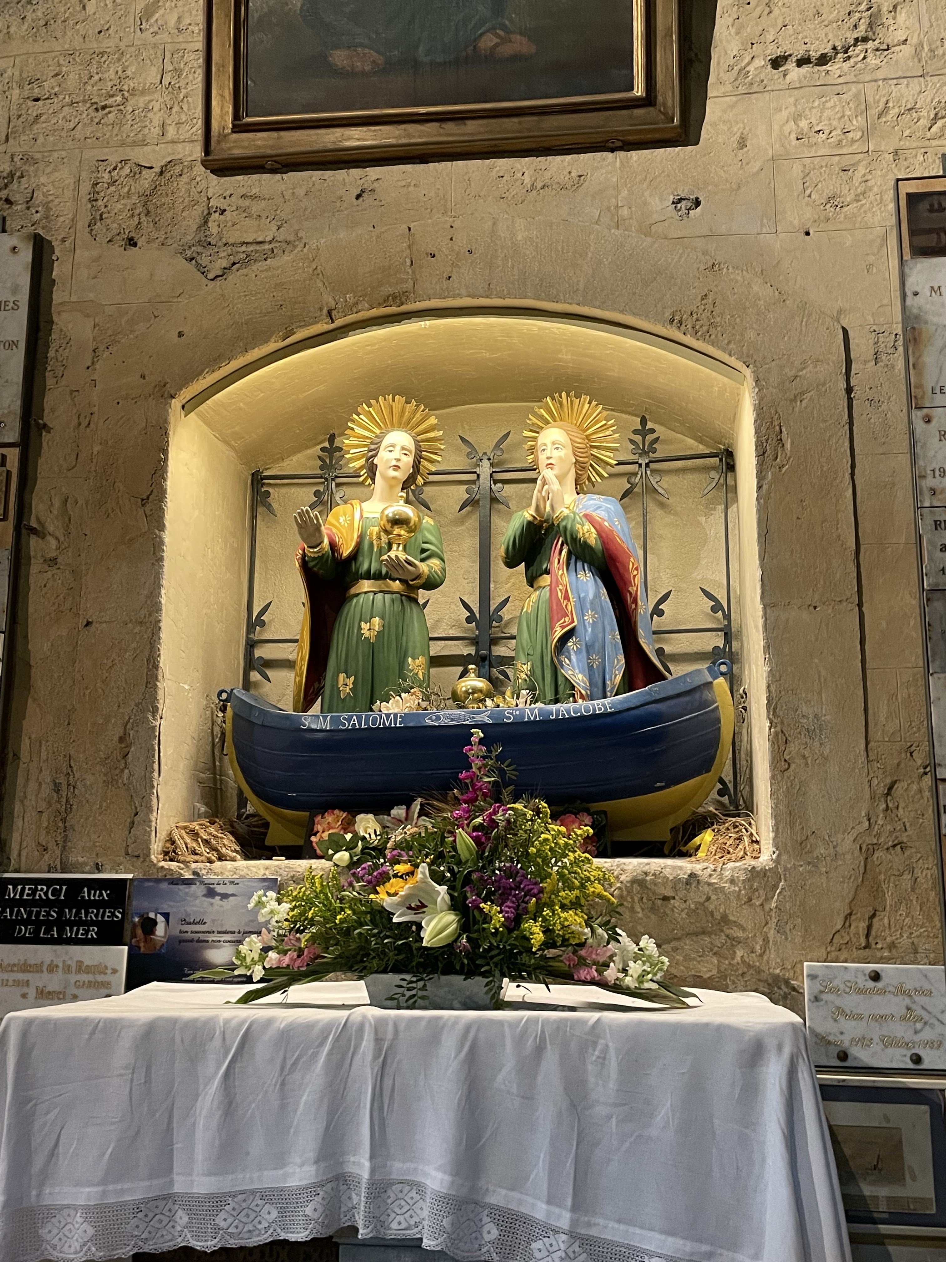 Très belle église et quelle émotions à la vue de Ste Sara. Malheureusement il y avait trop de monde, on passait devant en file indienne, sans avoir le temps de s'arrêter un instant, pour prier Ste Sara ou y laisser une photo...