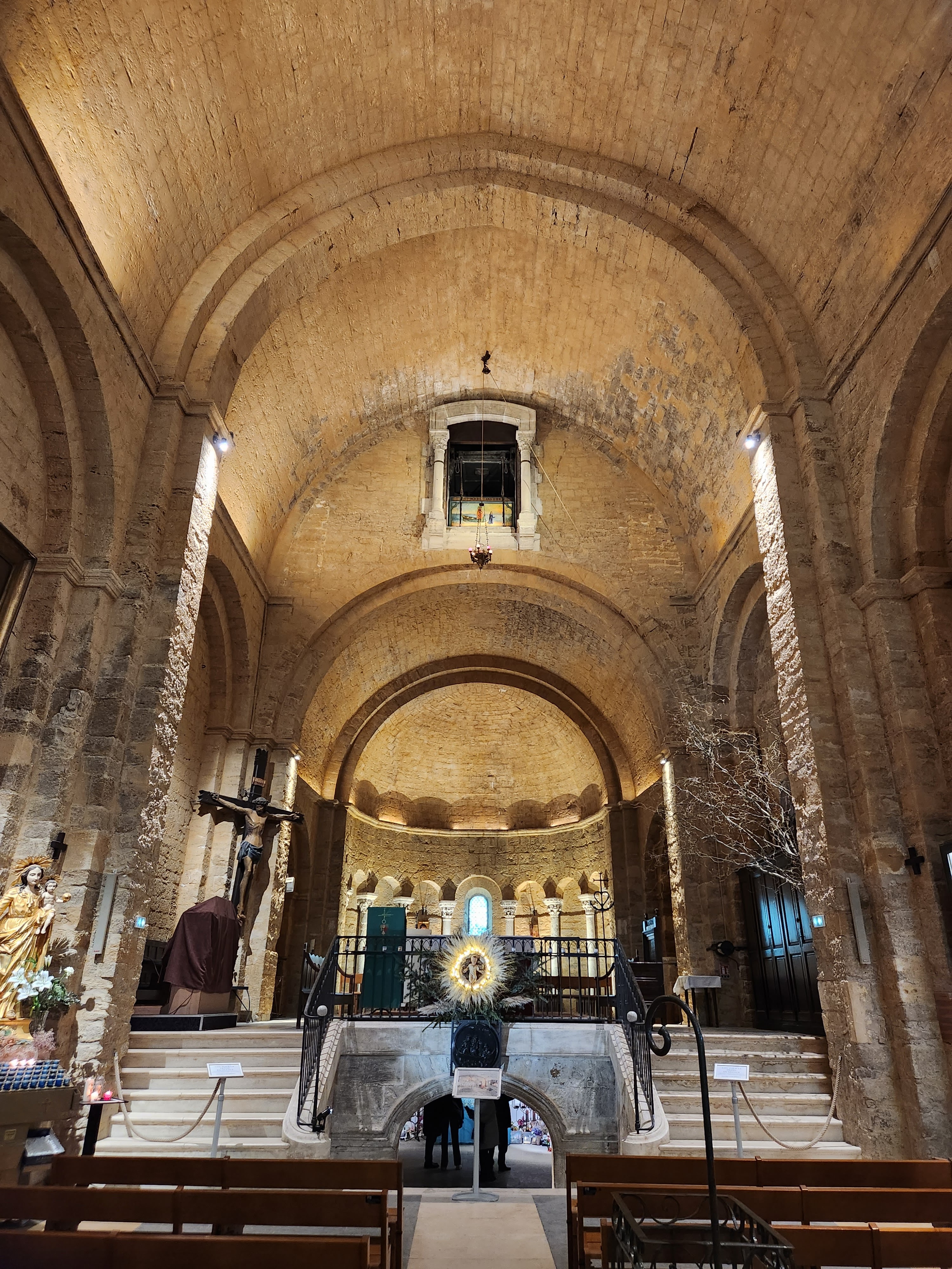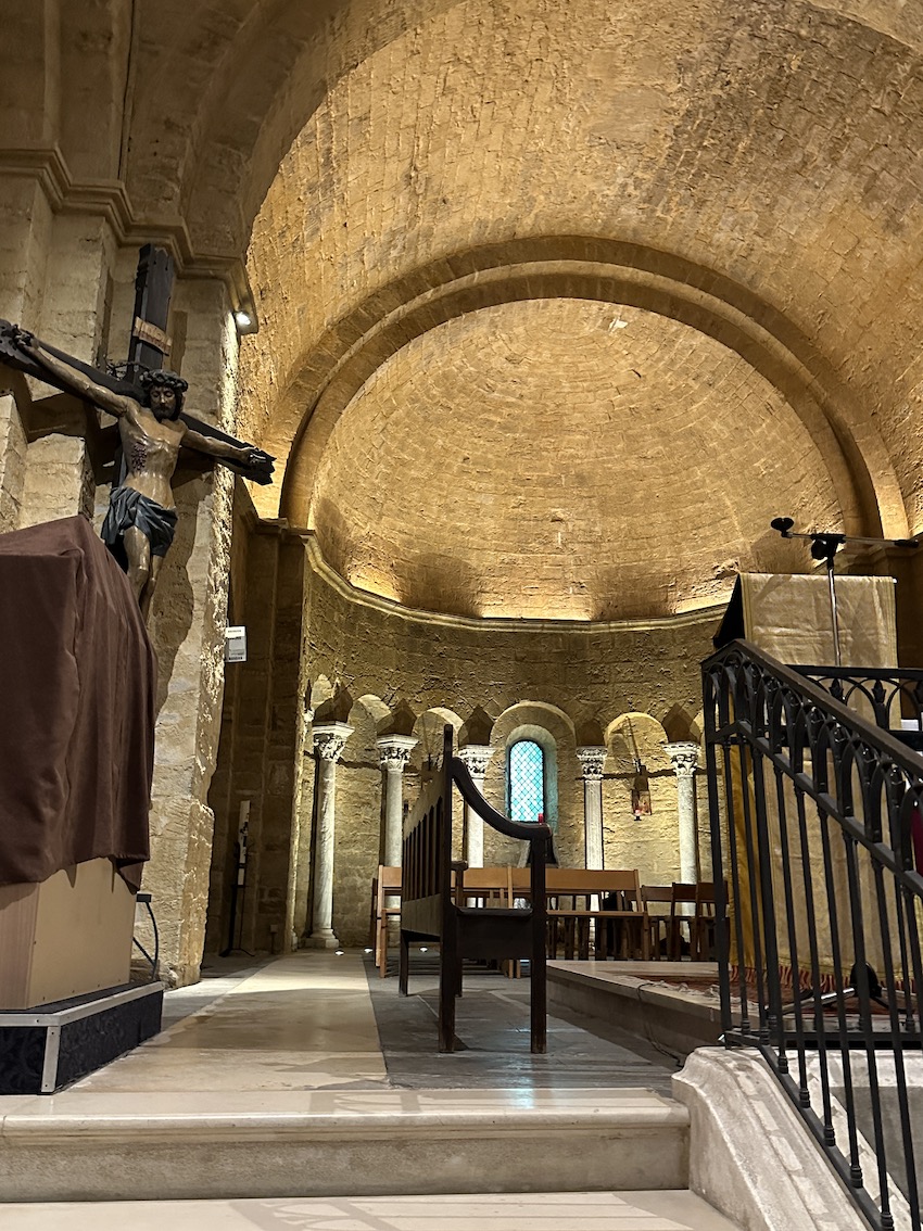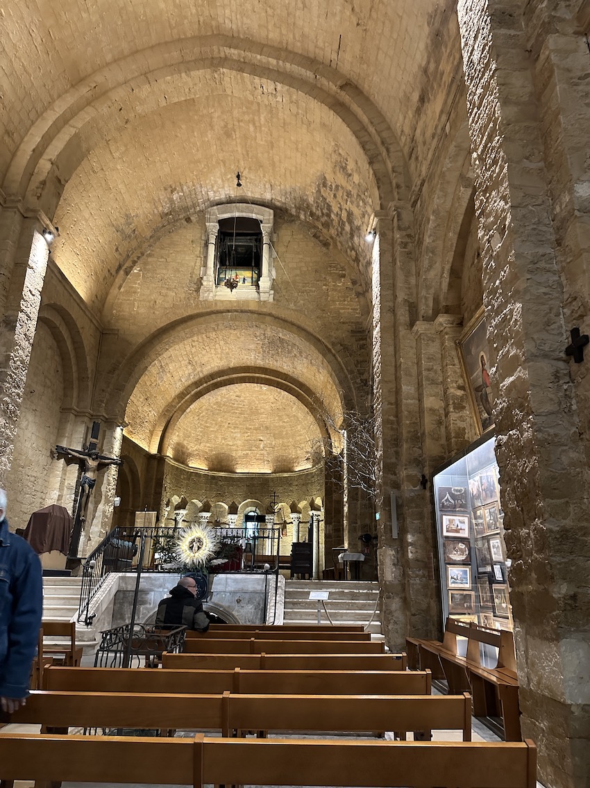 Quel bonheur de découvrir cette église après avoir visité à Arles au musée Arléon l'exposition photo consacrée au pélerinage aux Saintes Marie. Cette église est une merveille de simplicité et de douceur dans un écrin de pierre bien mis en valeur par les éclairages nocturnes. Magique !