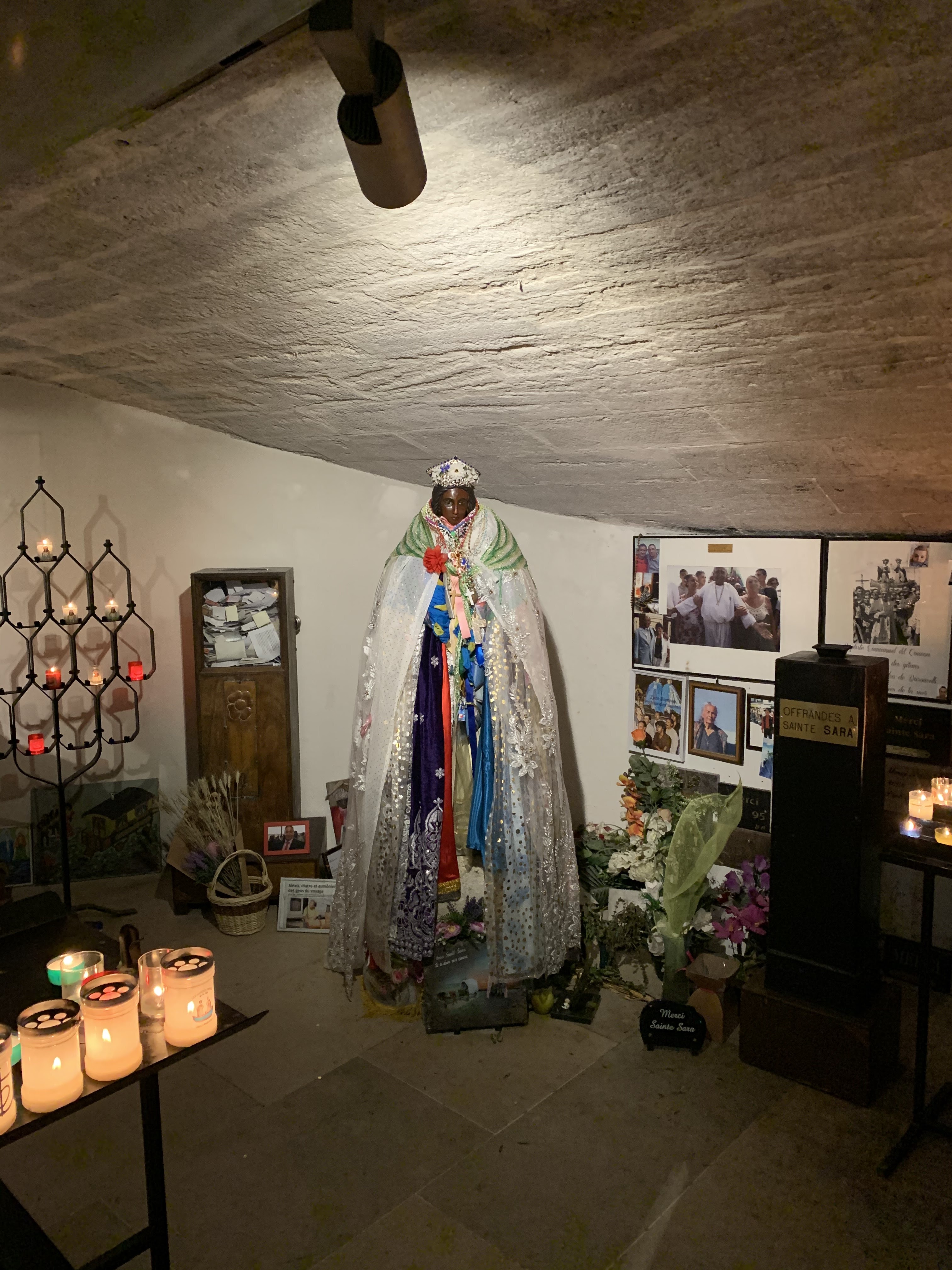 Bonjour Je ne compte plus le nombre de fois que j'ai été dans cette église. Un endroit magique chargé d'histoire Sainte Sara magnifique qui nous protège,Toujours allumé un cierge pour que la lumière soit éternelle Vive sainte Sara Vive les saintes maries