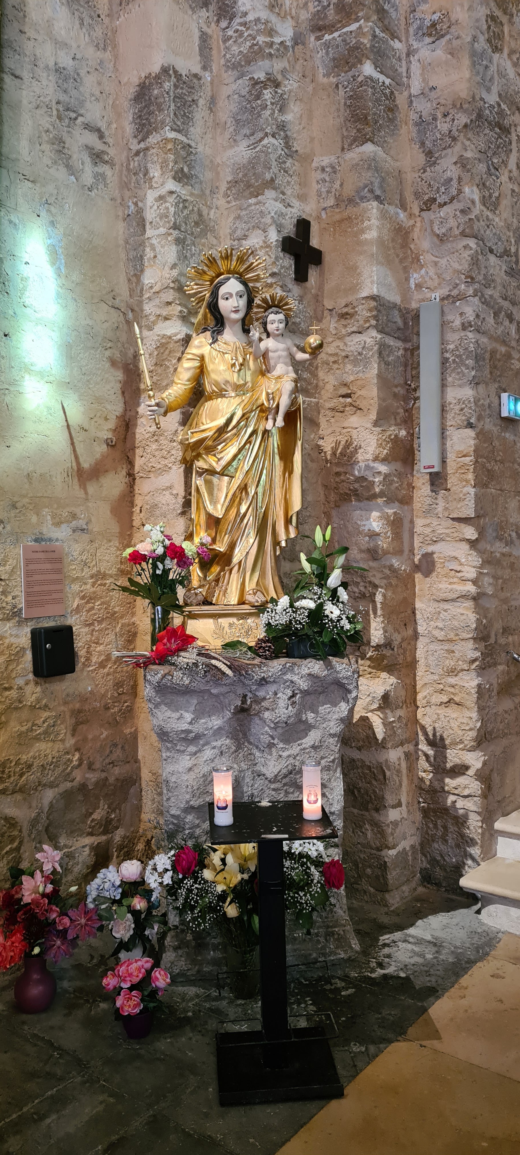 Je recommande cette visite. J' ai bien aimé. C' est une belle église forteresse en Camargue. Ce sanctuaire est très fréquenté par le peuple des tziganes, gitans ou gens du voyage qui vénèrent ici leur sainte patronne Sara. Je conseille la visite de la crypte au fond de l'église. Vous y verrez sainte Sara dans ses beaux habits. Je suggère aussi de monter les 53 marches pour atteindre le sommet de l'église. On peut y faire le tour par le chemin de ronde et ainsi avoir une vue à 360 degrés sur la ville et un beau panorama sur la mer Méditerranée. L'accès se fait par l' extérieur sud de l'église. 3 € sont demandés pour l' entretien du bâtiment. Je joins en annexe quelques photographies pour imager le texte. Si possible, svp mettre un like ou utile sous les photos et l'avis pour m'encourager dans ma démarche. Ça fait plaisir d'en recevoir par retour. Merci. En attendant, bonne visite à vous. Eric de Féy F-57 Metz (Moselle) France.