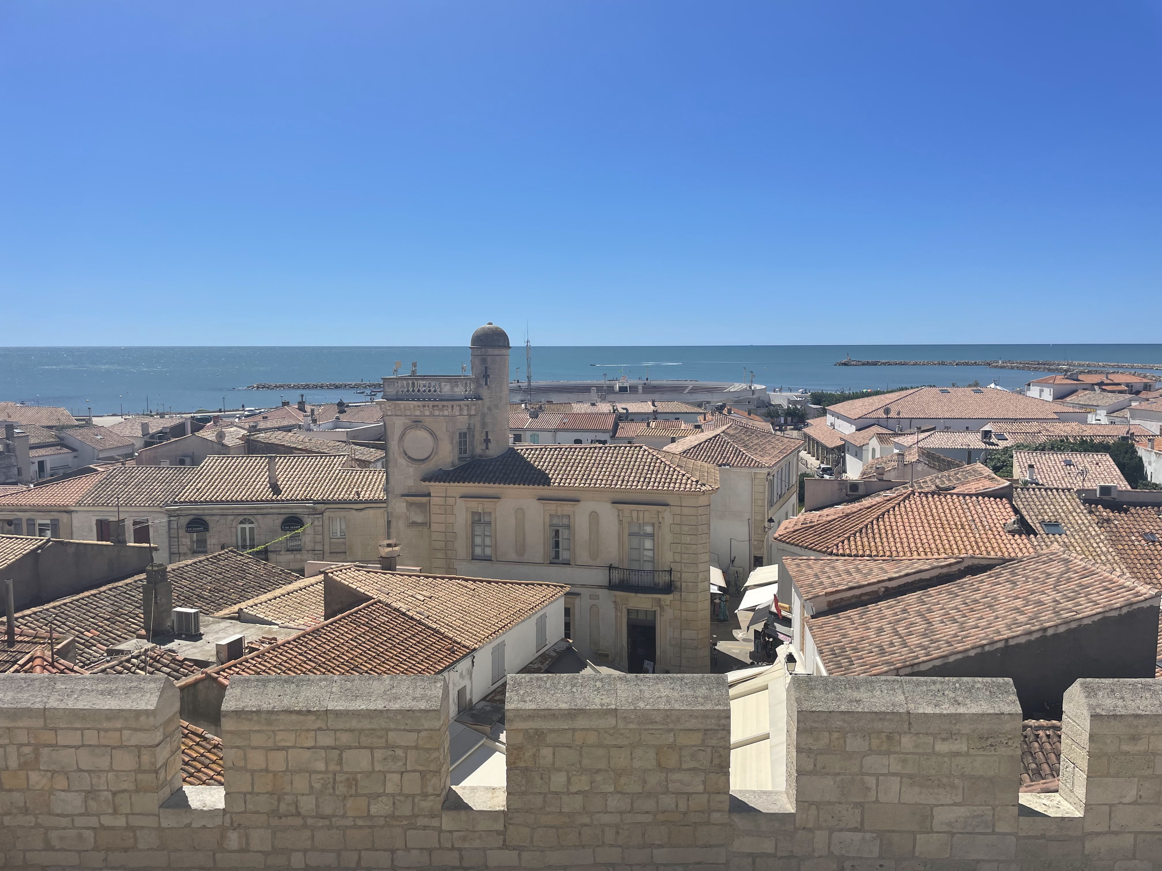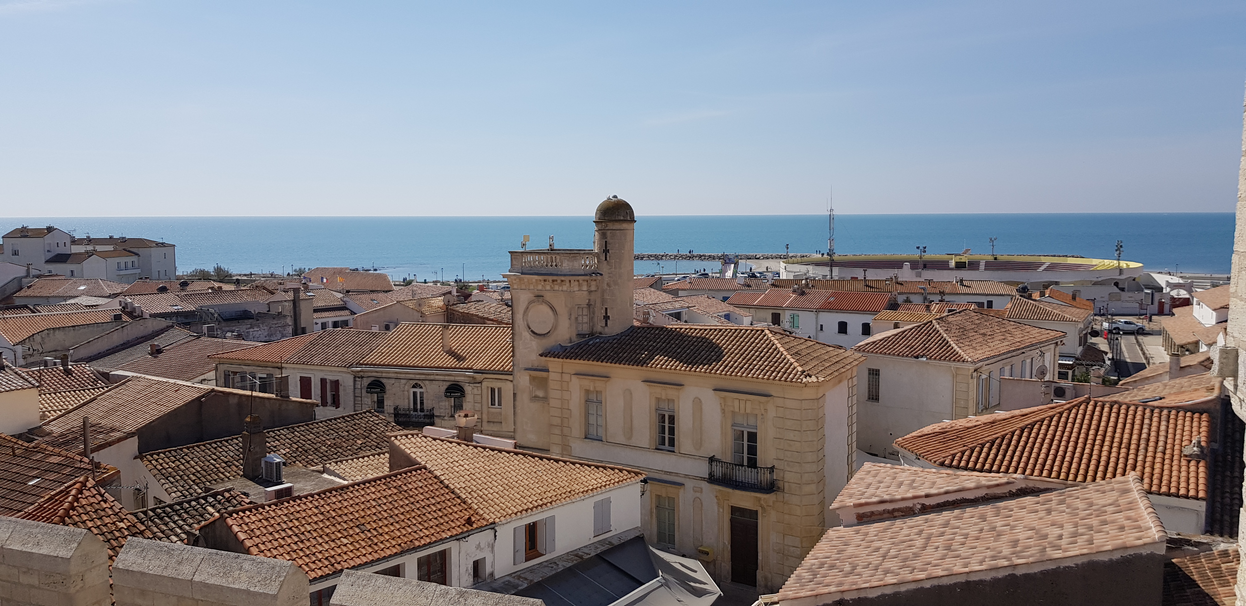 Belle balade paisible le long de cette petite ville portuaire Au bord de la Camargue, à visiter tout comme Aiguës-Mortes , certains monuments offrent une vue imprenable sur les toits