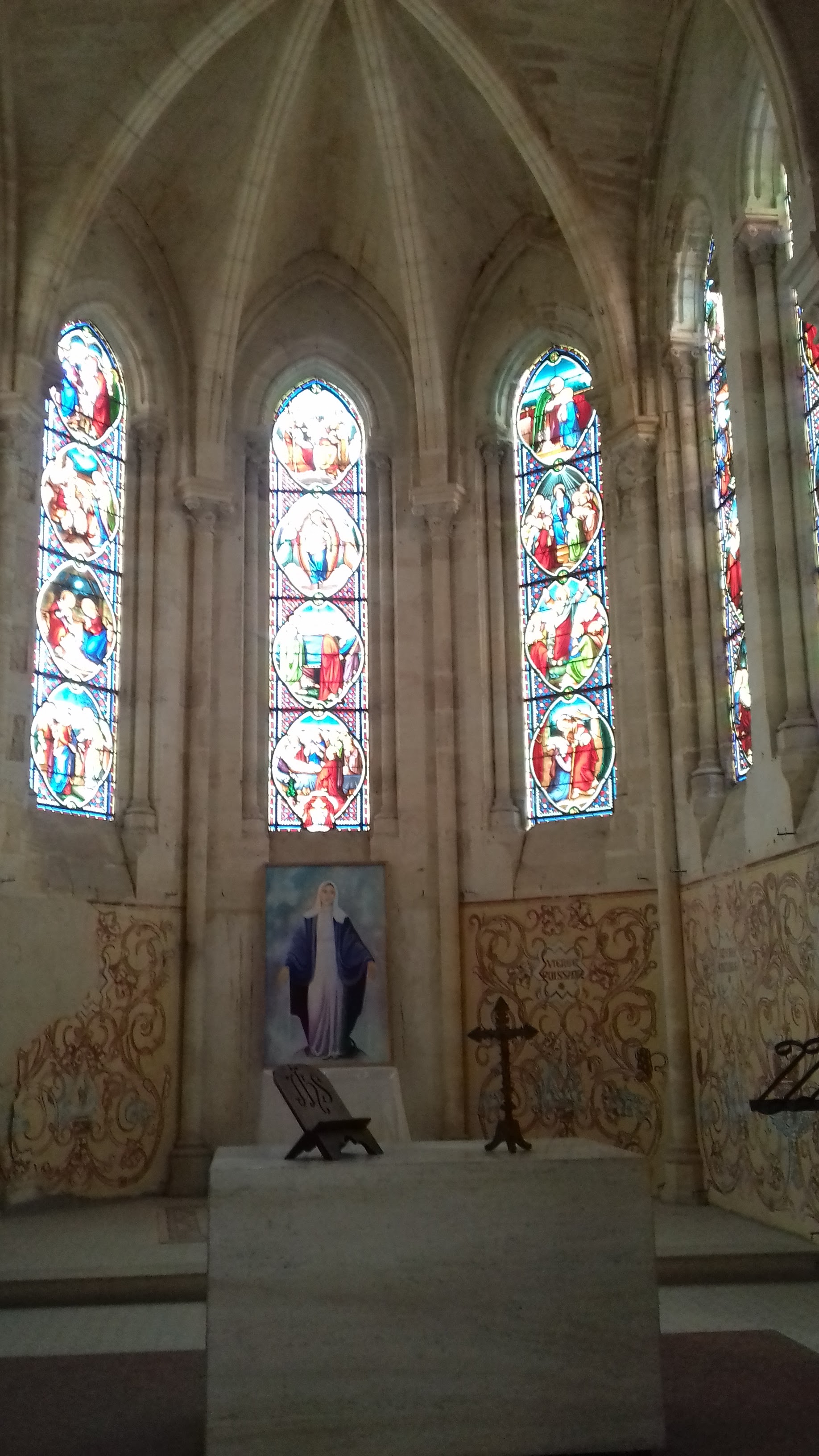 Un lieu étonnant, une église bâtie à l'étage supérieur, au dessus de la chapelle où l'on peut accéder à la fontaine miraculeuse.