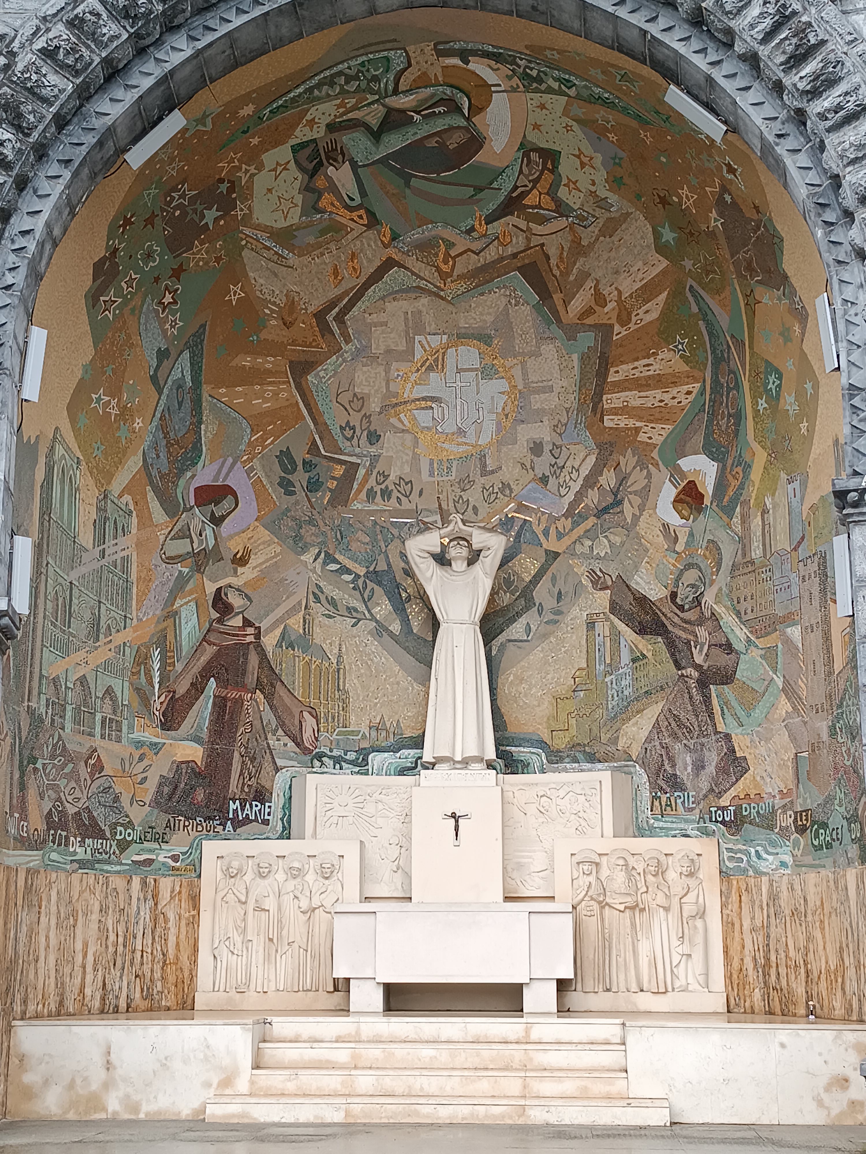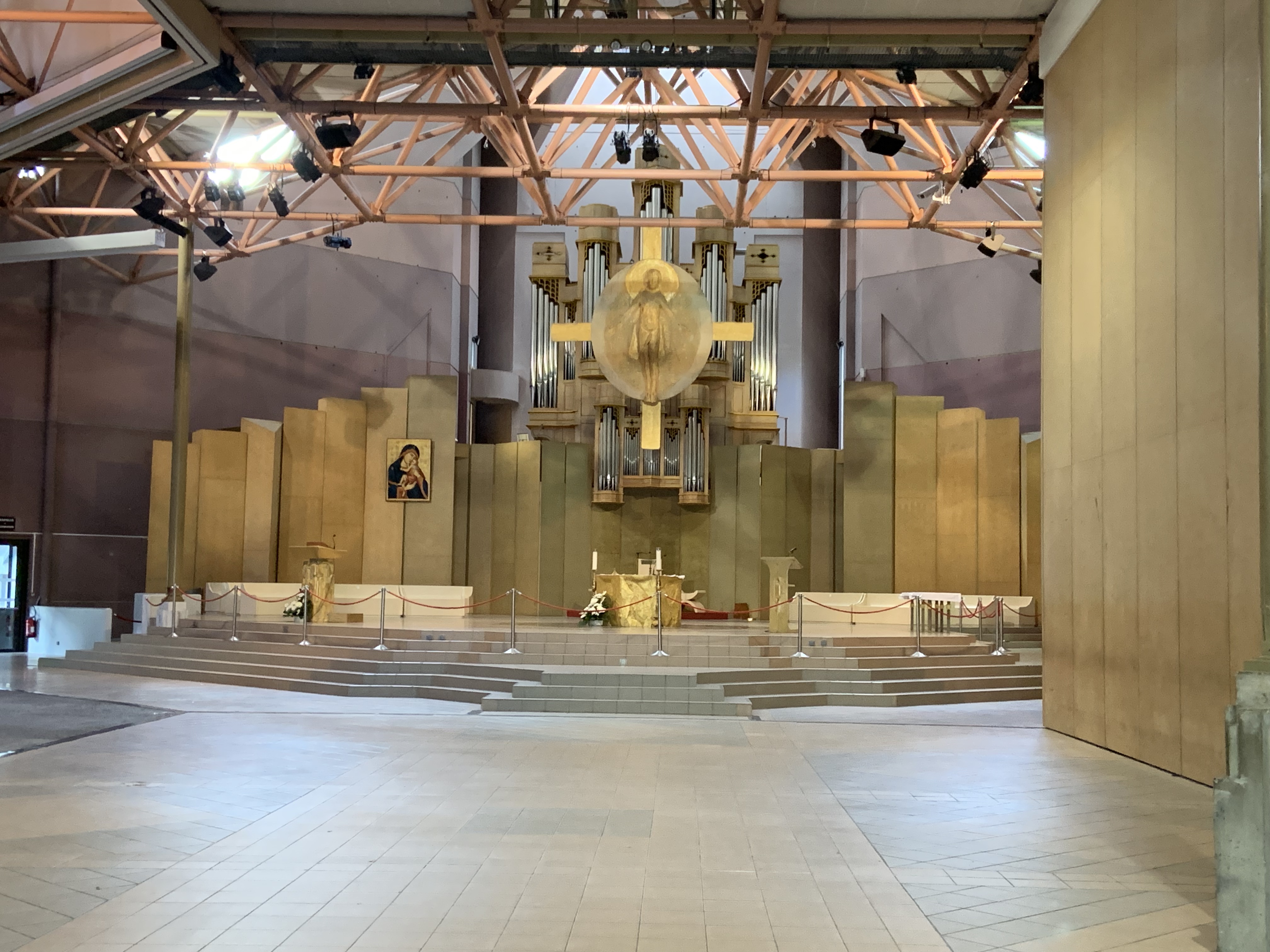Superbe visite, je ne suis pas pèlerin ni catholique et pourtant j'ai bien aimé. Le sanctuaire est avant tout très joli, un grand parc au milieu des montagnes. Les différentes églises et lieux de prière sont également très joliment décorés, dans la tradition catholique, à outrance. Mention spéciale pour la basilique Pie X qui est en réalité tout l'inverse. La sobriété de la décoration et la froideur de l'édifice nous ferait presque croire à un lieu de culte protestant. Cependant elle est la partie la plus marquante du sanctuaire par sont improbable localisation (sous terre) et sa surprenante taille.