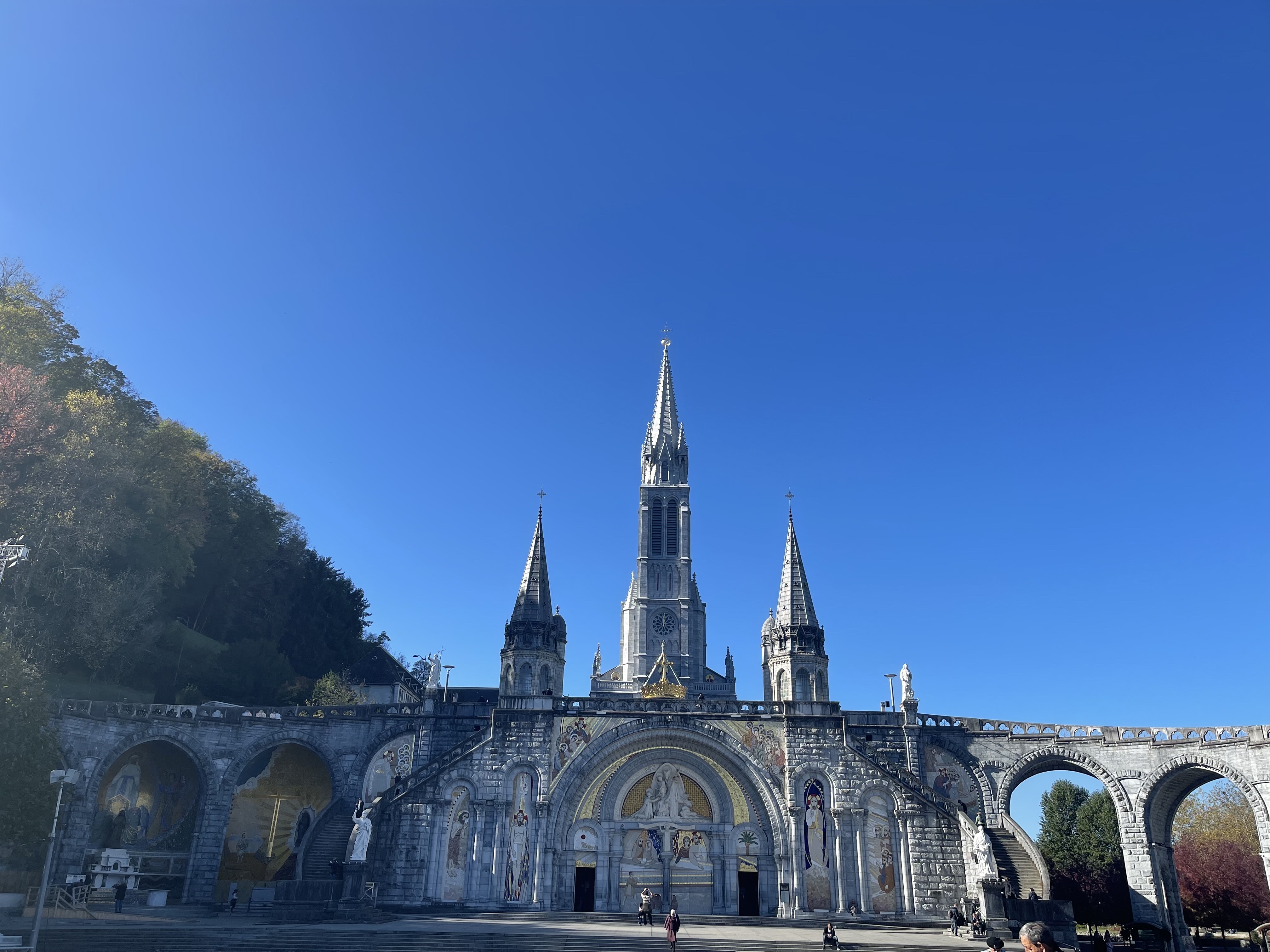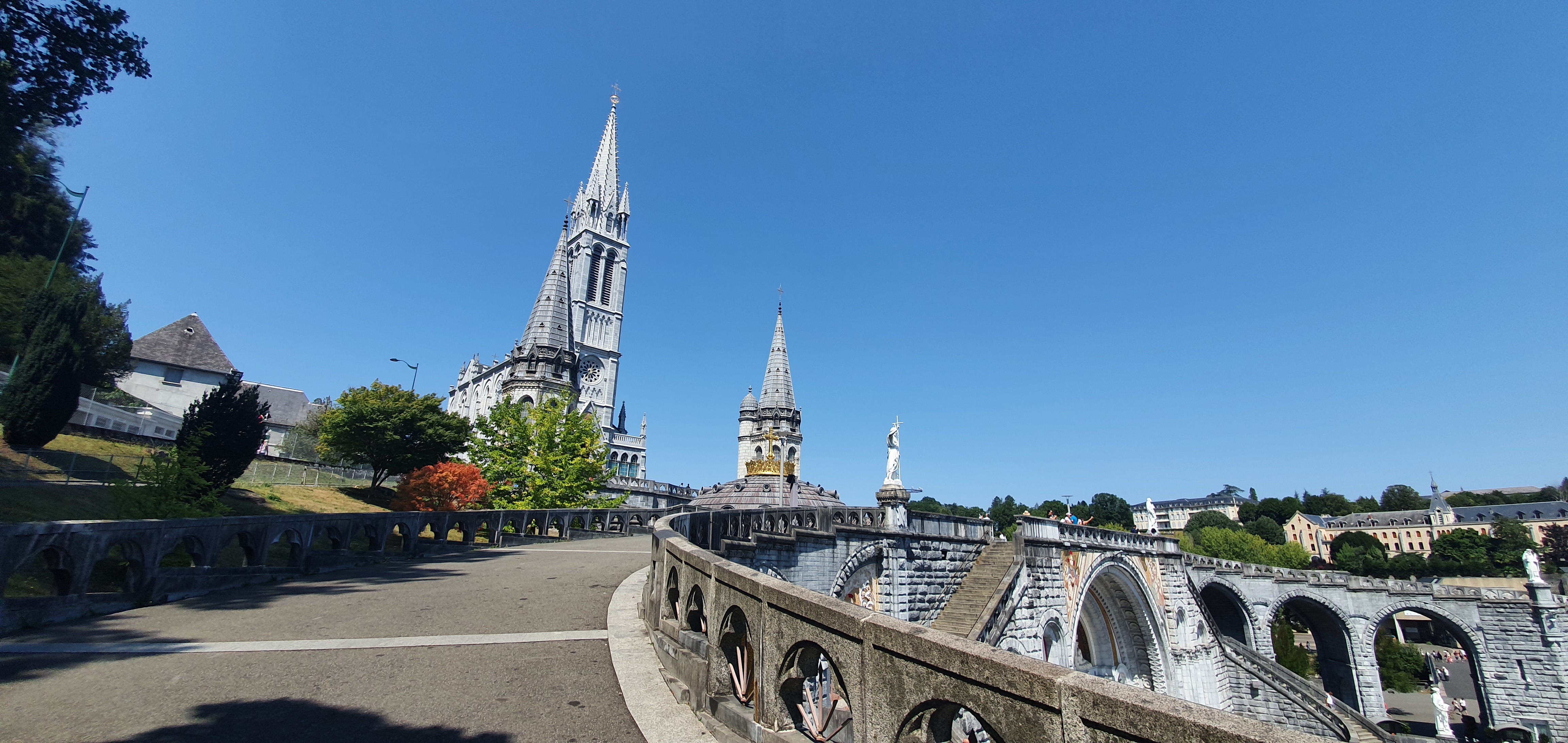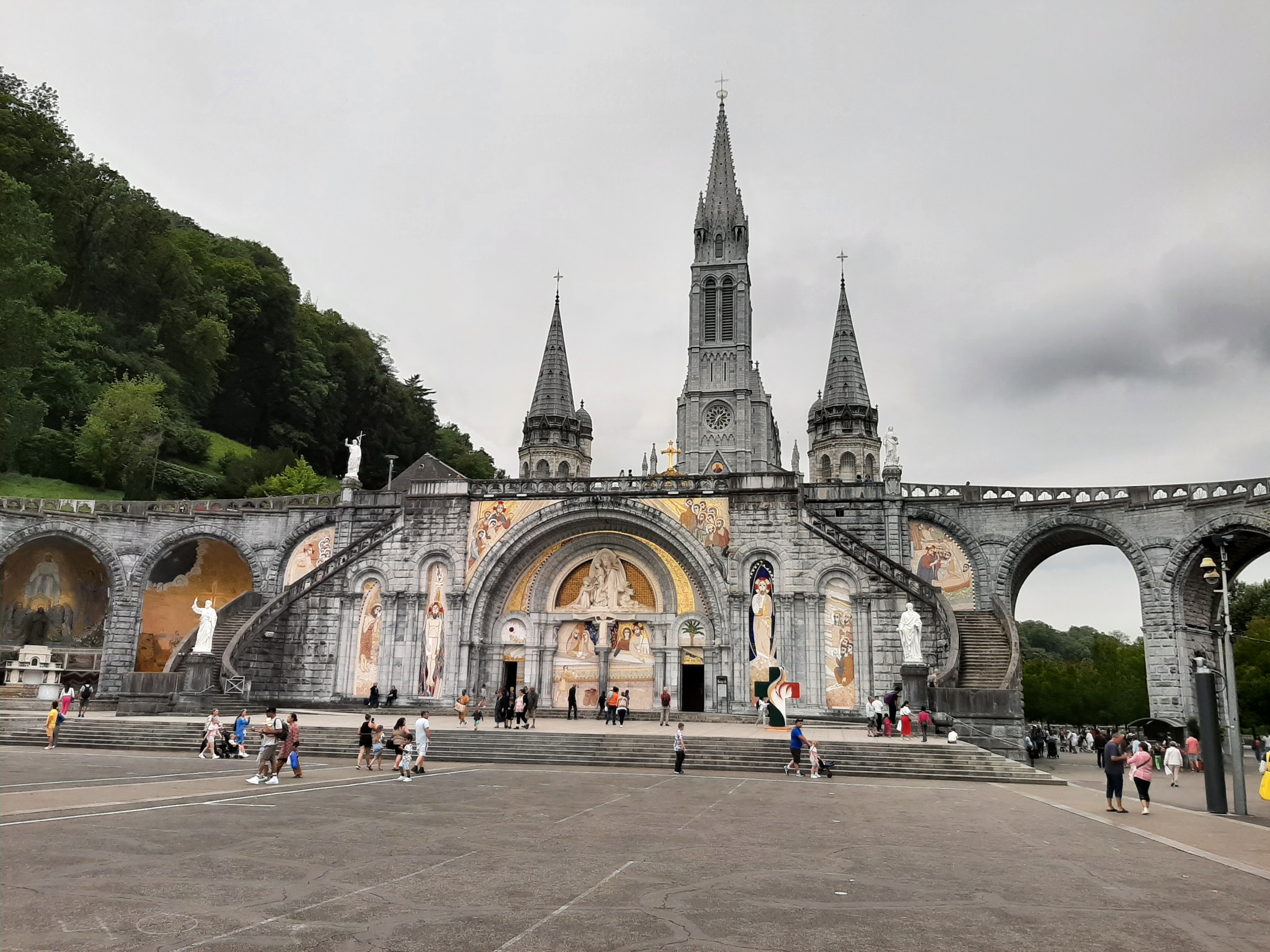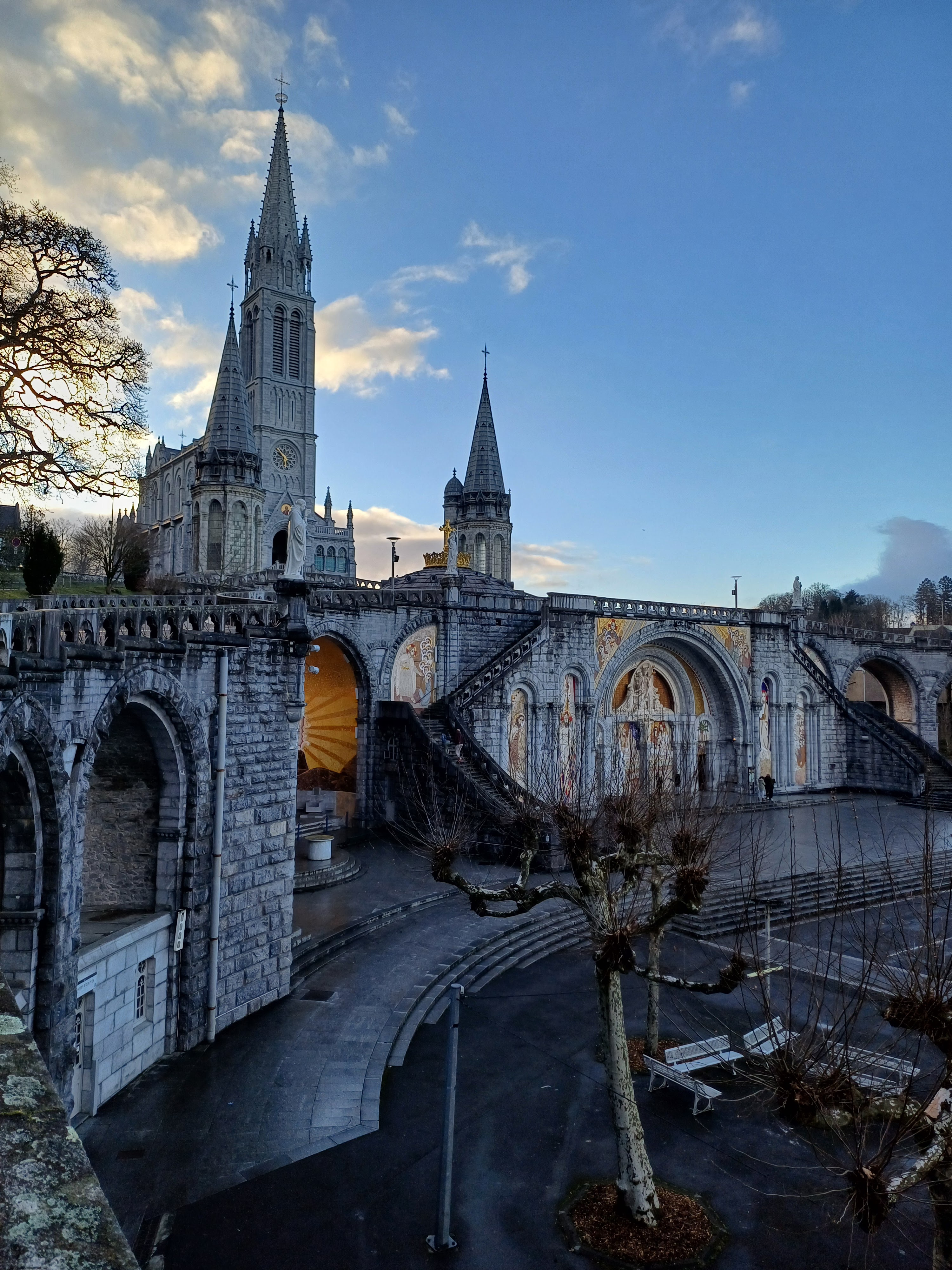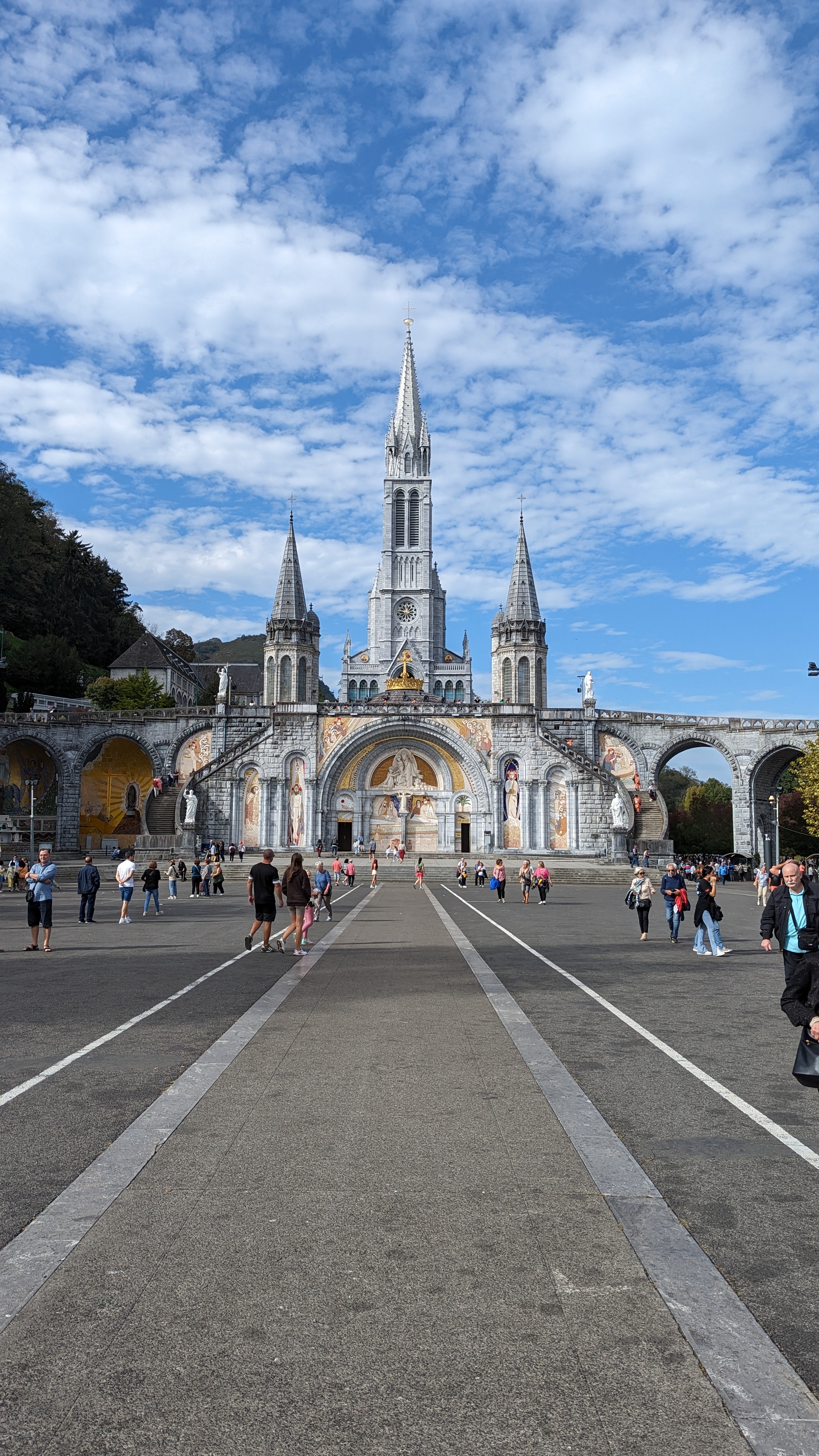 Toujours autant de plaisir à y venir. Ne faites pas comme moi, passez voir la basilique sous terraine qui est sous la grande esplanade, par ce qu'elle est moderne mais elle est splendide. Il y a aussi la nouvelle basilique de l'autre côté du Gave. Et bien sûr les trois basiliques superposés les une sur l'autre et le chemin de croix; qui pour info dans le temps il y avait des pénitents qui faisaient les treize étapes de la vie du Christ sur les genoux en faisant leurs prières. Beau petit parcours avec une forte inclinaison.