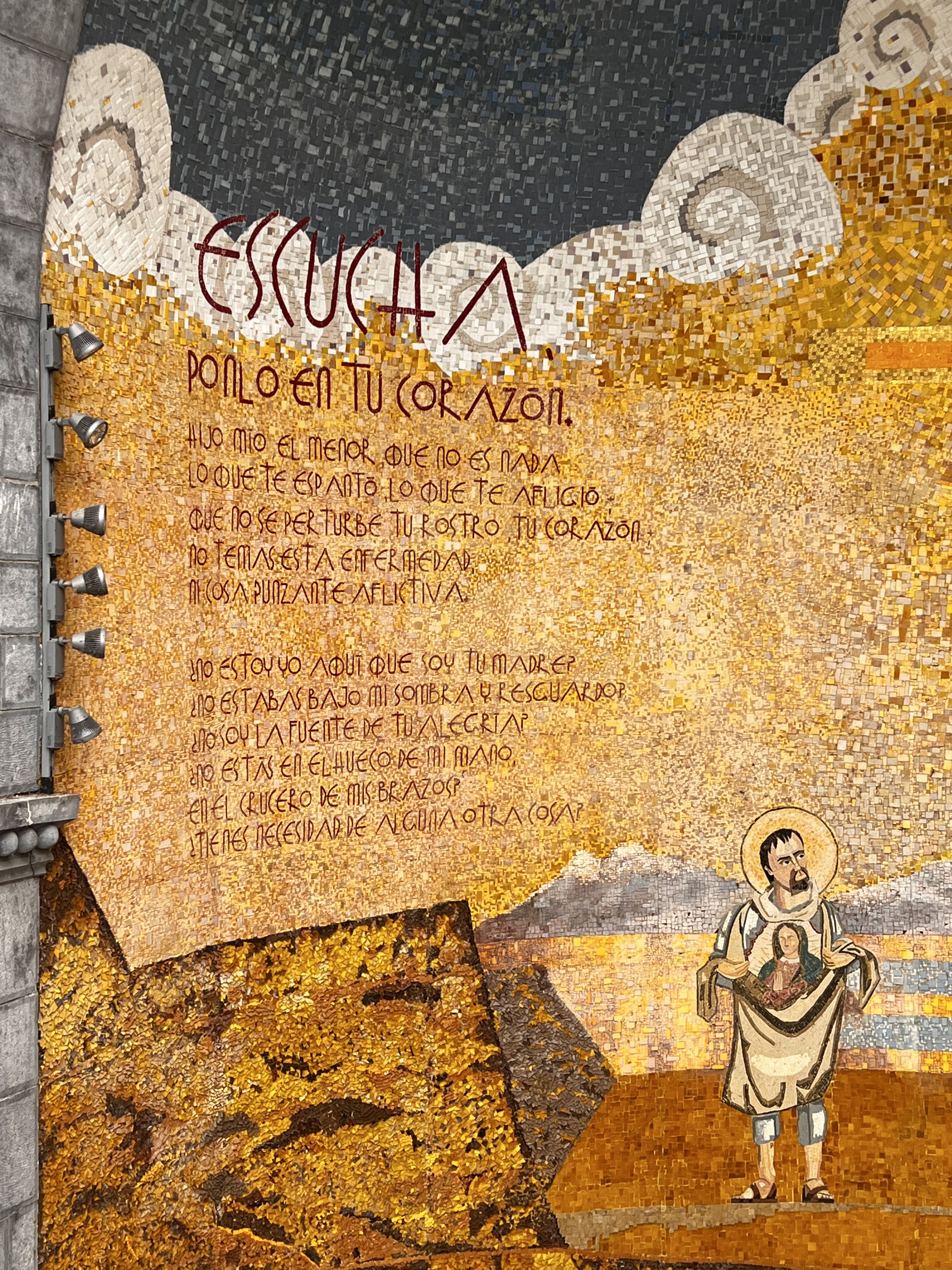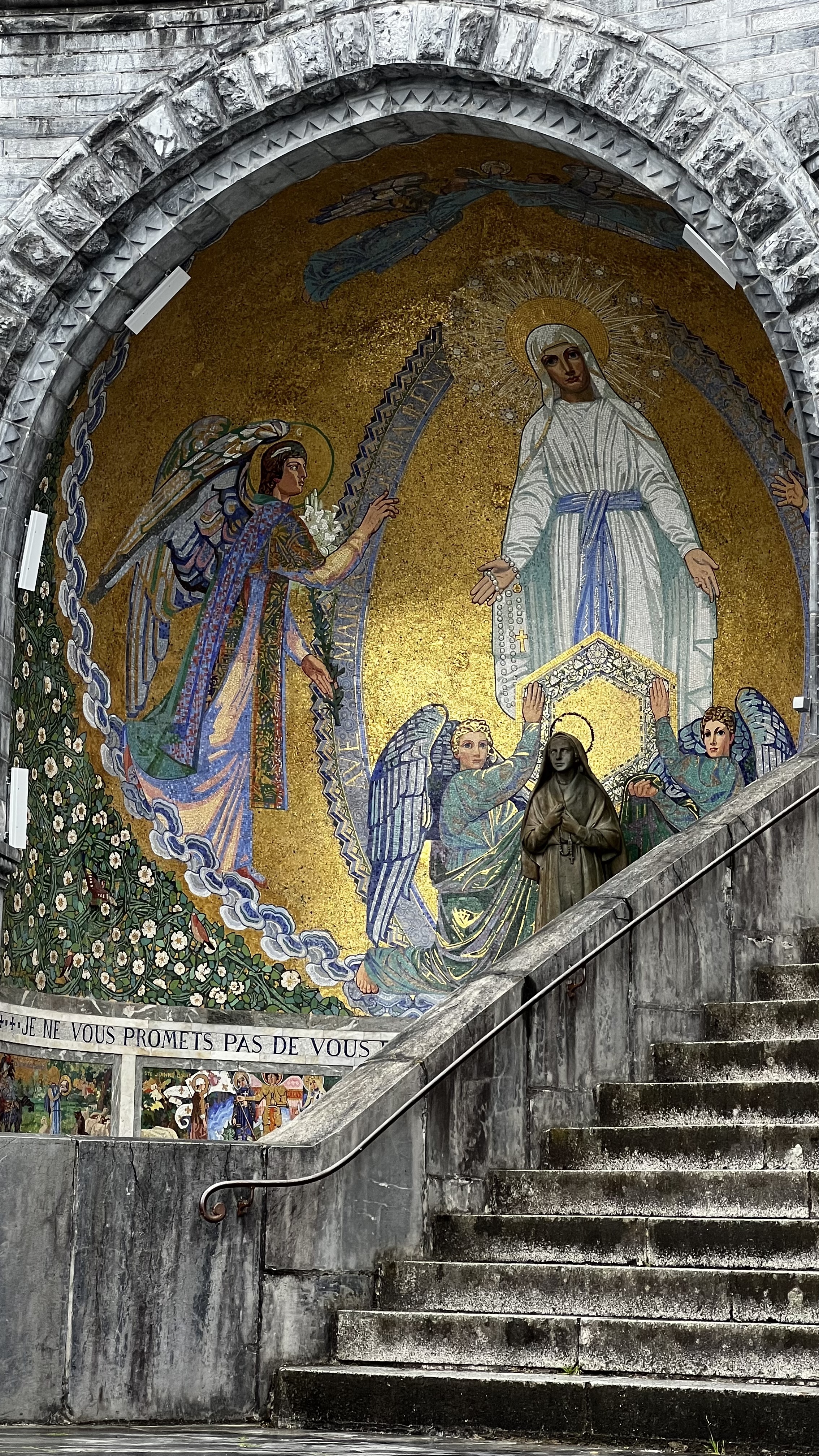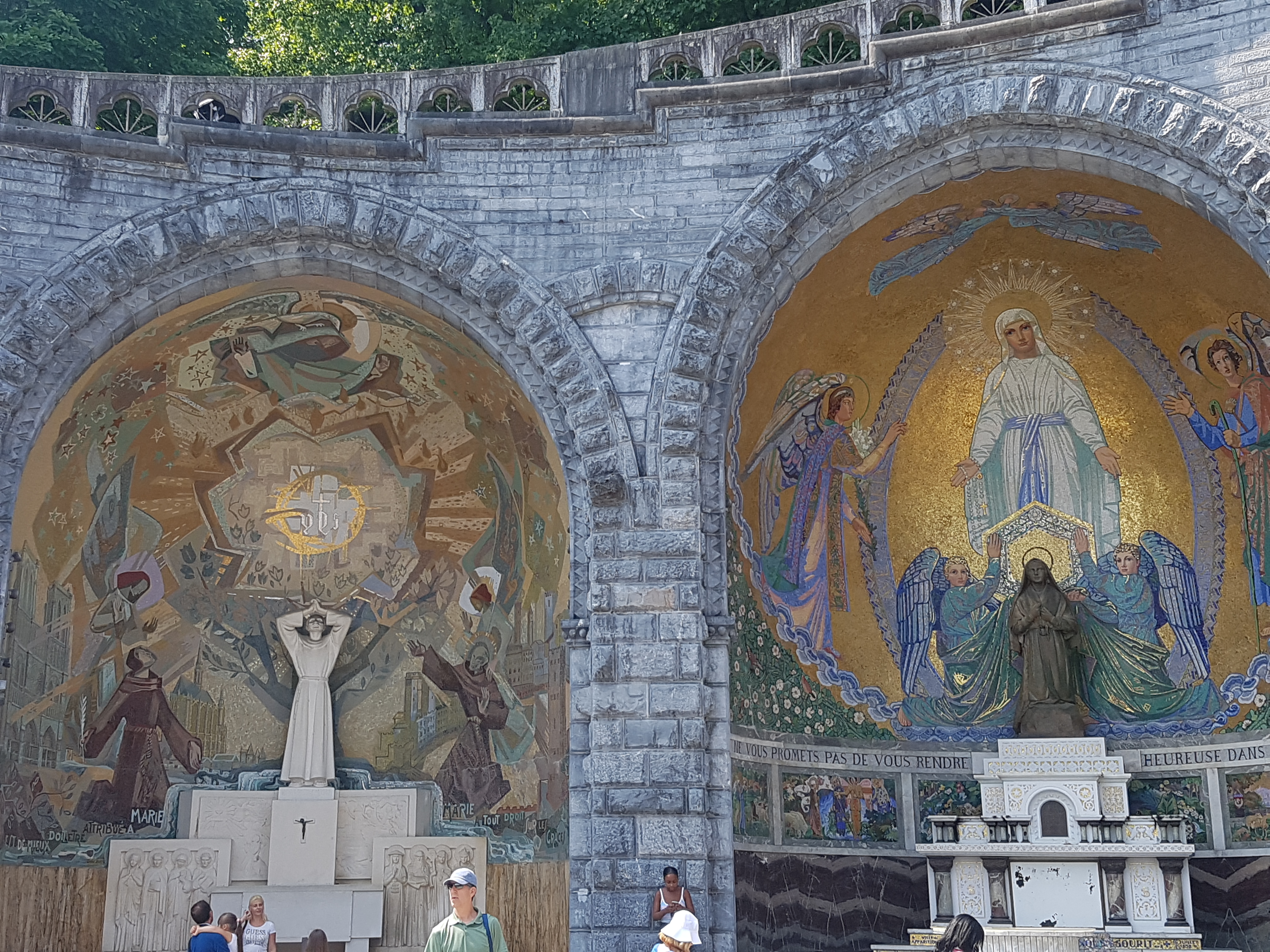 Espérer contre tout espérance! Quel réconfort de voir tant de bonne volonté et de support! Le sanctuaire est harmonieux avec une architecture sobre et la nature sublime aux alentours, les mosaïques de la basilique sont une pure merveille! Par contre la ville de Lourdes est laide, délabrée et négligée- dommage !