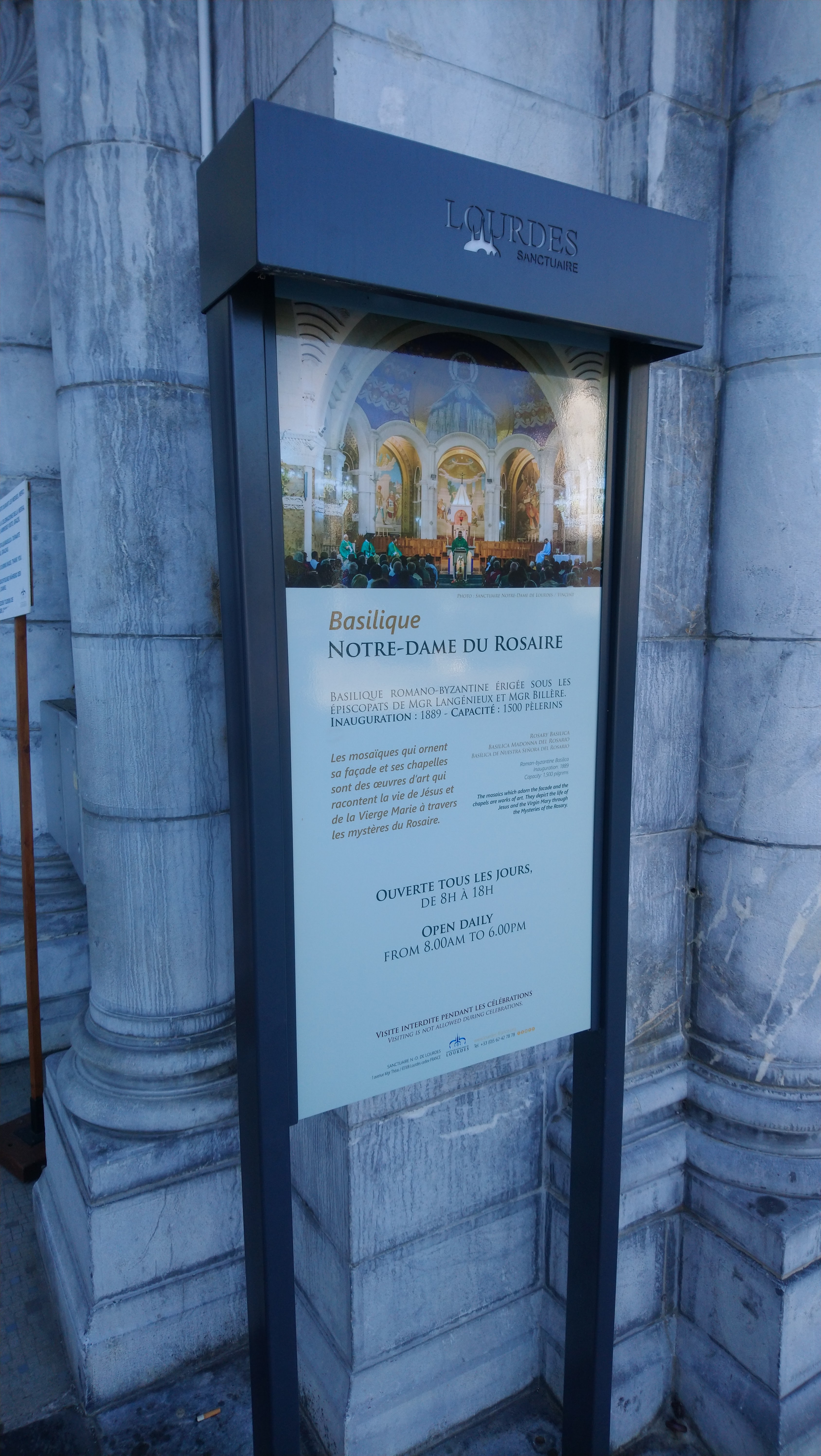 Voici toutes les informations sur le Église catholique Sanctuaire Notre-Dame de Lourdes qui ce trouve au 1 Av. Mgr Théas, 65108 Lourdes (65). Sur cette fiche vous trouverez les photos, l'adresse, les horaires d'ouverture, le numero de téléphone et les avis clients.Vous pouvez églement rédiger un avis si vous le souhaitez en bas de page.