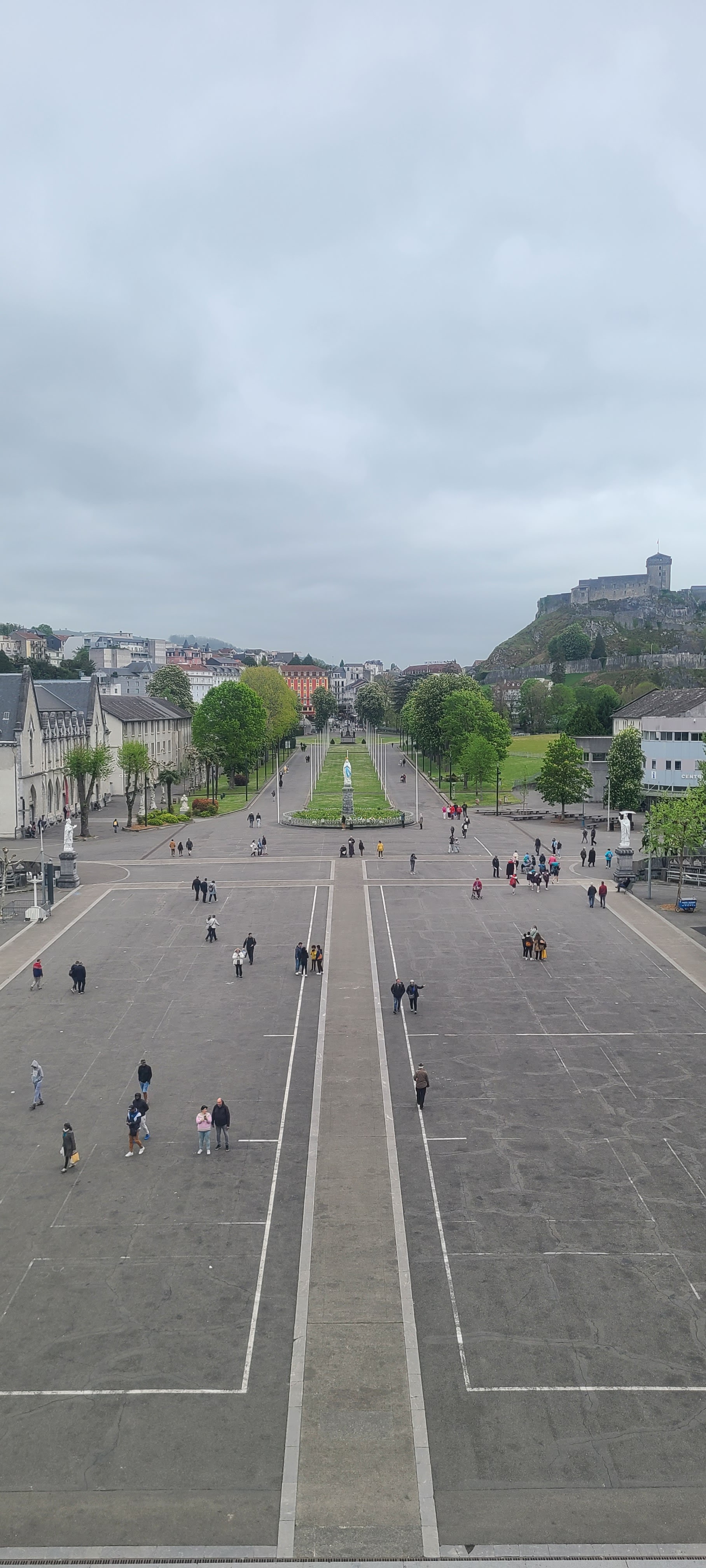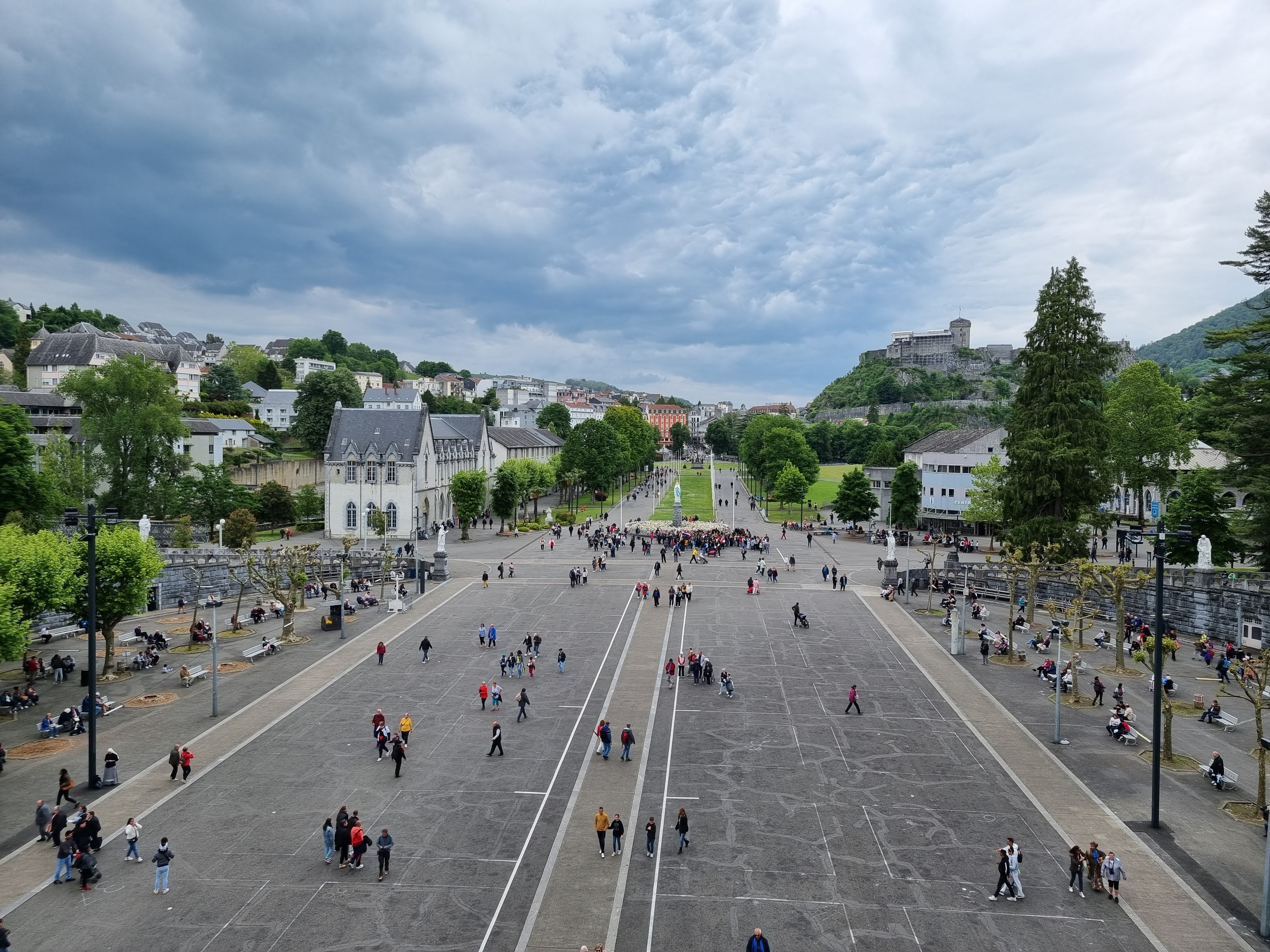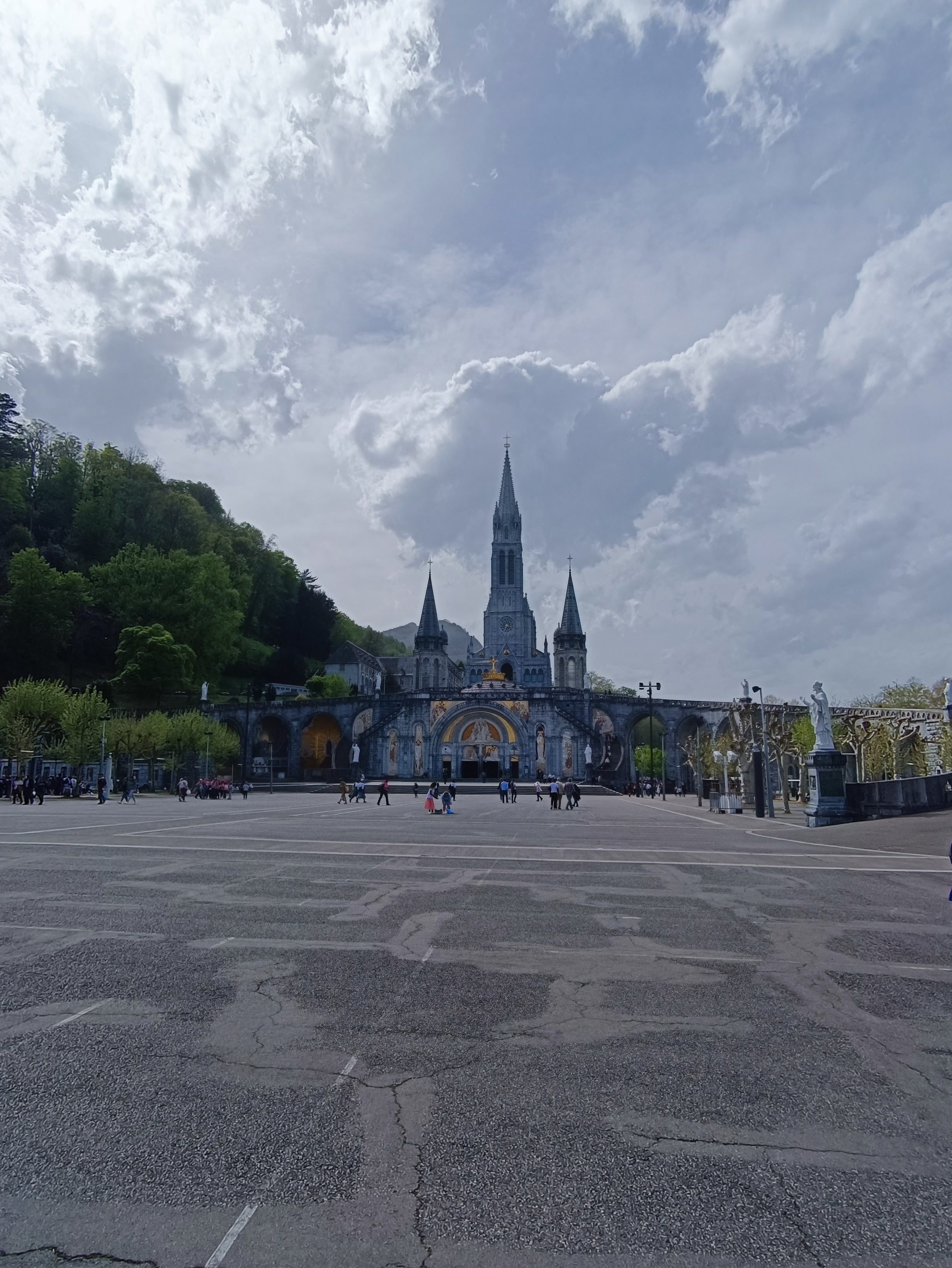 Tres beau et immense .... lieu sacré pour la priere .... juste apres vous avez la grotte de Massabielle dans laquelle il y a toujours des messes .... faut visiter .... de part et d'autre de la grotte il y a les robinets d'eau sacree et juste apres il y a les puscines ou vous descendez entierement dans l'eau sacrée ... celui qui part a Lourdes et ne descend pas entierement dans l'eau sacrée, il n'a rien fait .... faut attendre un peu, faire la baignade, remplir de l'eau sacrée et bien sur participer aux messes , il y en a jusqu'apres minuit .... j'espere avoir aidé .... meilleures salutations ....
