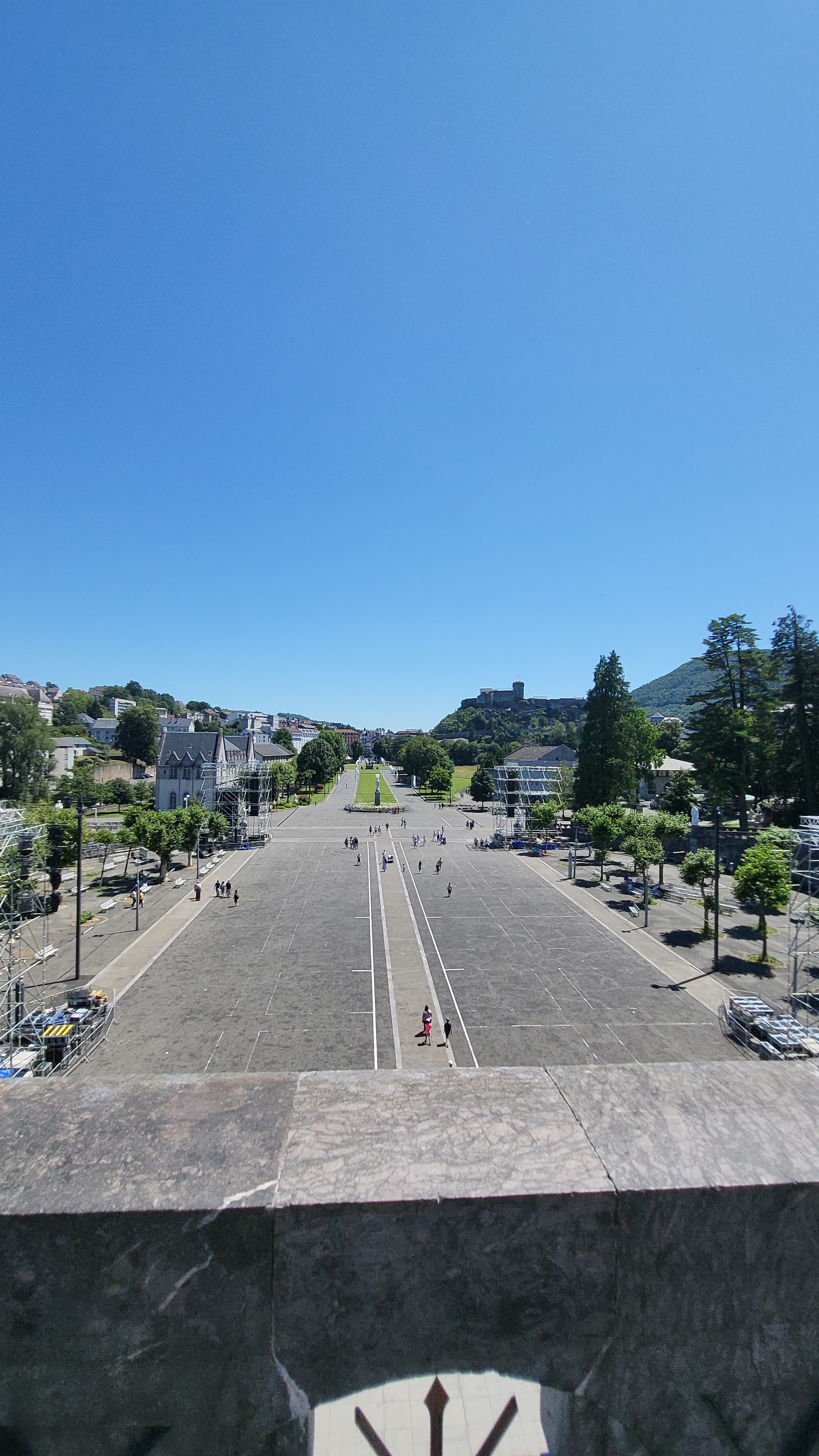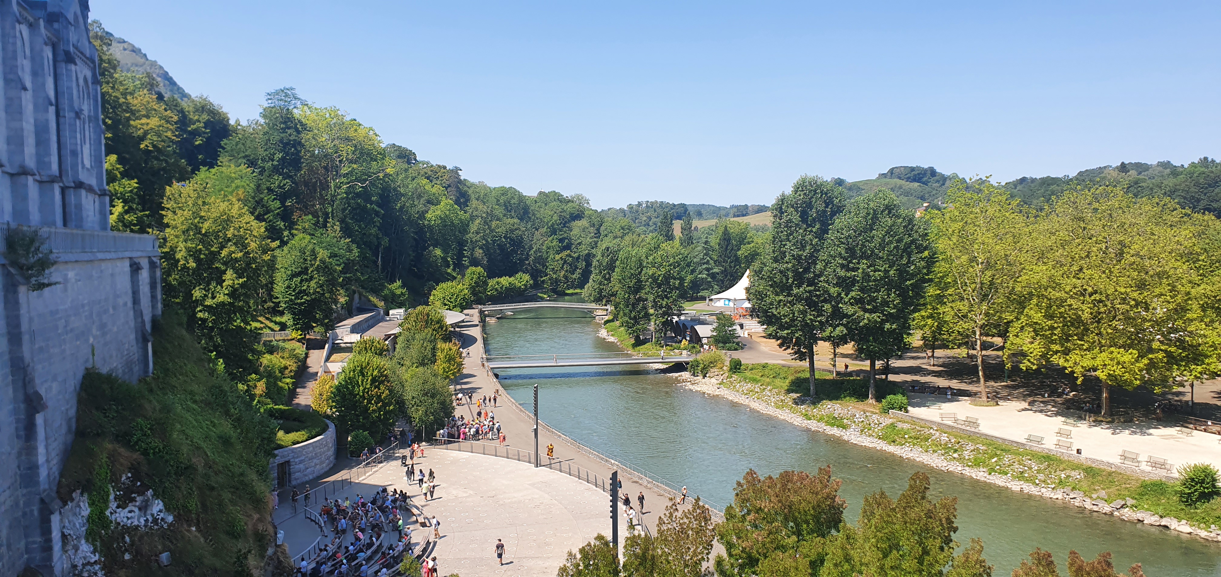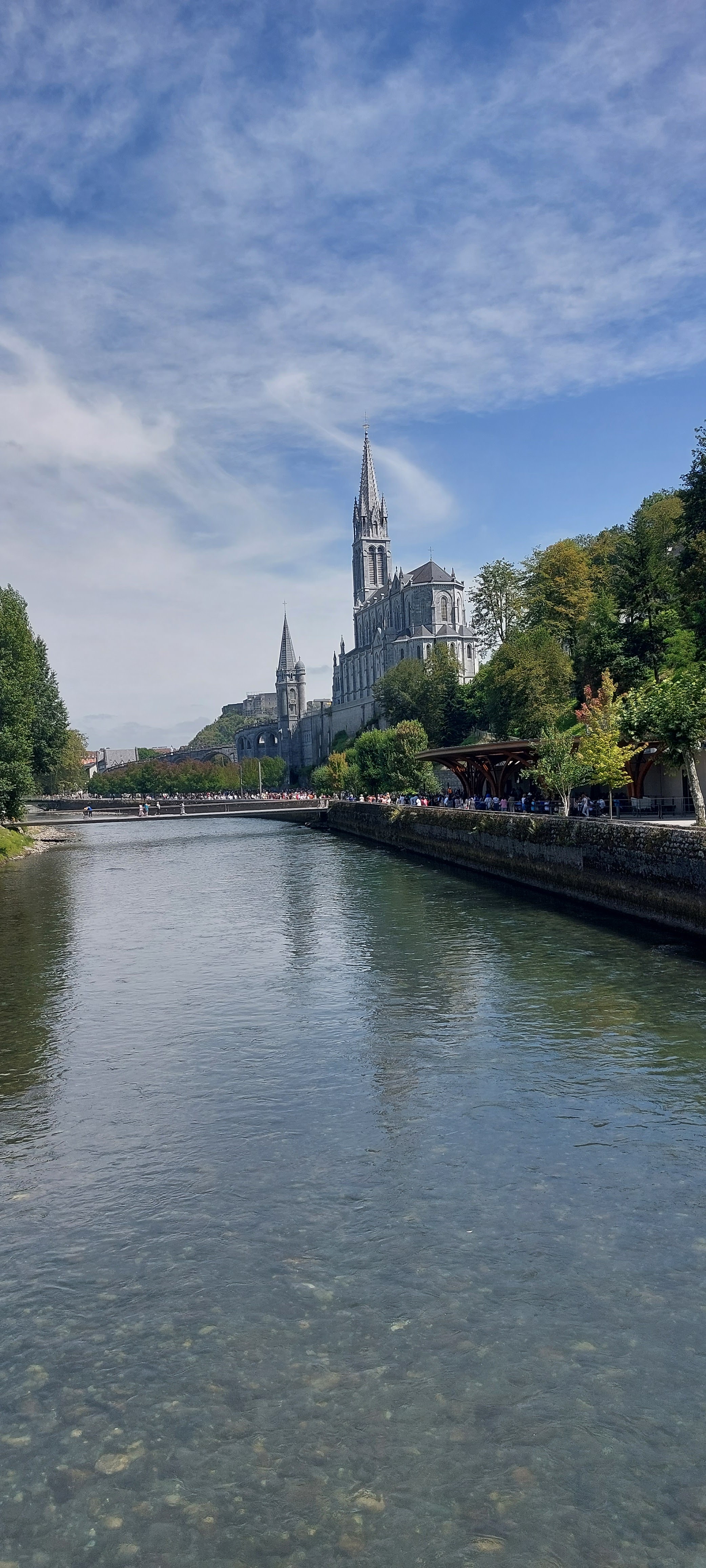 Tres beau et immense .... lieu sacré pour la priere .... juste apres vous avez la grotte de Massabielle dans laquelle il y a toujours des messes .... faut visiter .... de part et d'autre de la grotte il y a les robinets d'eau sacree et juste apres il y a les puscines ou vous descendez entierement dans l'eau sacrée ... celui qui part a Lourdes et ne descend pas entierement dans l'eau sacrée, il n'a rien fait .... faut attendre un peu, faire la baignade, remplir de l'eau sacrée et bien sur participer aux messes , il y en a jusqu'apres minuit .... j'espere avoir aidé .... meilleures salutations ....