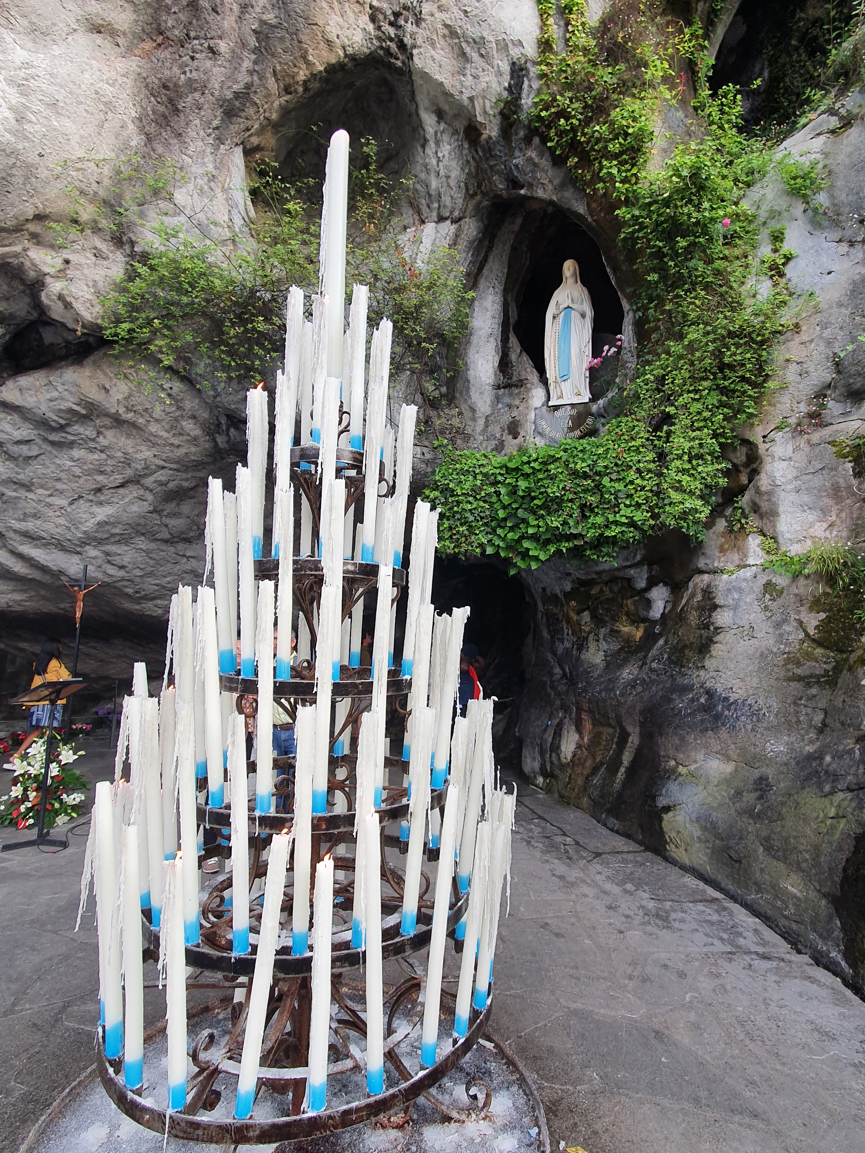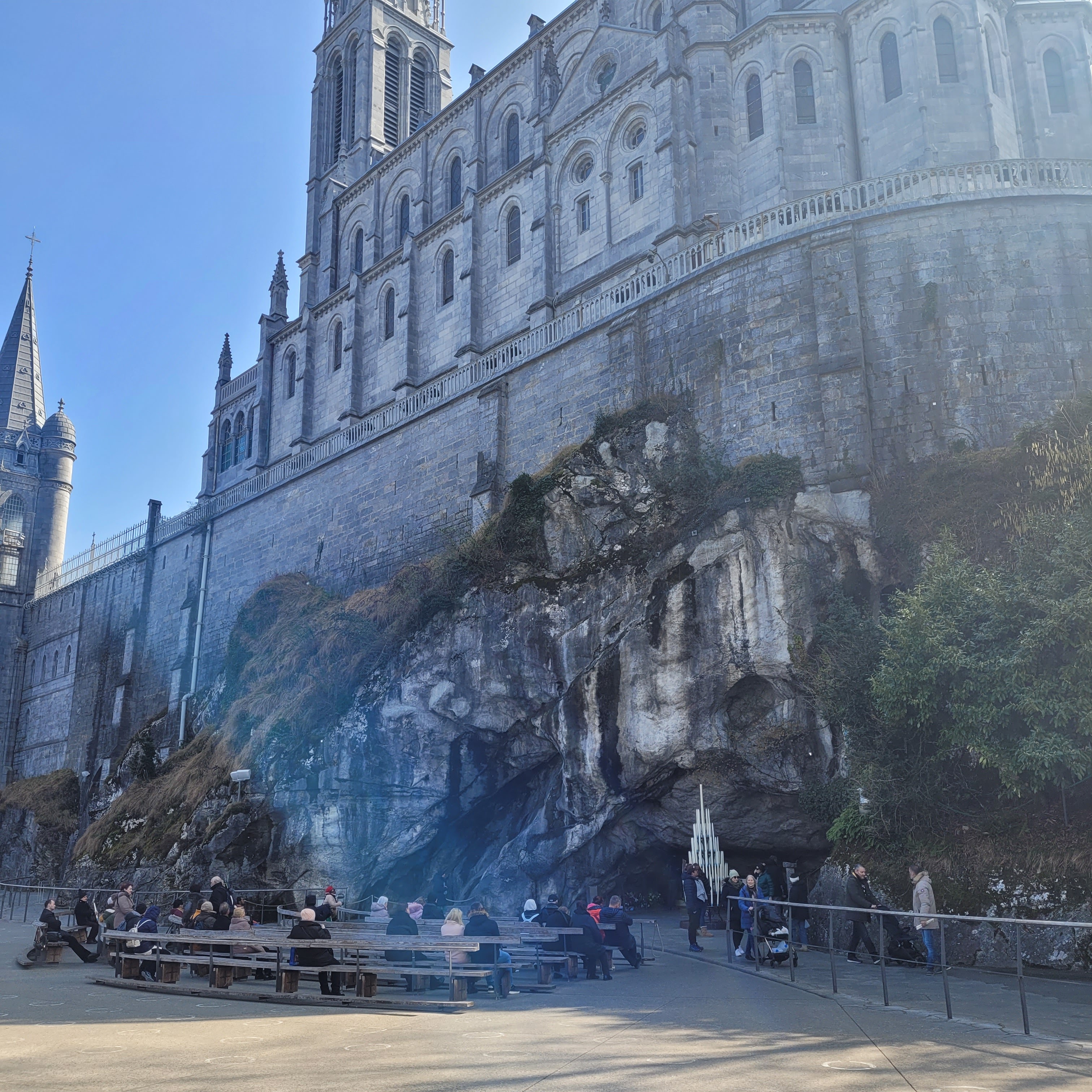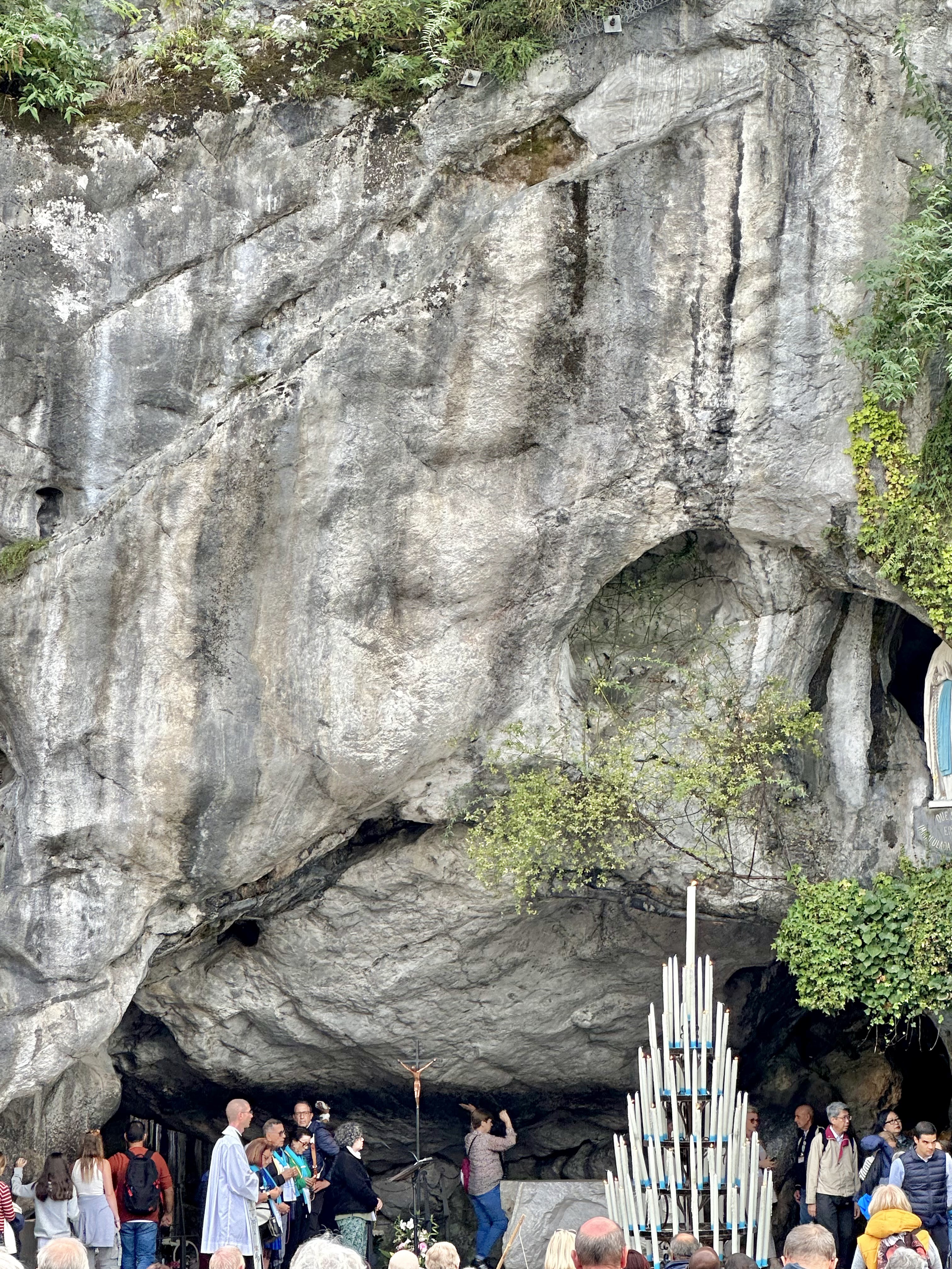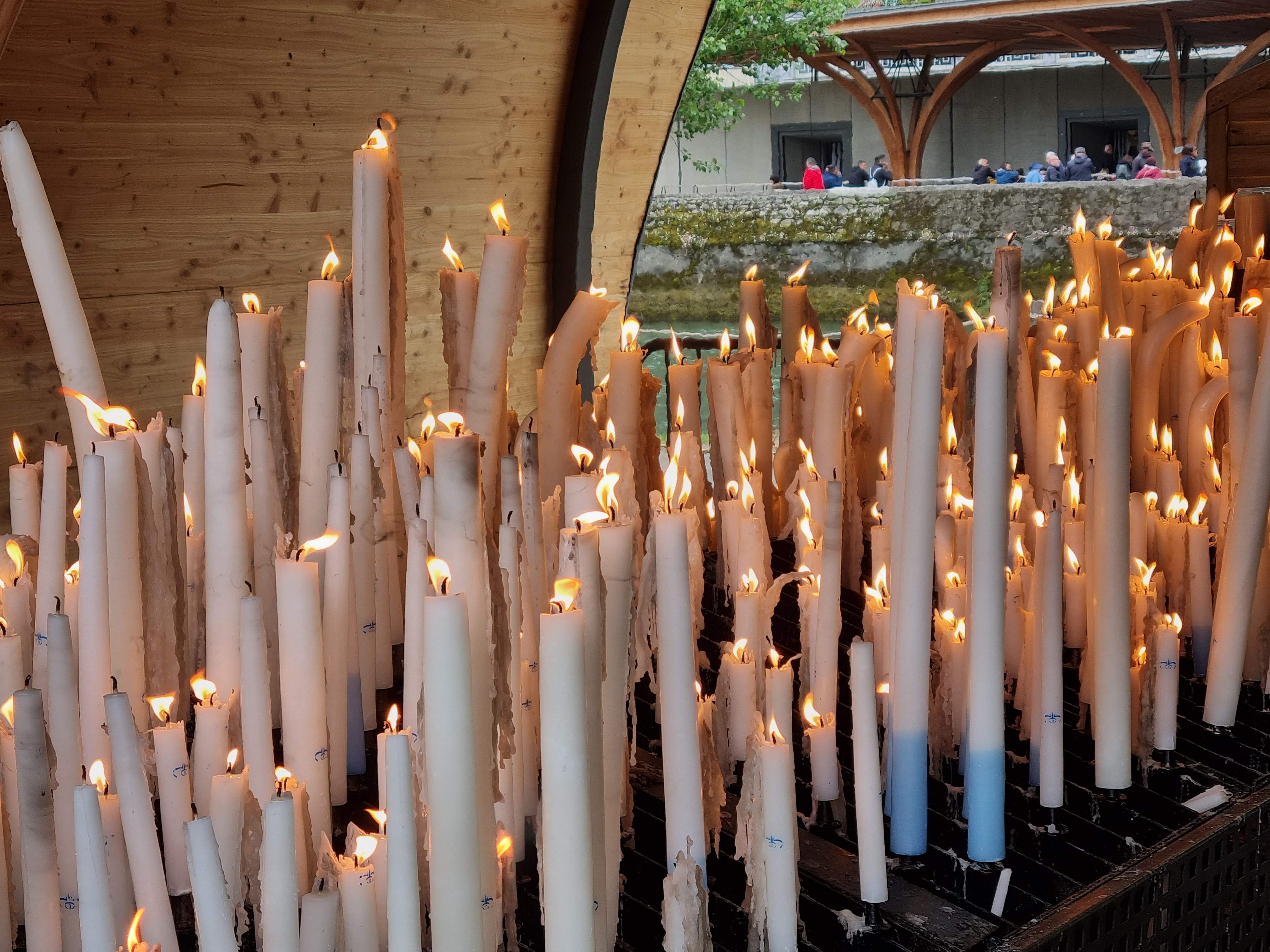 J'habite à 15 minutes et pourtant je n'y étais pas retournée depuis mon enfance. Le lieu est apaisant malgré le monde et qu'on soit chrétien ou pas. L'espace pour déposer un cierge est un peu abrité mais les flammes vacillent facilement en cas de vent. Pas sûr que notre cierge reste allumé jusqu'au bout. Dommage que certains y voient plus l'aspect touristique et visitent comme un musée, sans vraiment regarder ou respecter le silence, sans faire attention aux autres.