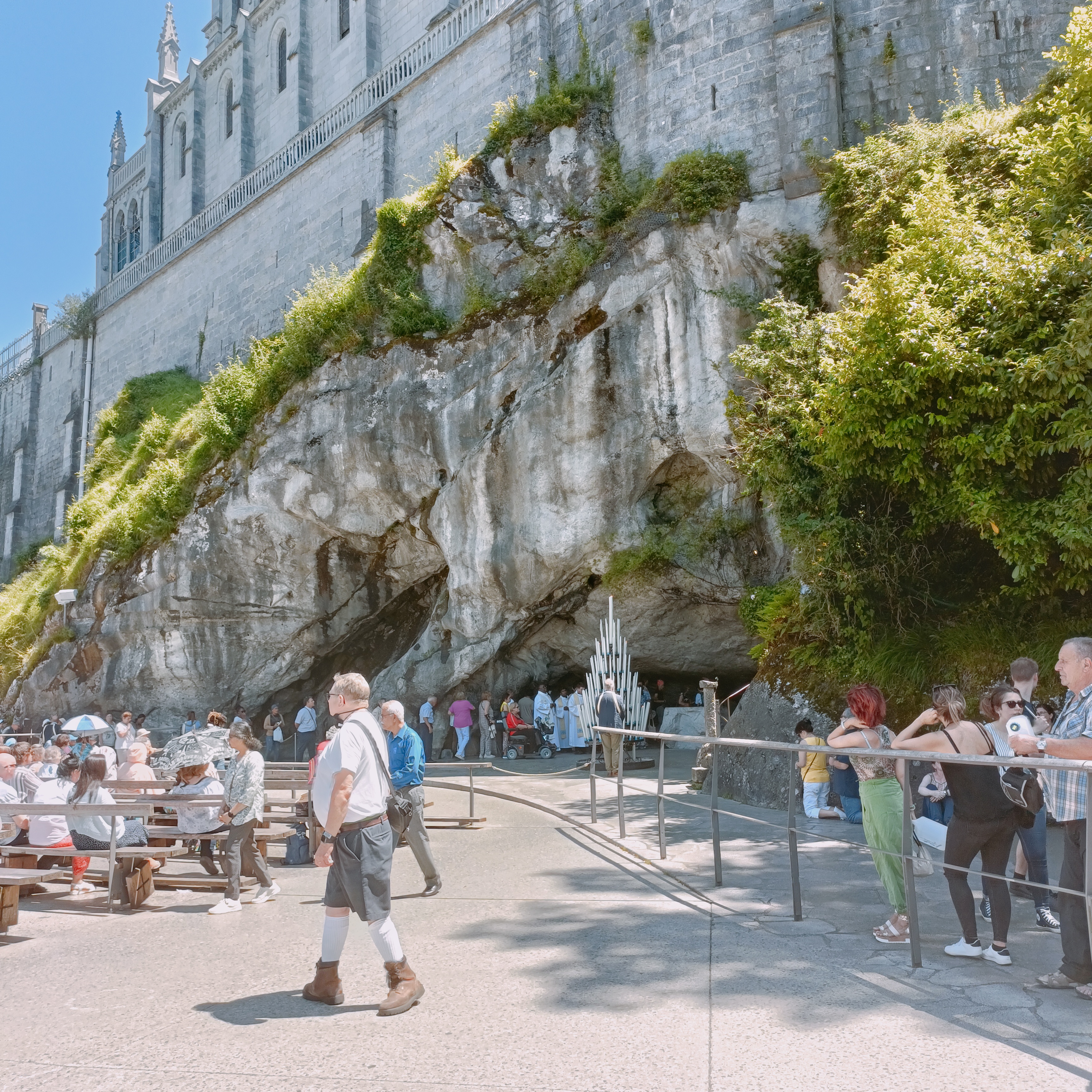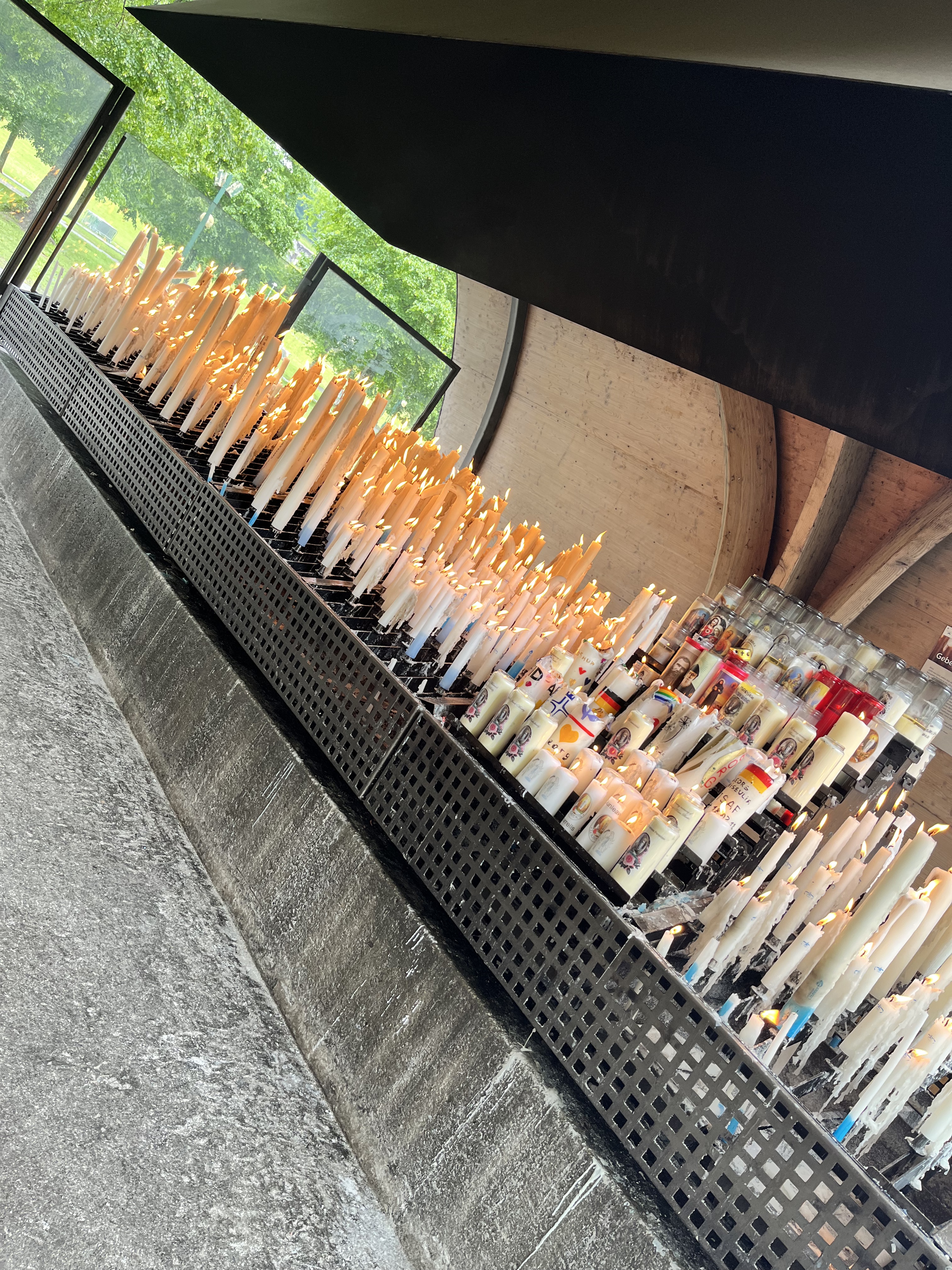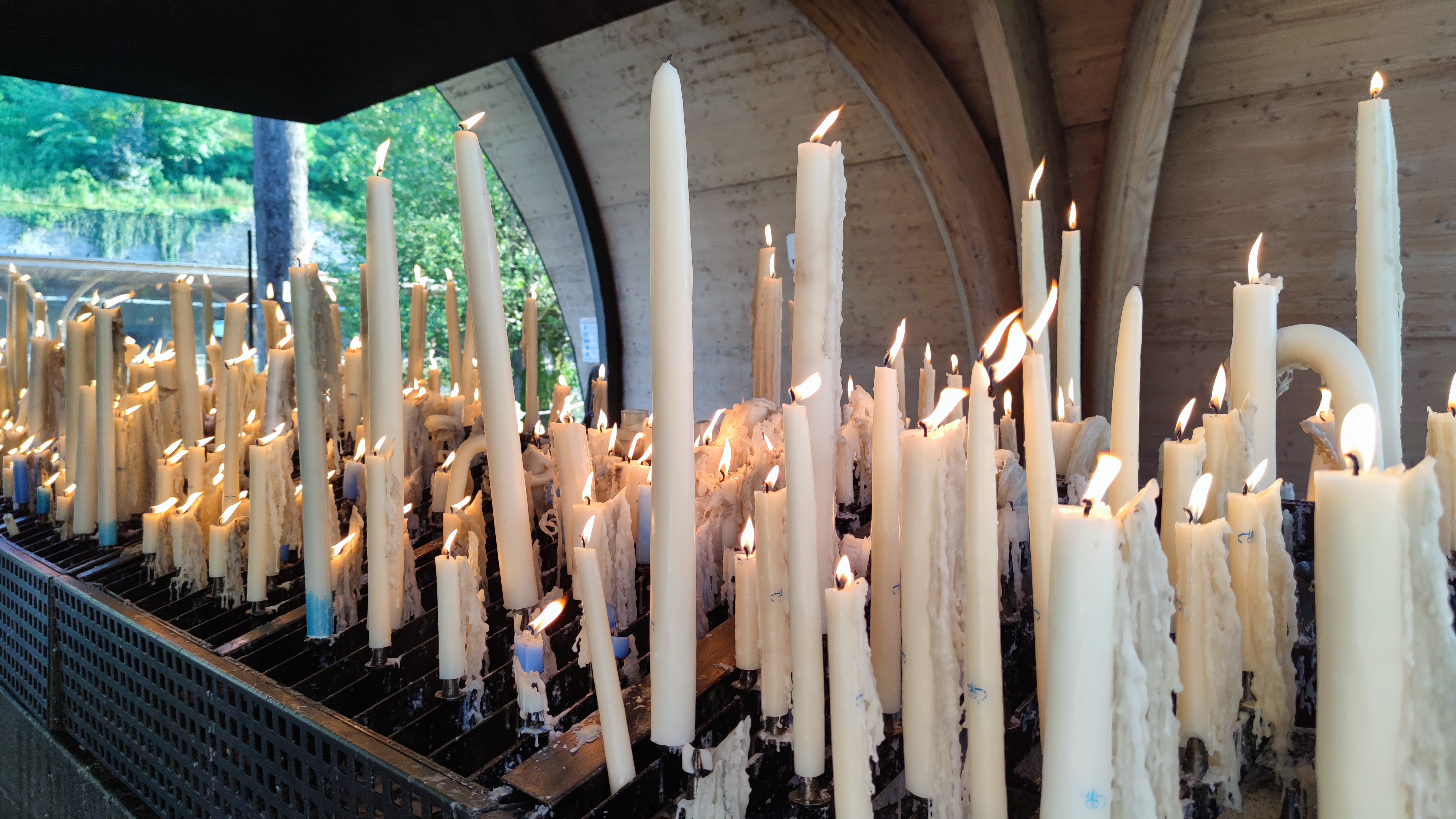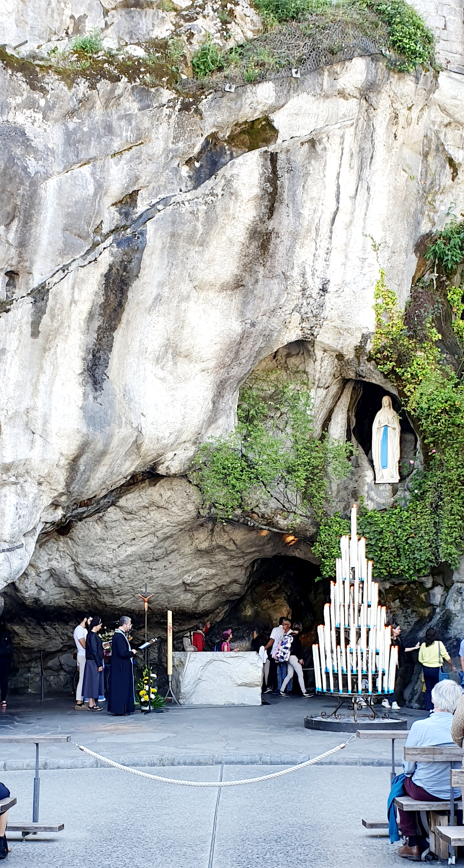 J'habite à 15 minutes et pourtant je n'y étais pas retournée depuis mon enfance. Le lieu est apaisant malgré le monde et qu'on soit chrétien ou pas. L'espace pour déposer un cierge est un peu abrité mais les flammes vacillent facilement en cas de vent. Pas sûr que notre cierge reste allumé jusqu'au bout. Dommage que certains y voient plus l'aspect touristique et visitent comme un musée, sans vraiment regarder ou respecter le silence, sans faire attention aux autres.