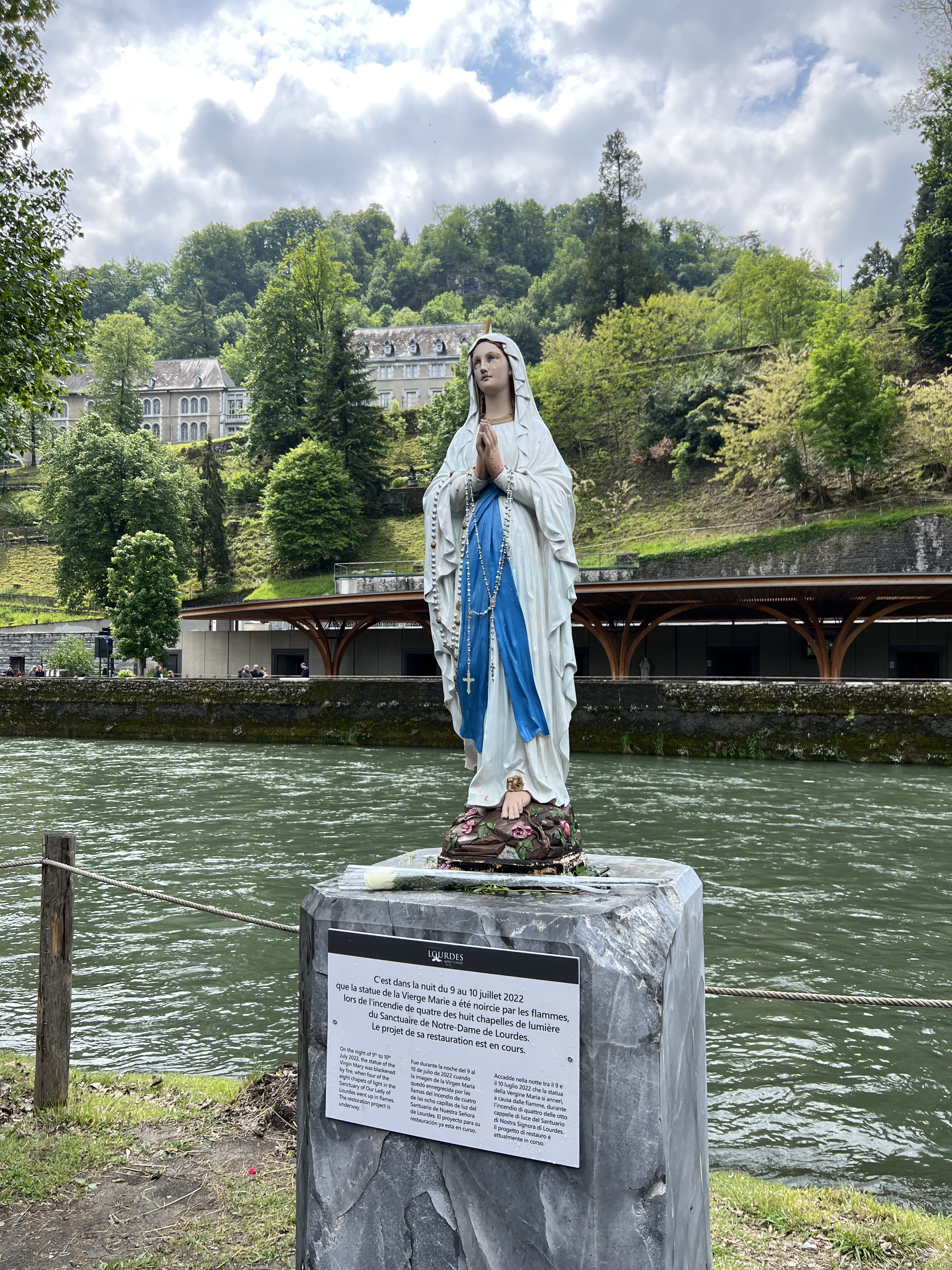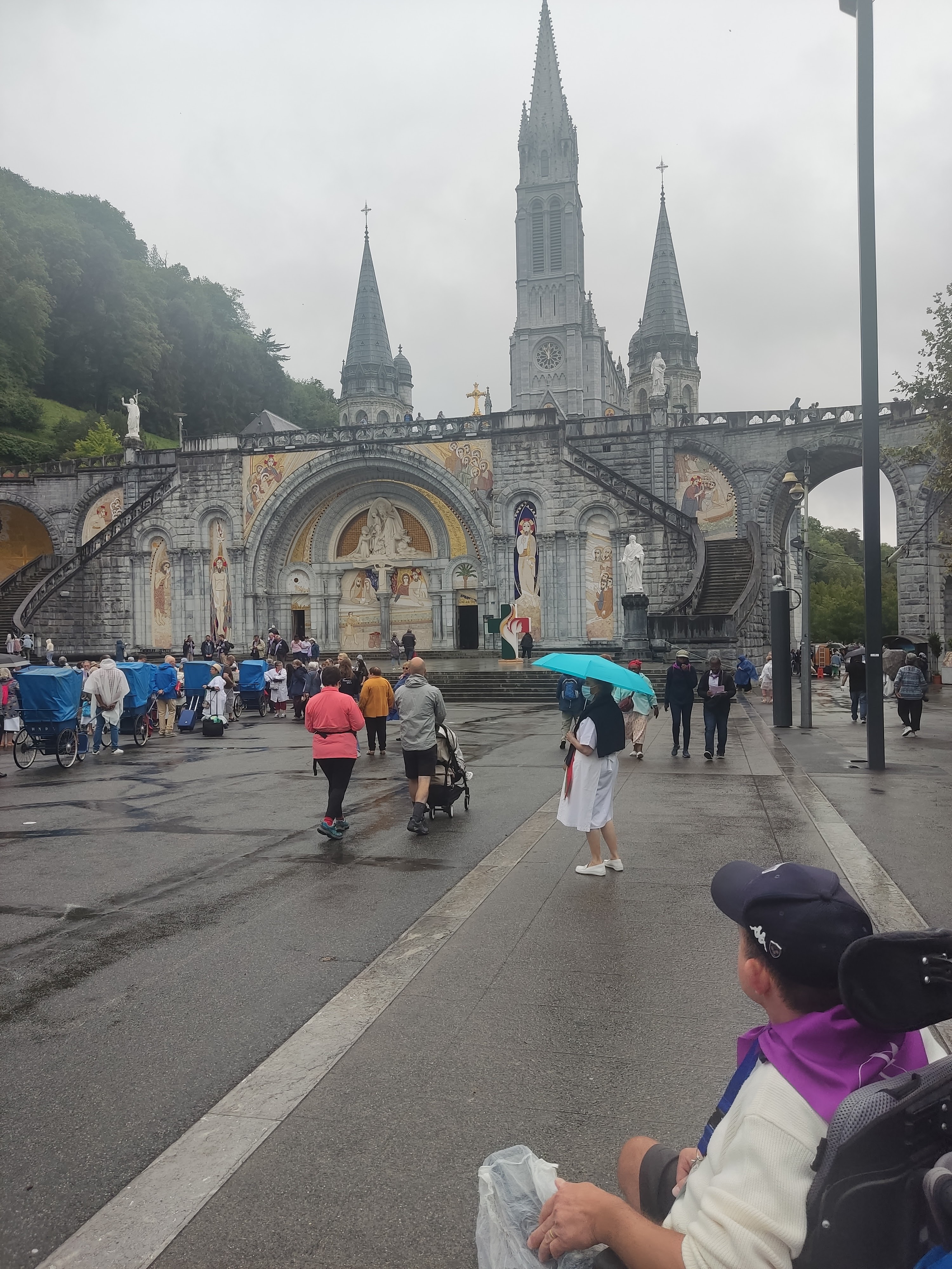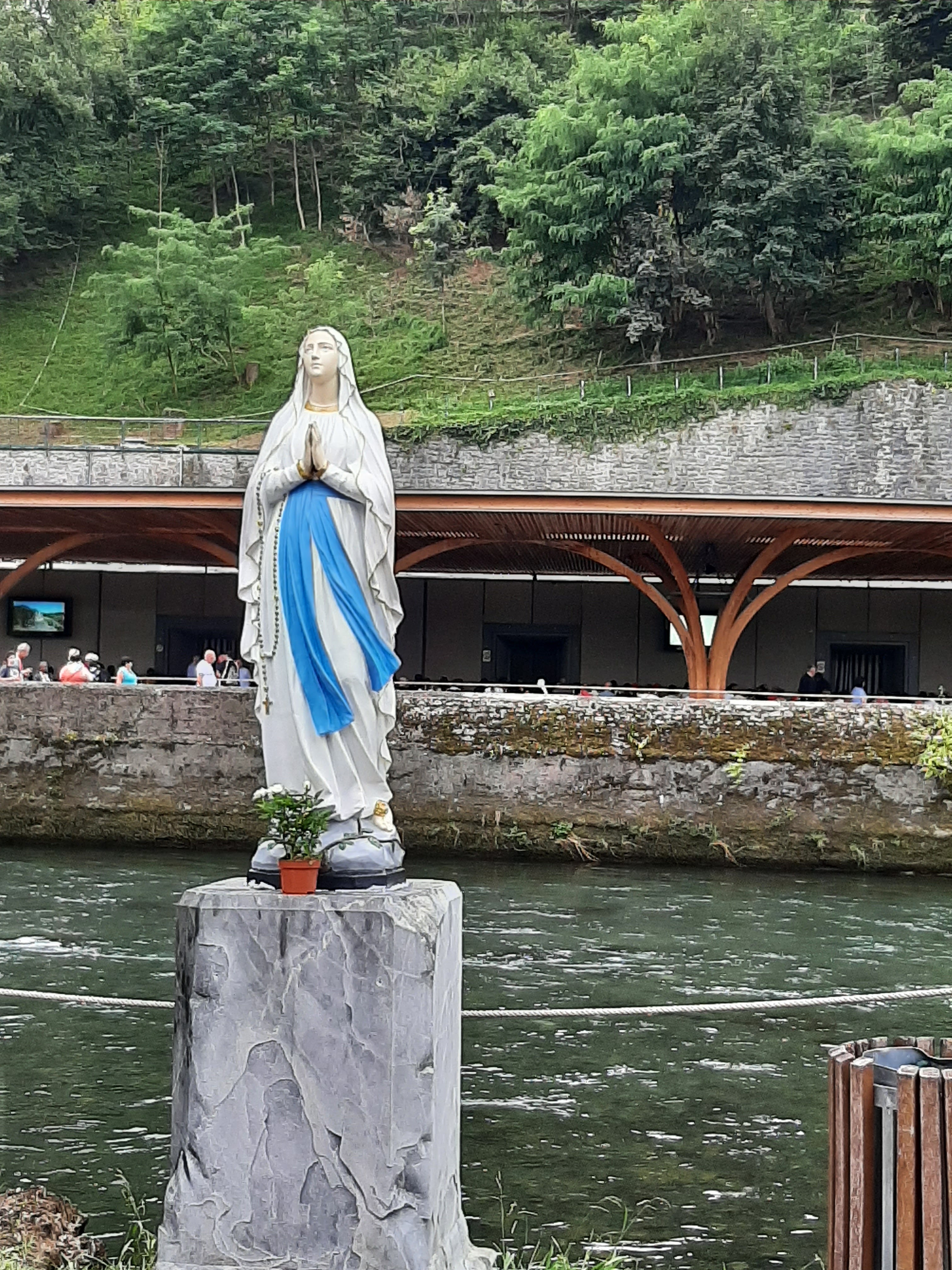 Ayant été en tant que bénévole à la Cité St Pierre pour 18 jours, j'ai été plusieurs fois au sanctuaire. Avec tous les temps (pluie, couvert et soleil) C'est un lieu apaisant c est tellement grand. Plusieurs lieux de cultes, tous différents. Il n y a que la piscine où l' on ne peut plus se tremper entièrement. Suite au COVID le rituel est différent, on vous verse de l'eau sur les mains pour les laver, puis de l'eau pour laver notre visage et on termine par boire l'eau dans nos mains.