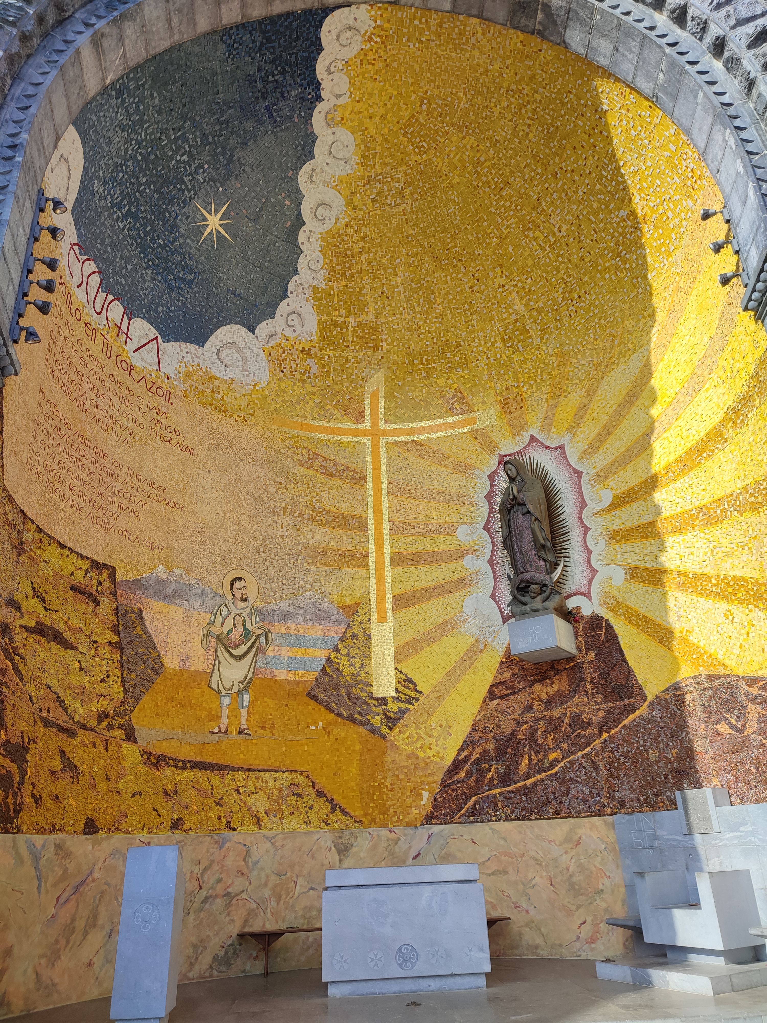 Belle vue. N'oubliez pas d'installer l'église souterraine ! De plus, prendre les remontées mécaniques jusqu'aux montagnes en vaut la peine. Nous avons eu la chance d'accéder au pèlerinage du Rosaire