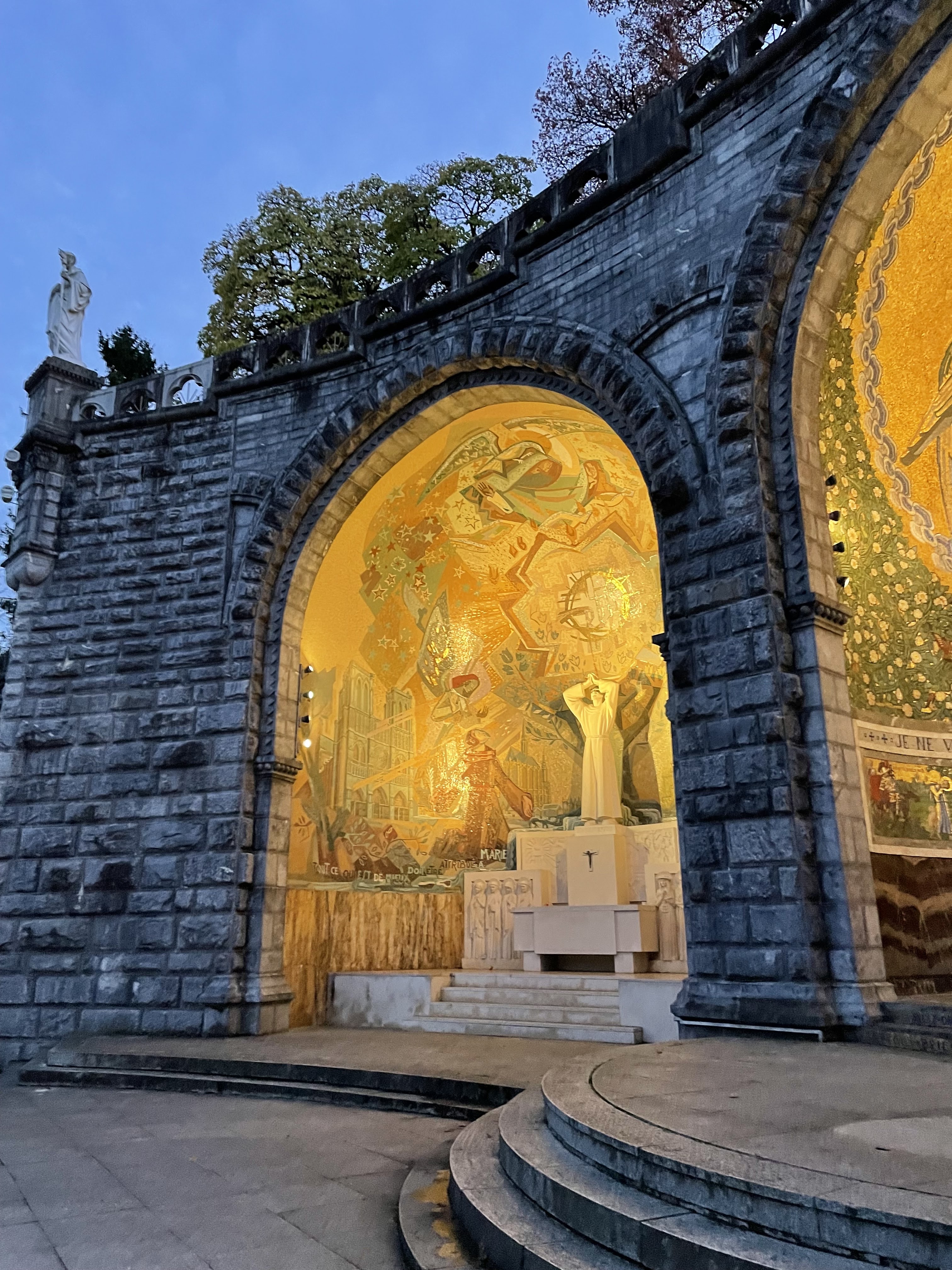 Très beau lieu, ⚠️petits changements non dits : le santuaire ferme a 22h30 et les fontaines ne sont ouvertes uniquement qu a droite du 1er pont (toutes celles a côté de la grotte sont fermées)