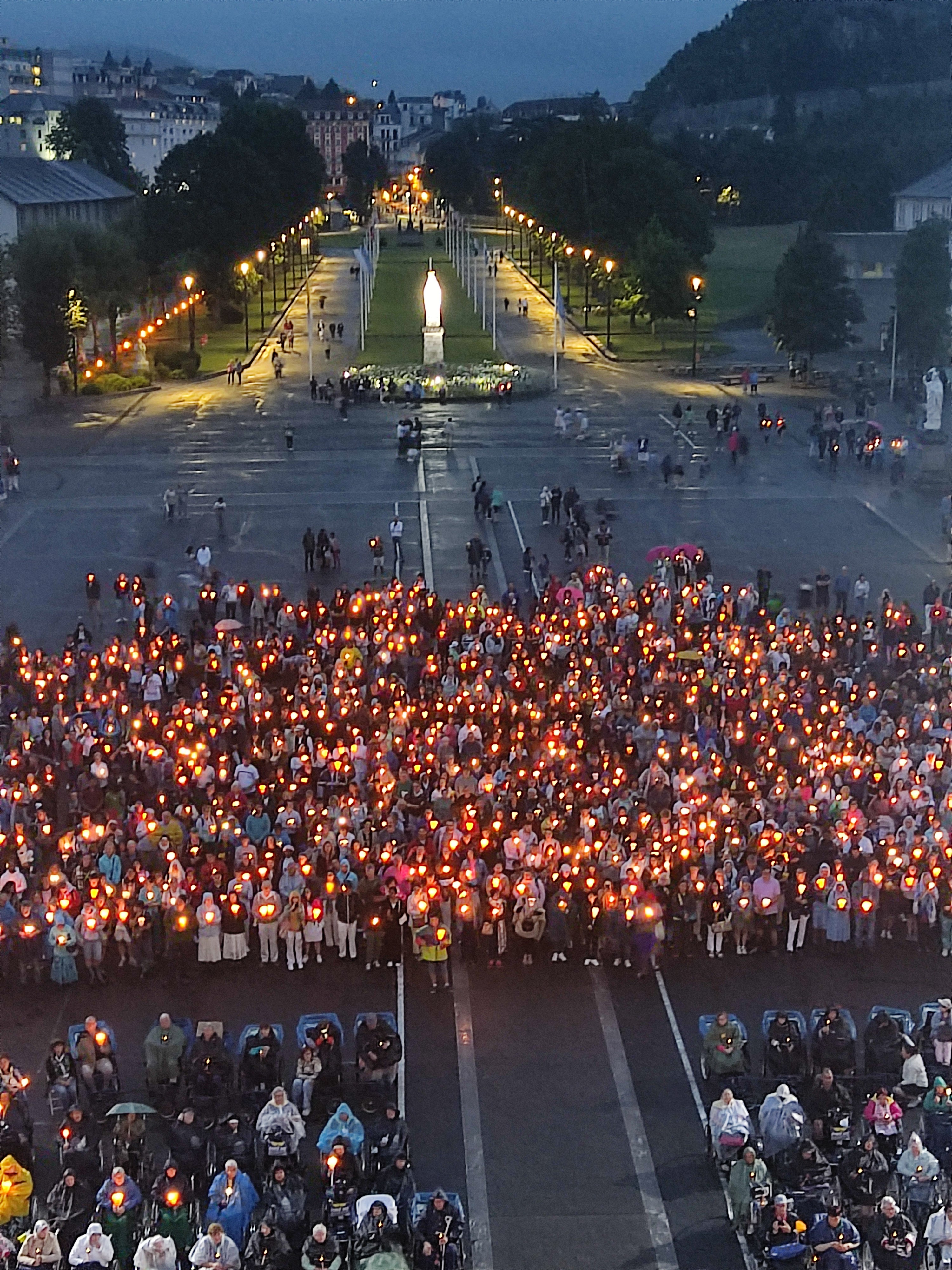 J'admire les personnes venant de loin, de tous les horizons pour prier notre Dame, très beau à voir, magnifique,