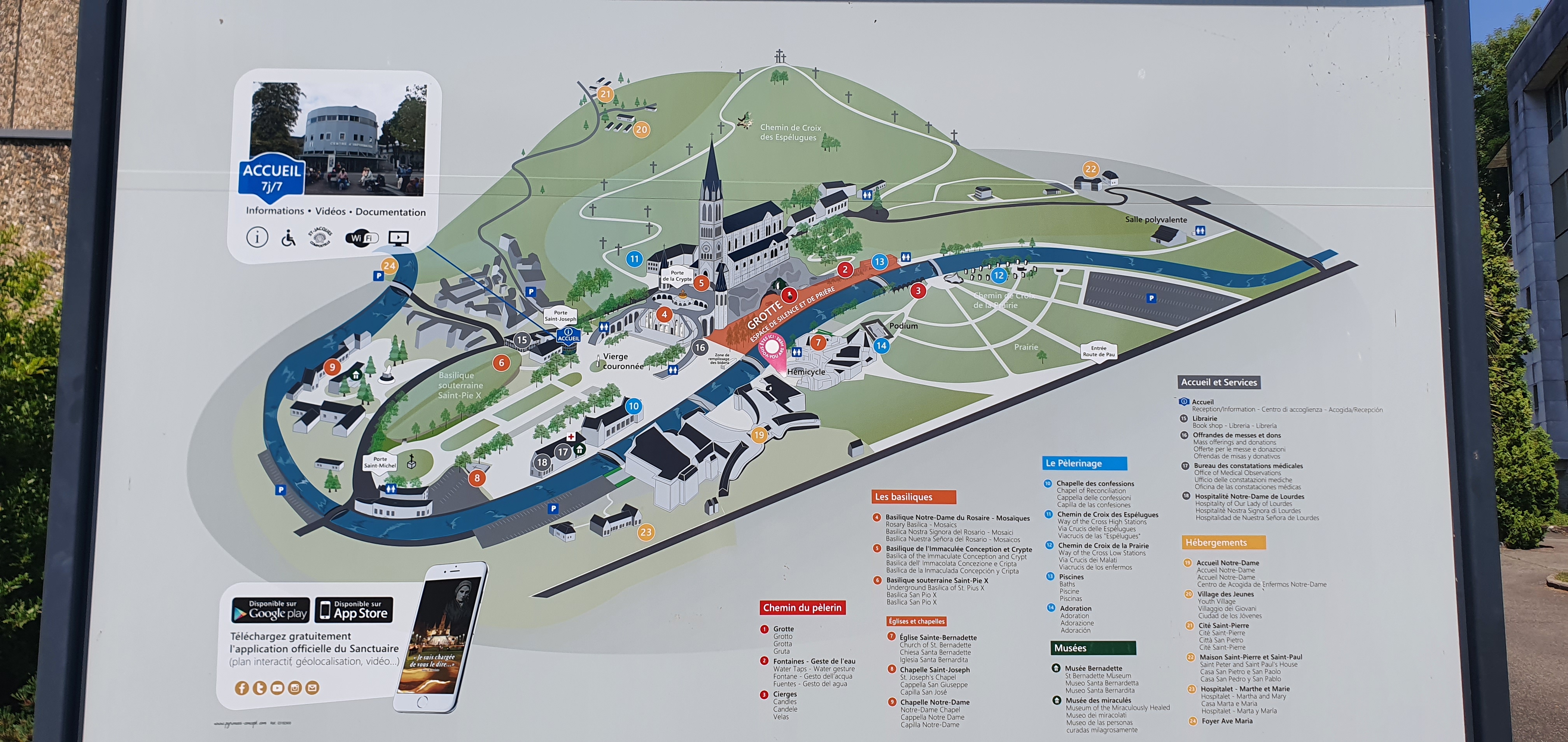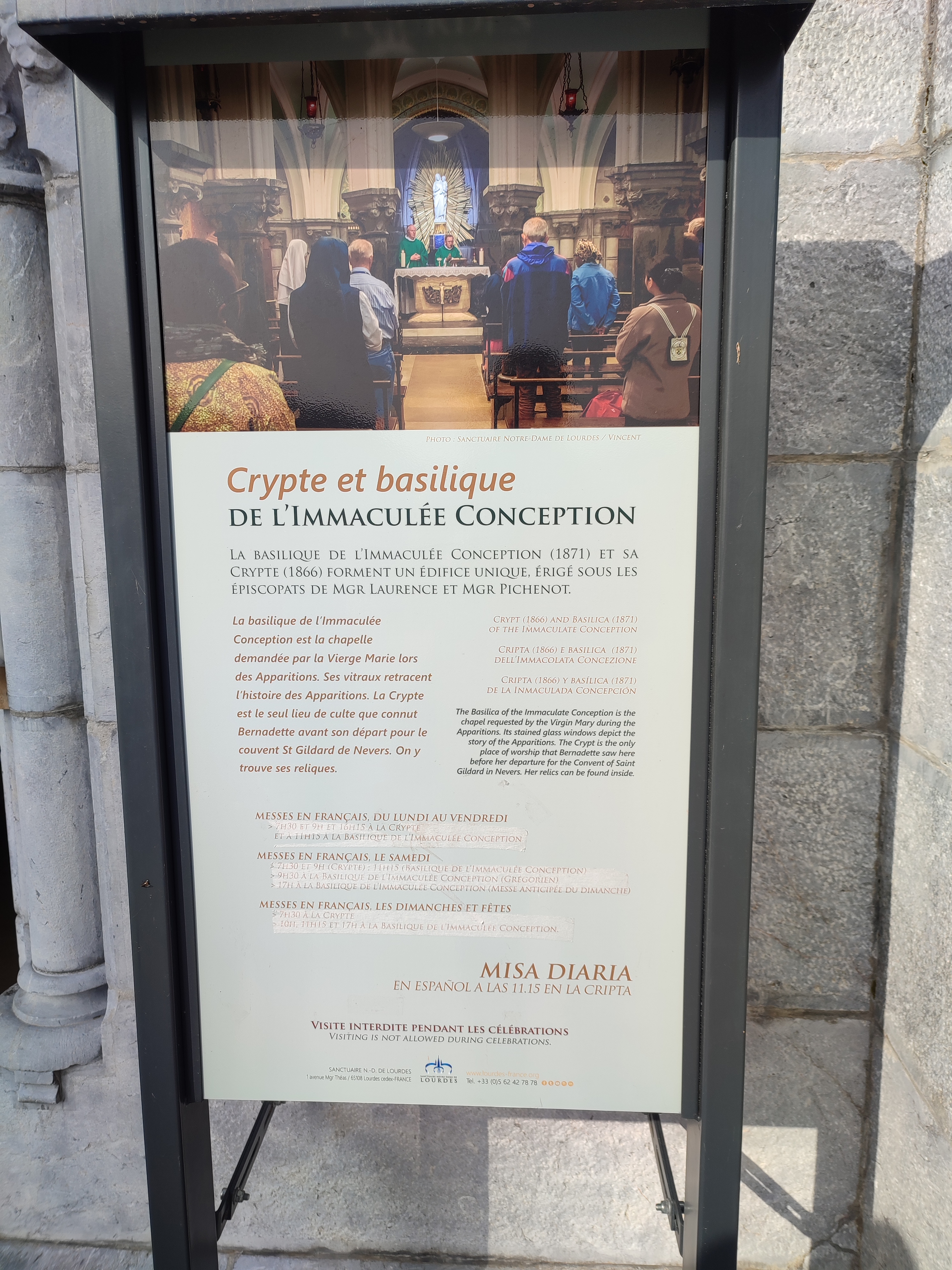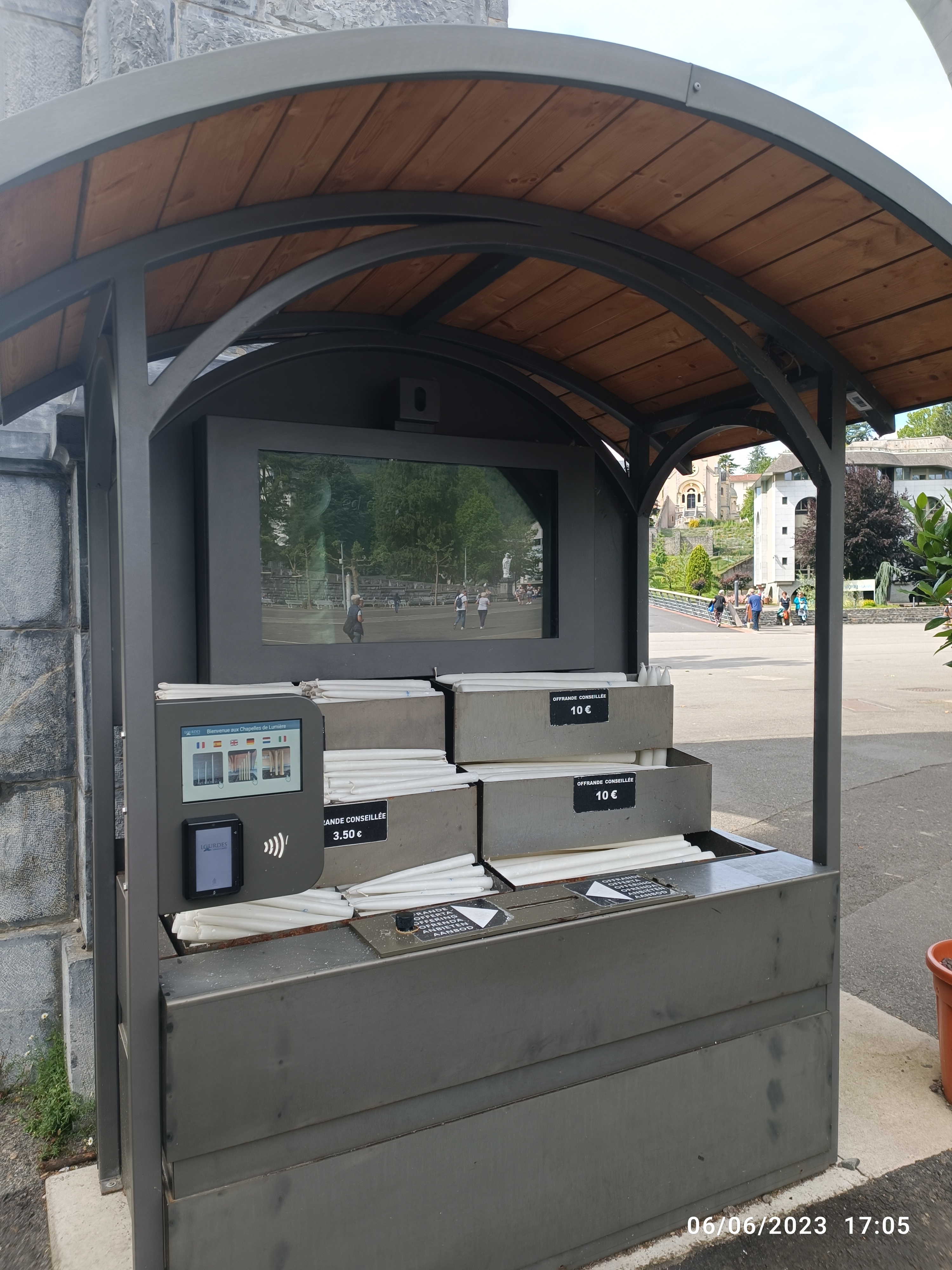 Beau site . Paiement sans contact régulièrement proposé mais pas à tous les endroits : prévoyez de la monnaie . Les bougies sont à 3€ . Une application disponible sur les stores permet de préparer votre visite : ND de Lourdes .