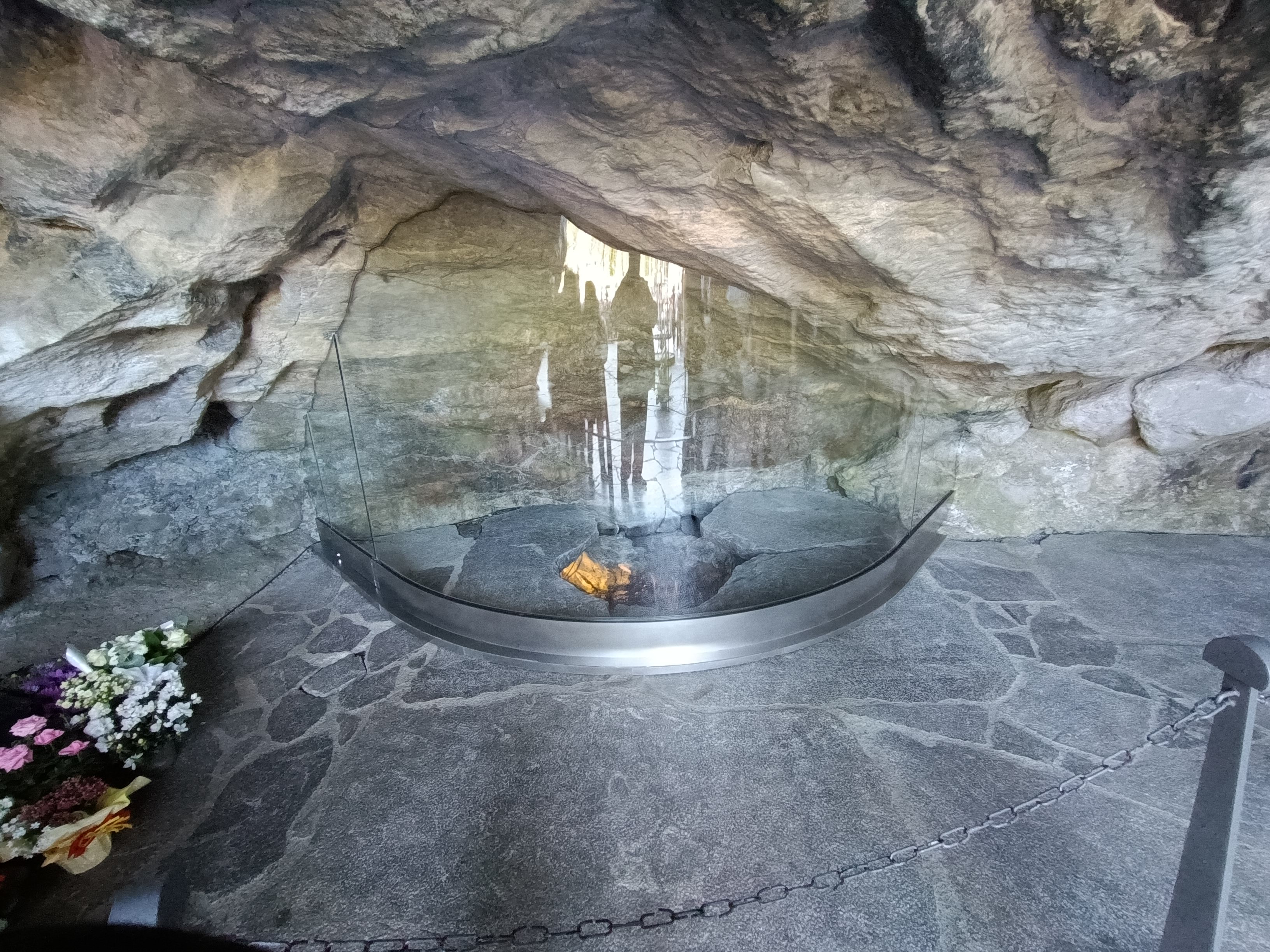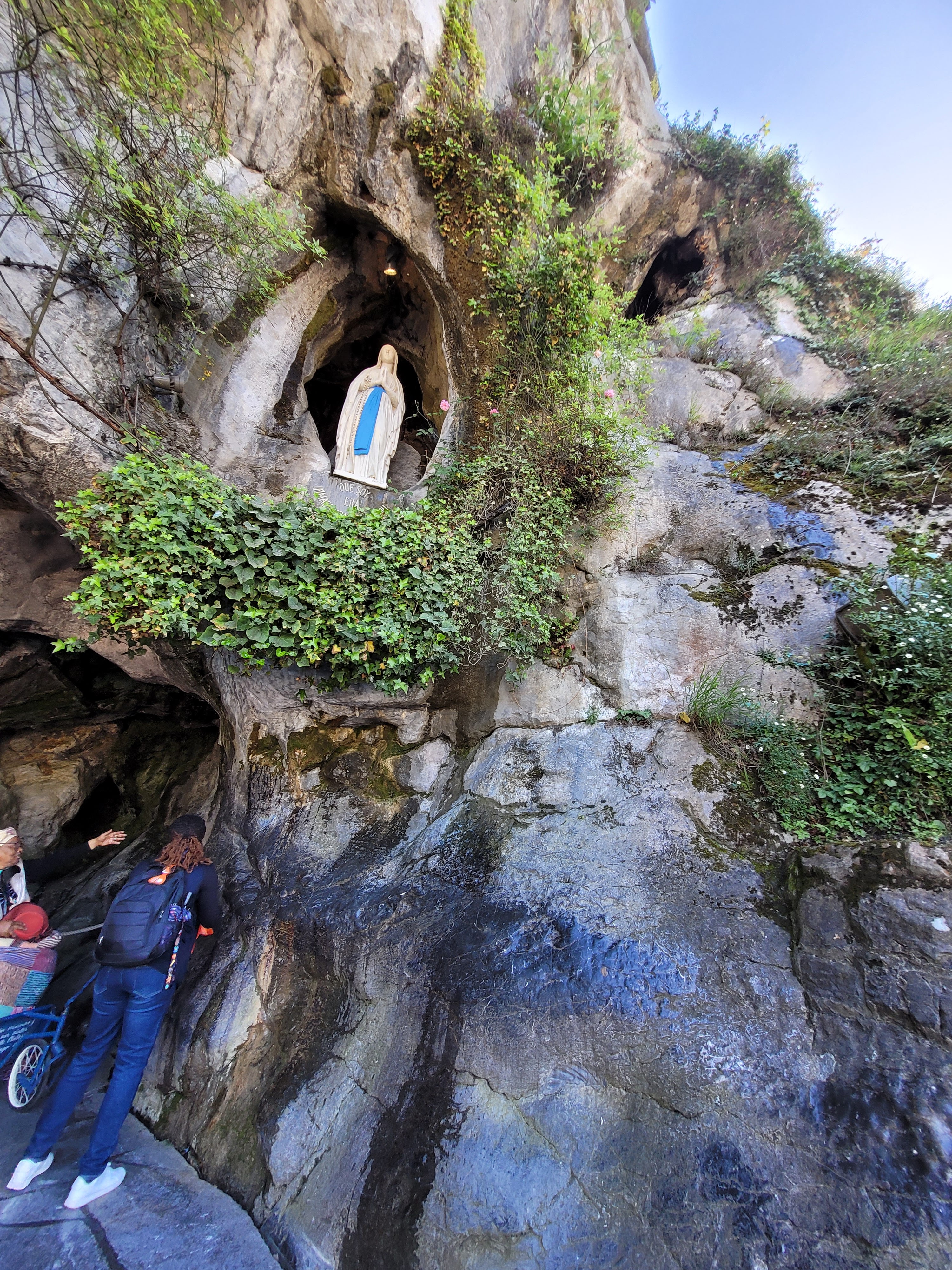 Vous ne pouvez pas passer avec votre chien, mais vous avez un endroit où attendre si vous voulez visiter à tour de rôle. Croyant ou pas croyant, c'est à voir... C'est magnifique mais beaucoup de monde dans ce sanctuaire. Allez-y de préférence le matin, notamment si vous voulez entrer dans la grotte où la queue peut être très longue.