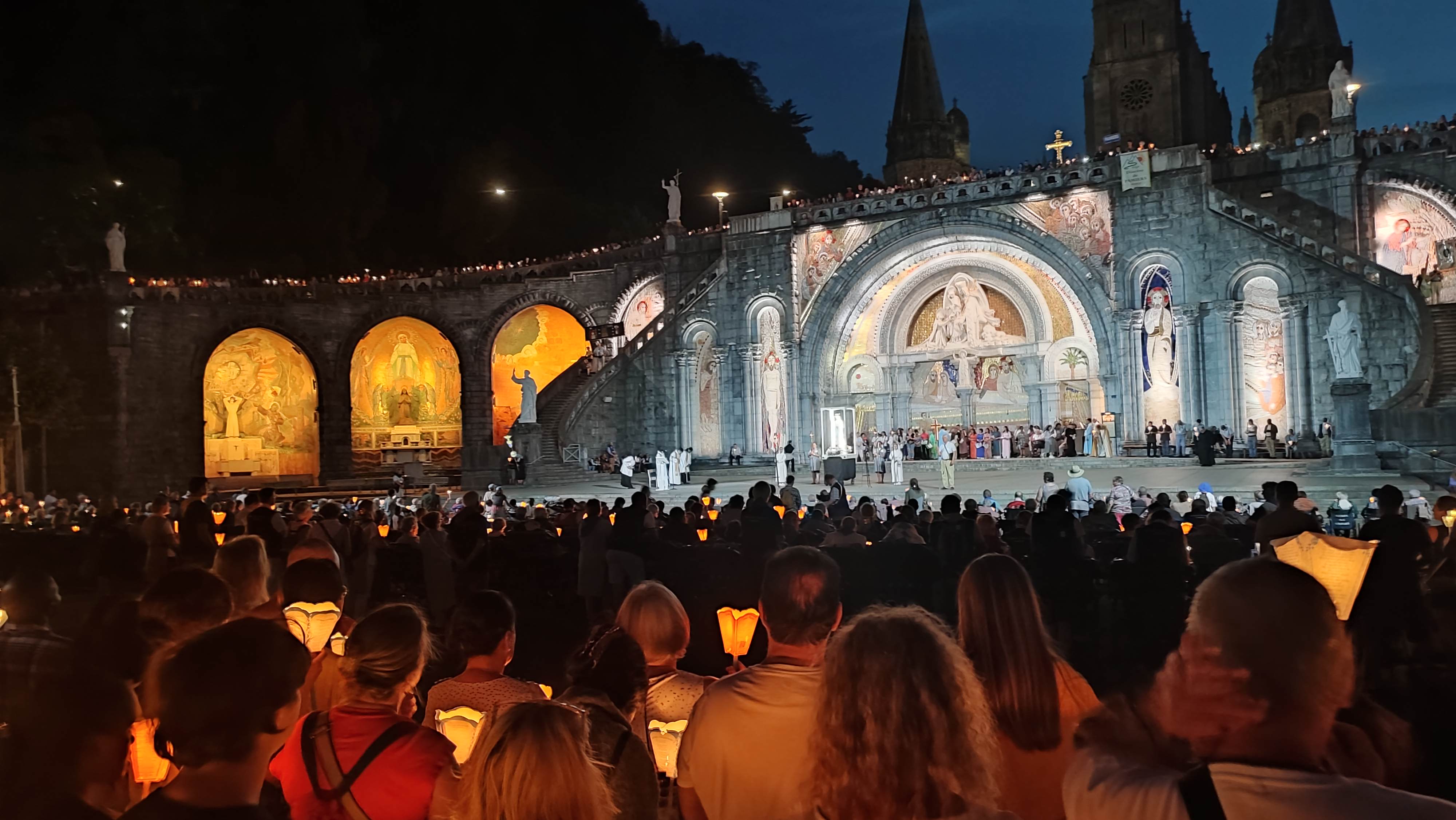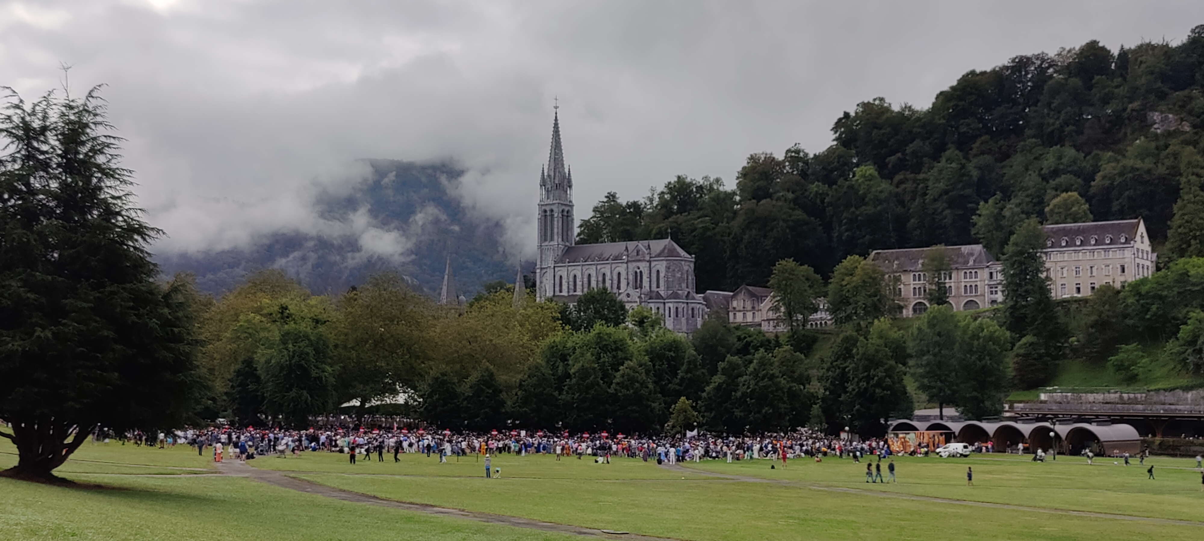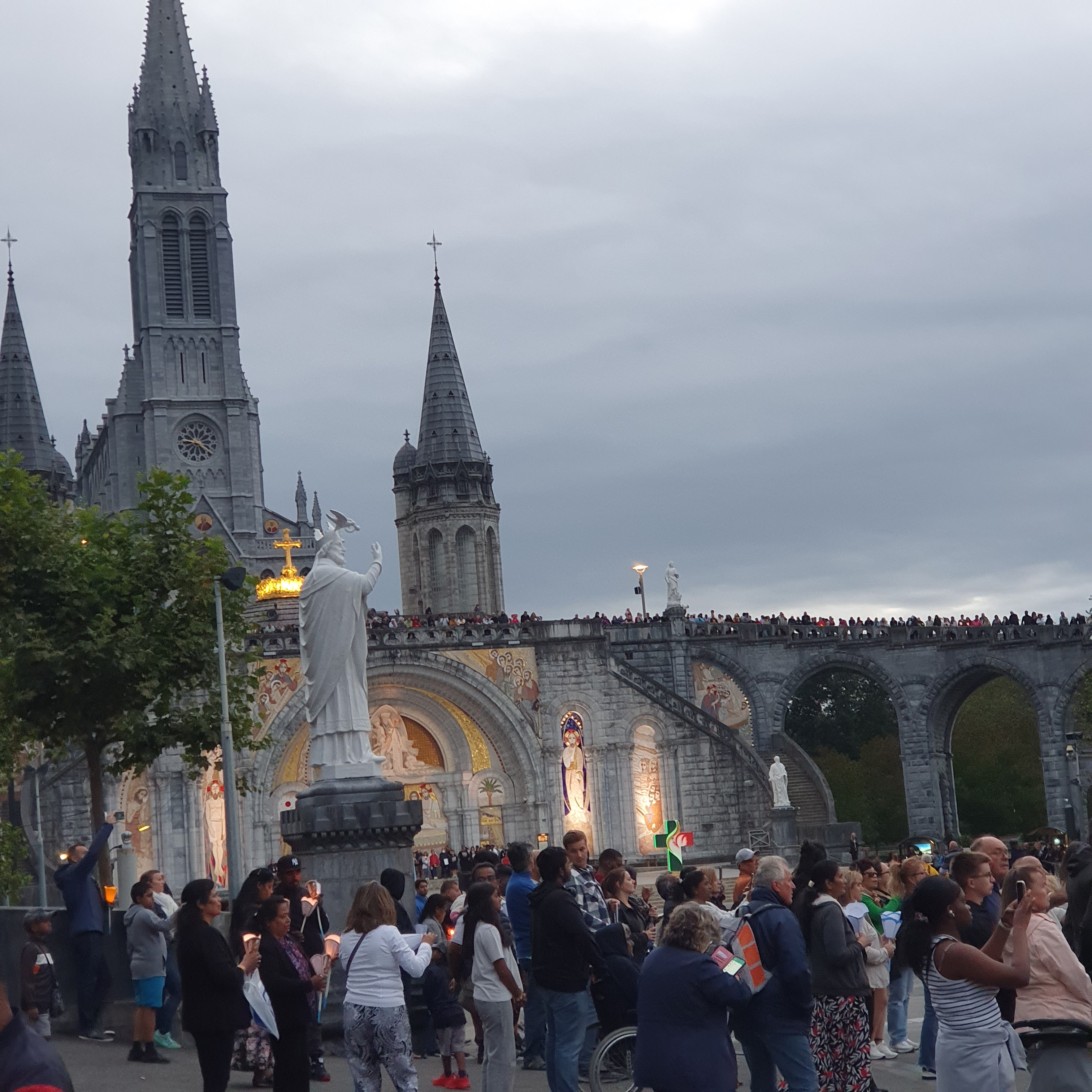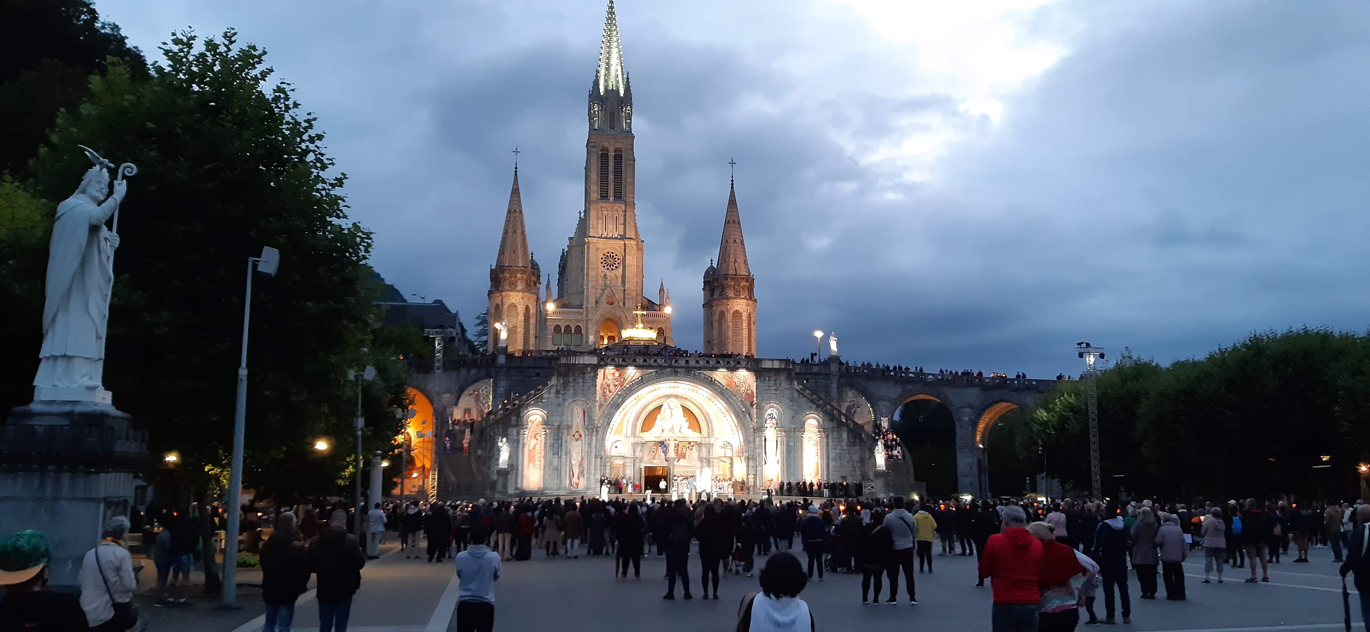 Sanctuaire notre dame de Lourdes visité lors d'un séjour à Lourdes impressionnant lors d'une procession le sanctuaire est gratuit