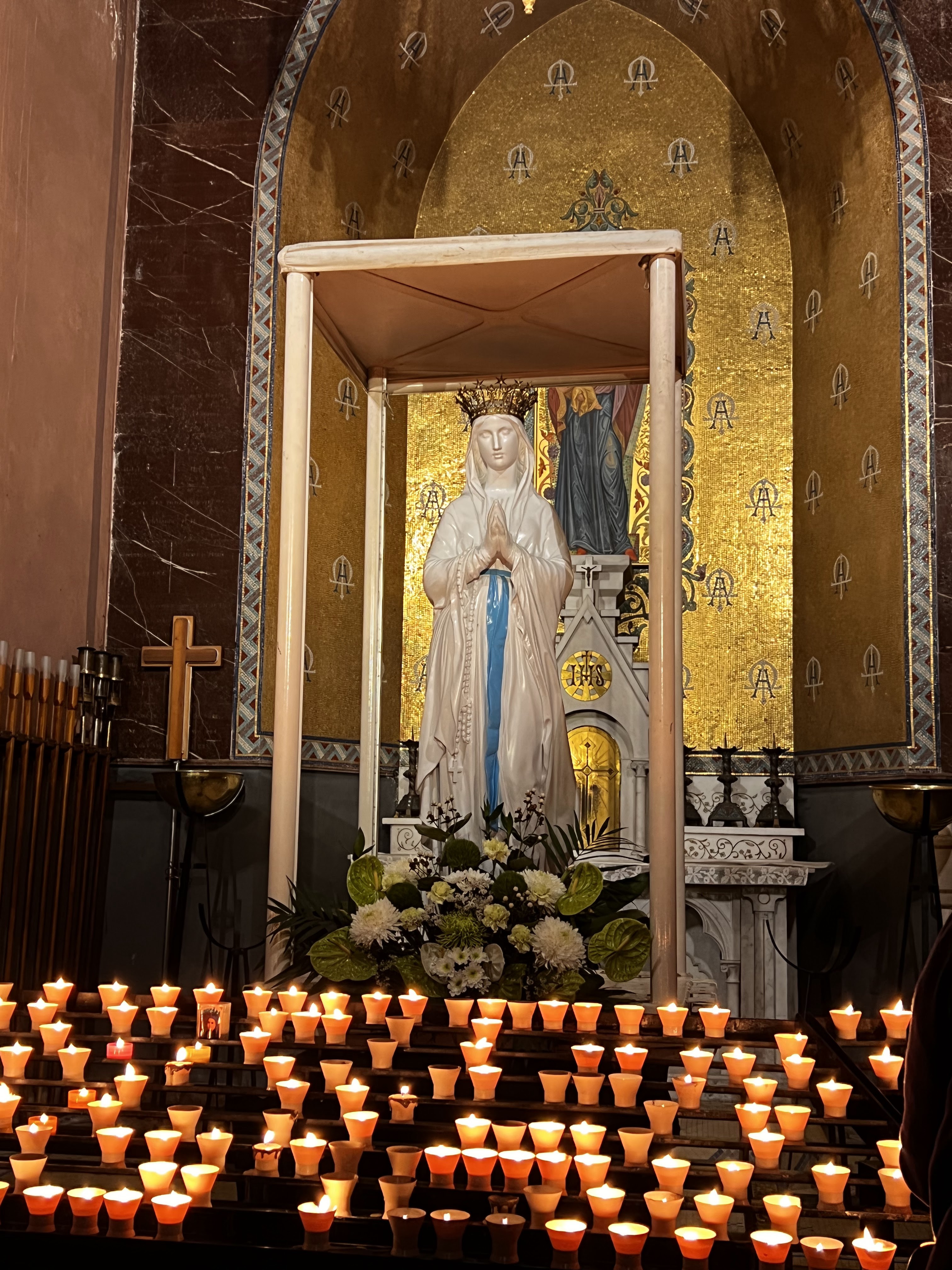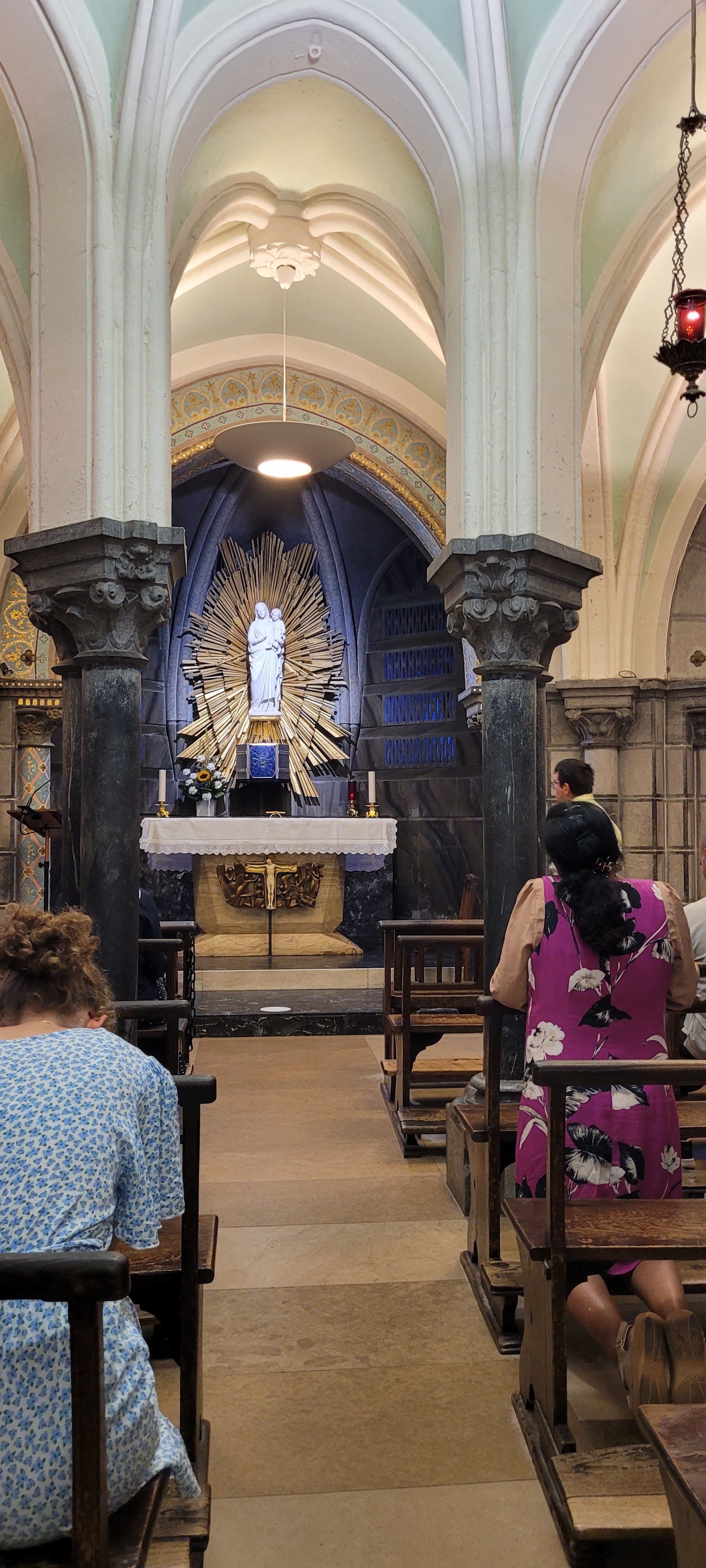 Recueillement prières entre catholiques du monde entier Lumière force et sérénité Beaucoup de monde pour mi octobre Les croyants sont bien là. Gratuit Venir à pied sinon possibilité de se garer avec horodateurs