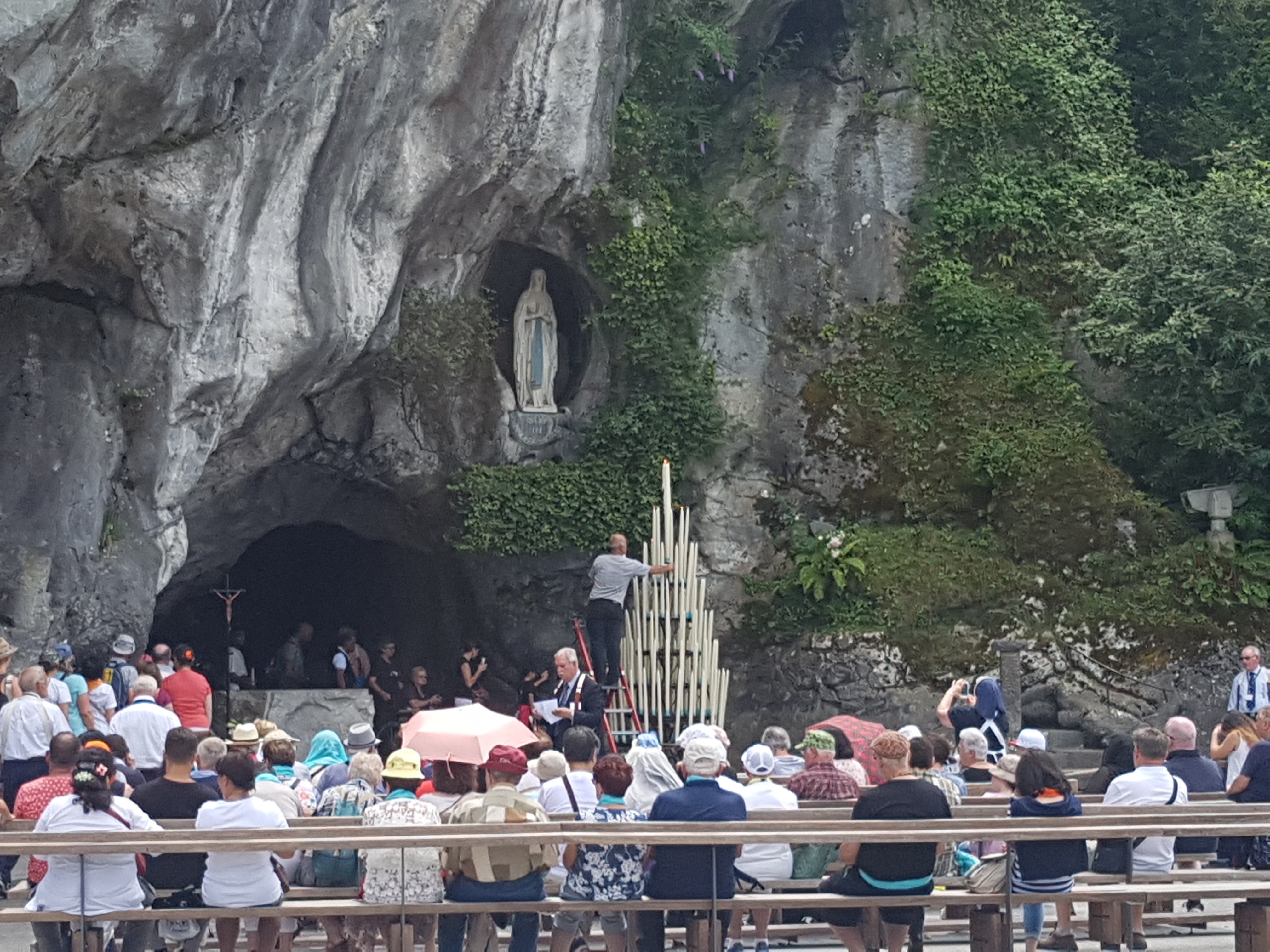 Énormément d'émotions de recueillement. On ressort de la grotte de Lourdes apaisé...croyants ou non croyants,on est tous envahis par un sentiment de bonté envers son prochain. Malheureusement l'actualité nous ramène très vite à une dure réalité