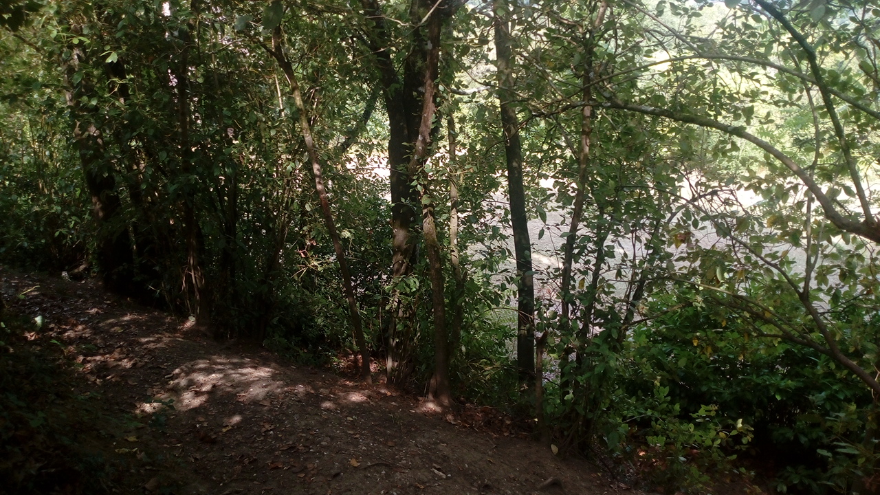 Je suis passé devant quand un chien marron et blanc est venu en grognant sur mon petit chien et moi. Tenez votre chien ça évitera des drames.