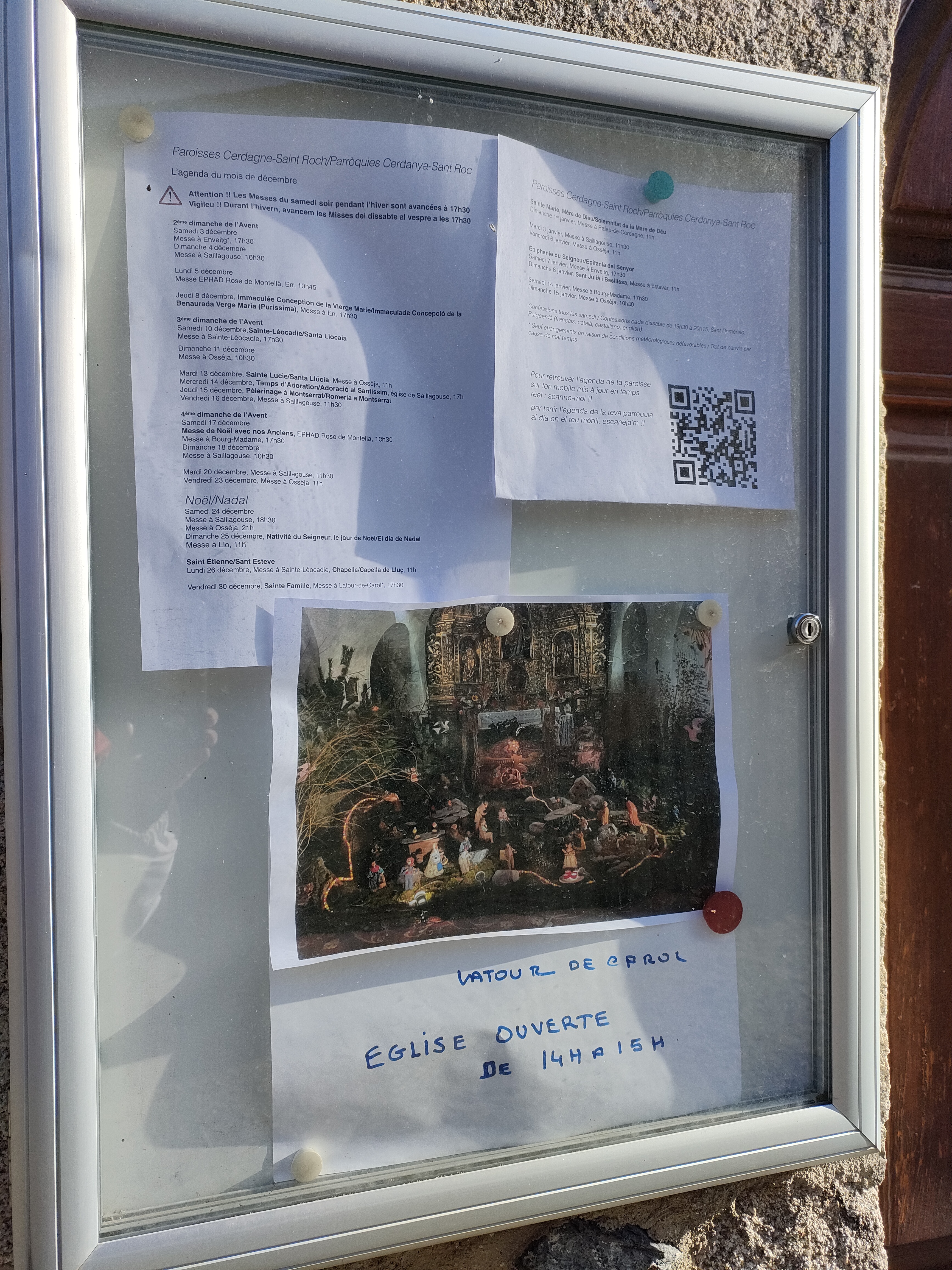 Église située à La Tor de Querol, selon les indications sur la porte, elle ouvre de 15h à 16h. C'est beau à l'extérieur, je n'ai pas pu le voir à l'intérieur, à l'extérieur il y a des panneaux qui avertissent quand il y a des messes. Il y a une plaque d'information qui raconte que le 9 août 1877, le poète catalan Jacint Verdaguer, après avoir traversé la frontière espagnole, y chanta une messe.