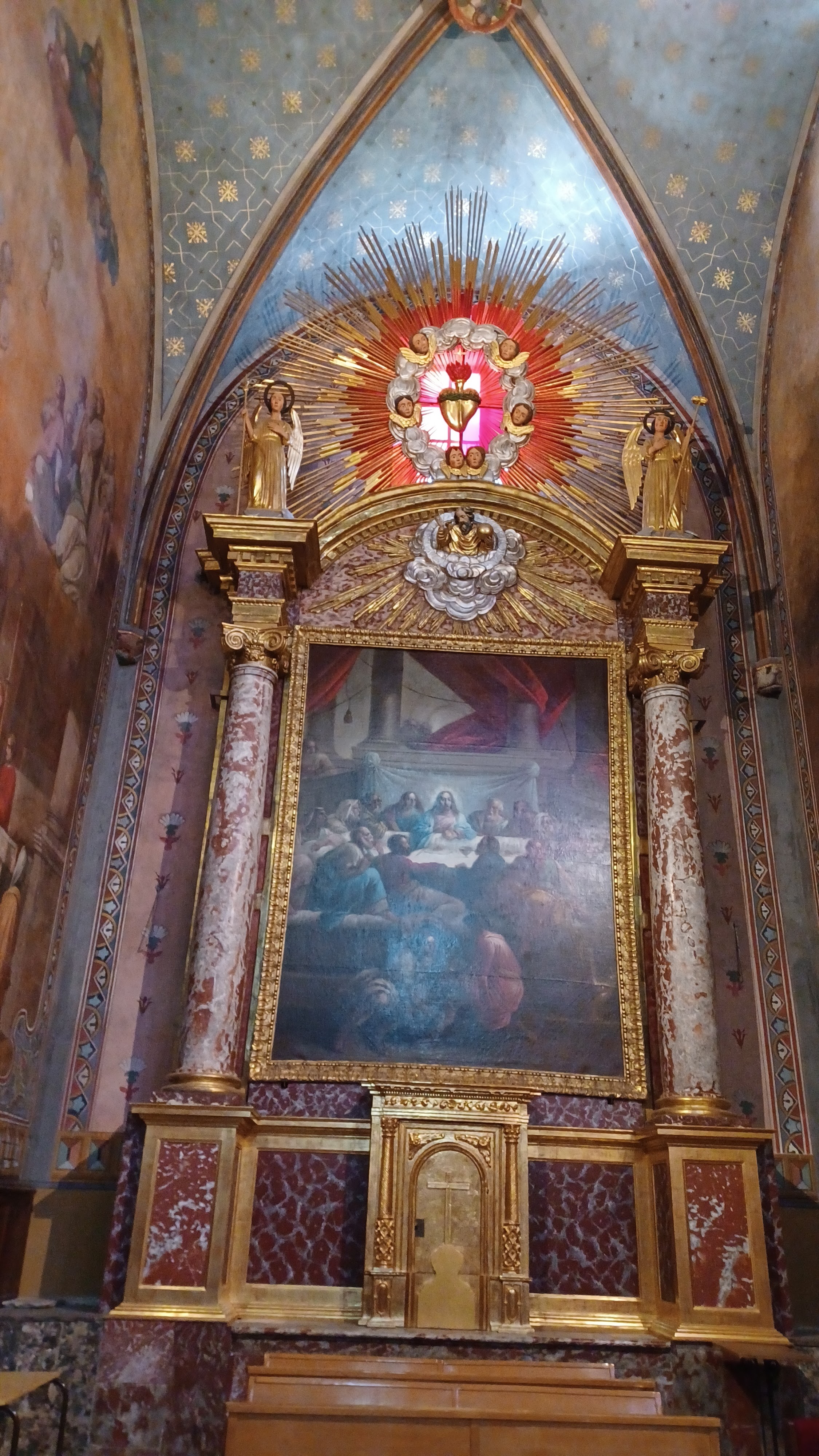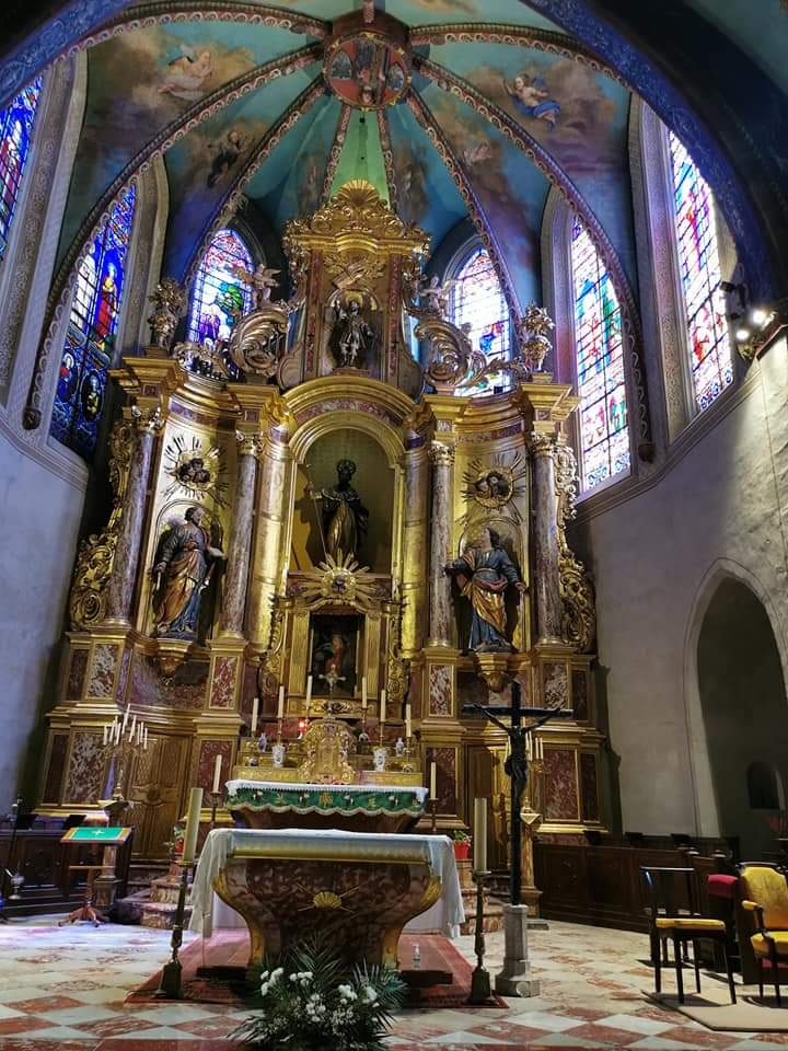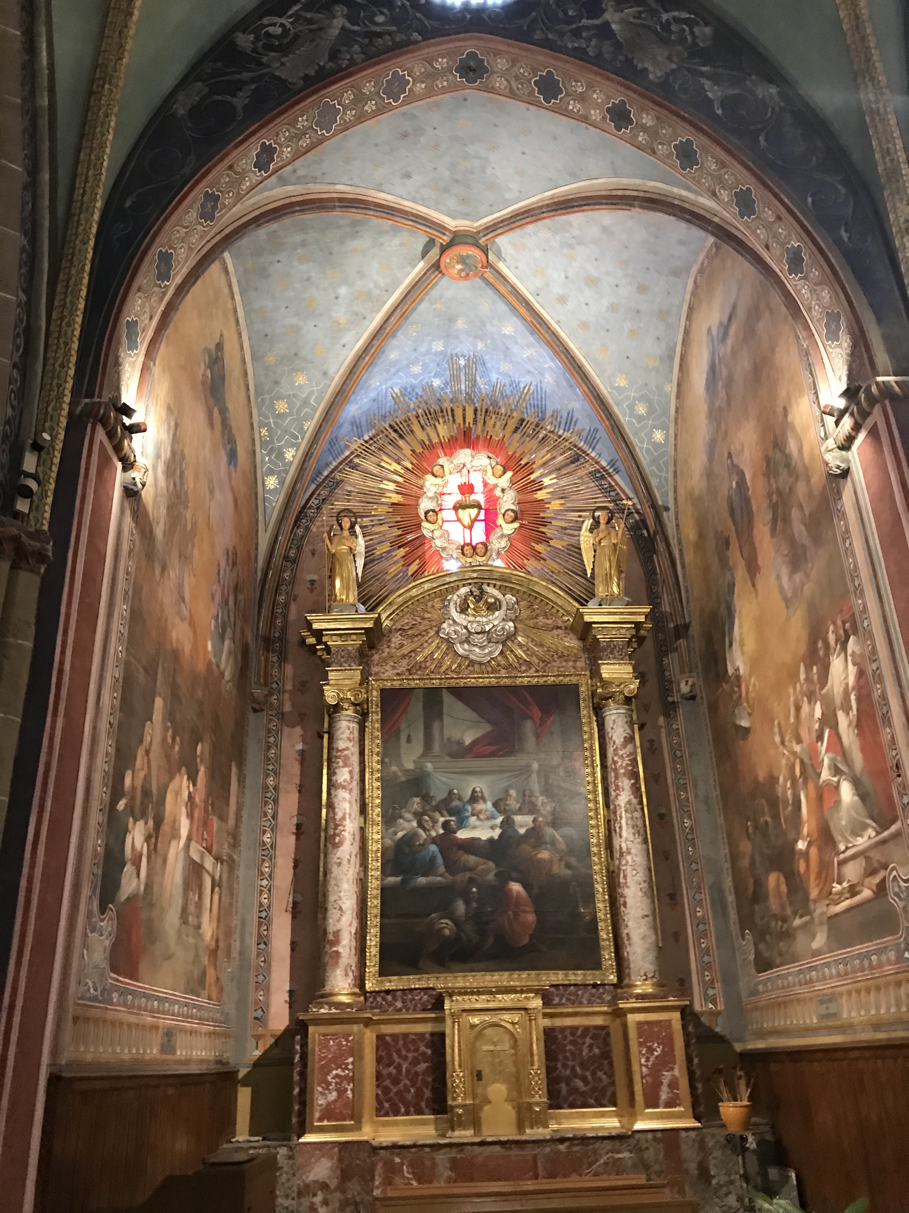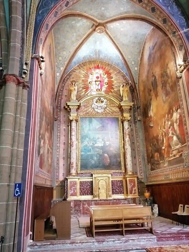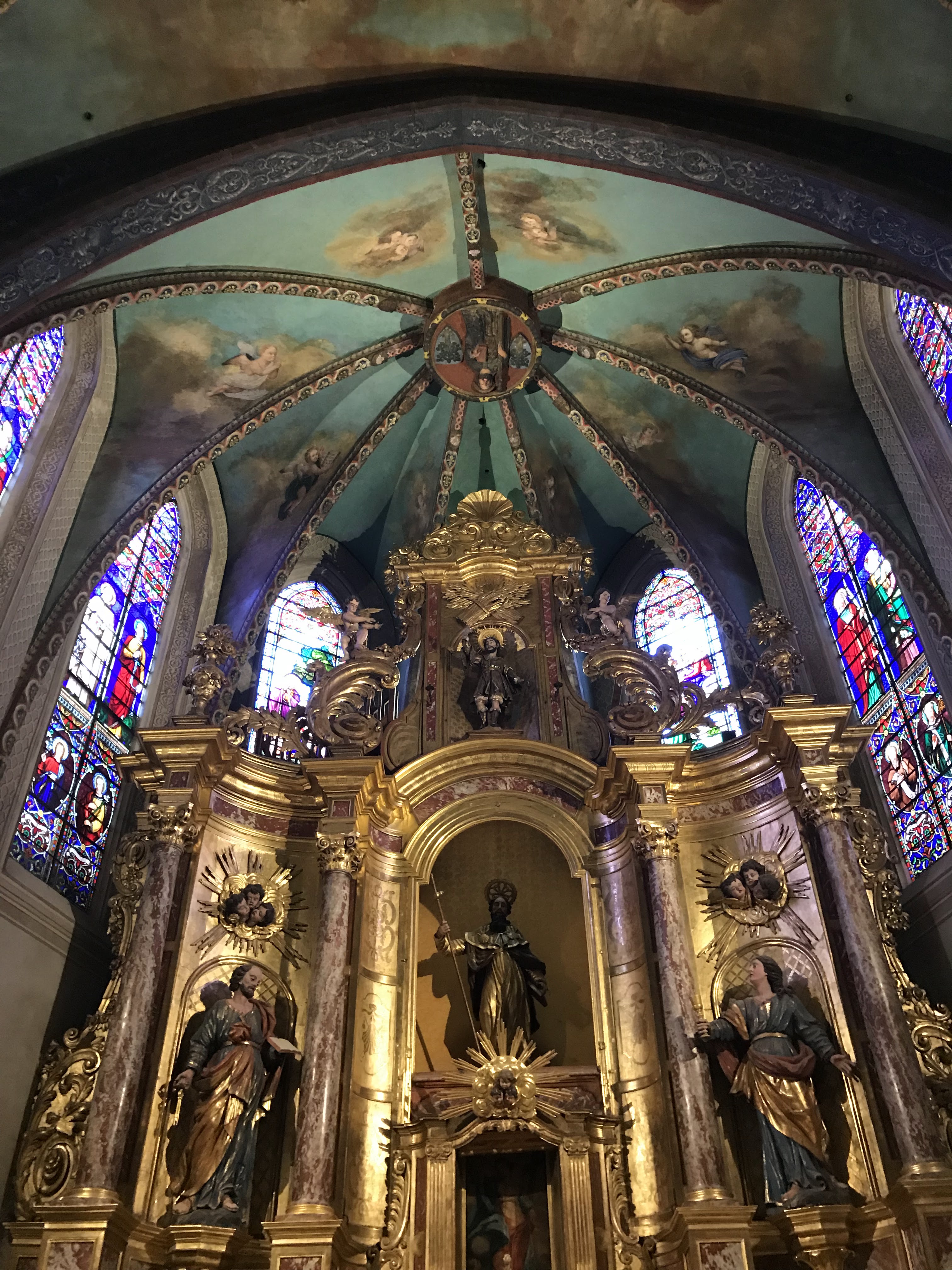 Sublime église St Jacques de Perpignan/ Compostelle avec des retables éblouissants...des vitraux magnifiques...un coeur de Jésus rouge vif étonnant et le coin de la sanch ...la passion du Christ avec des statues touchantes ...à voir absolument !