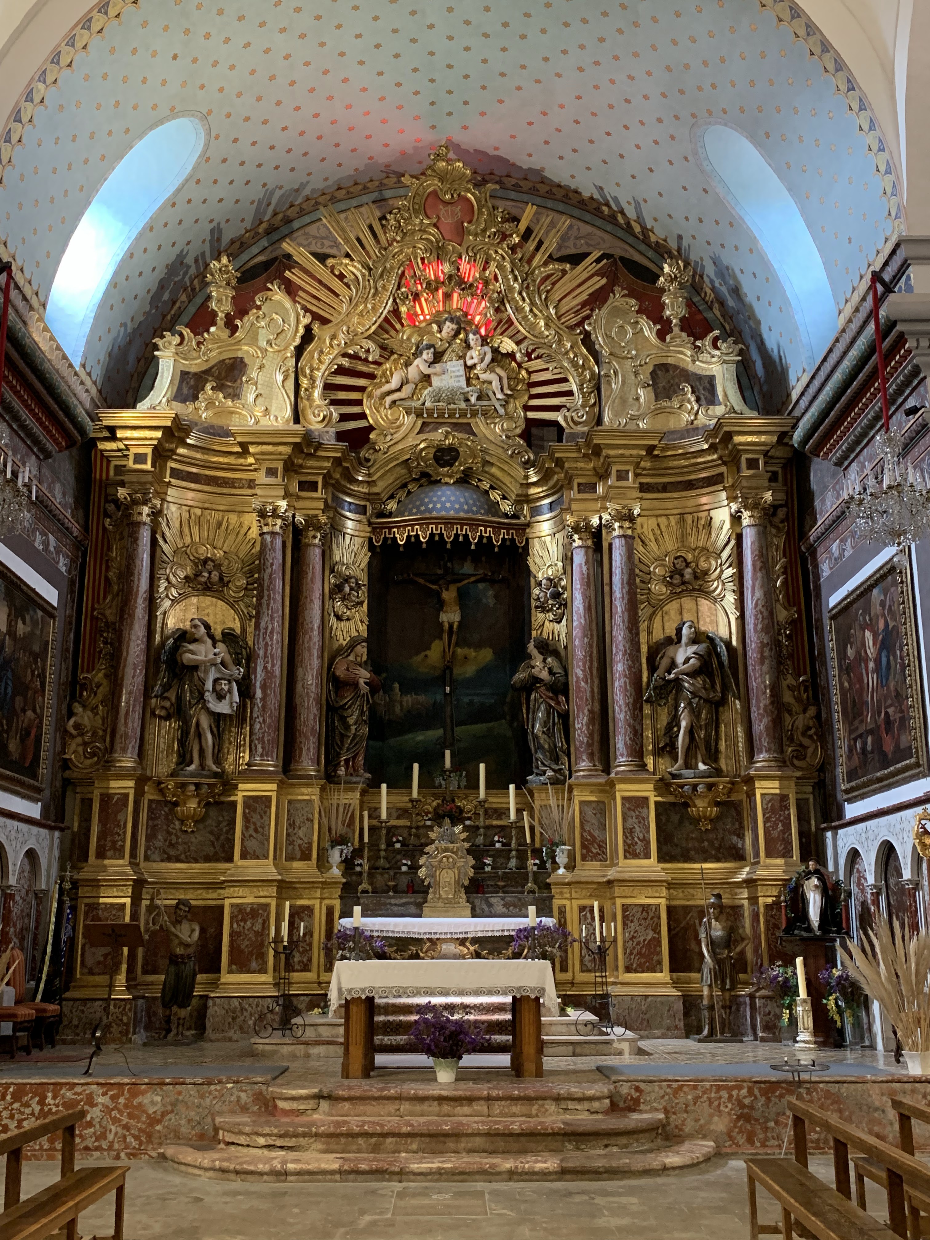 Très joli et artistique. Beaux tableaux et retables. Plafonds très décorés.