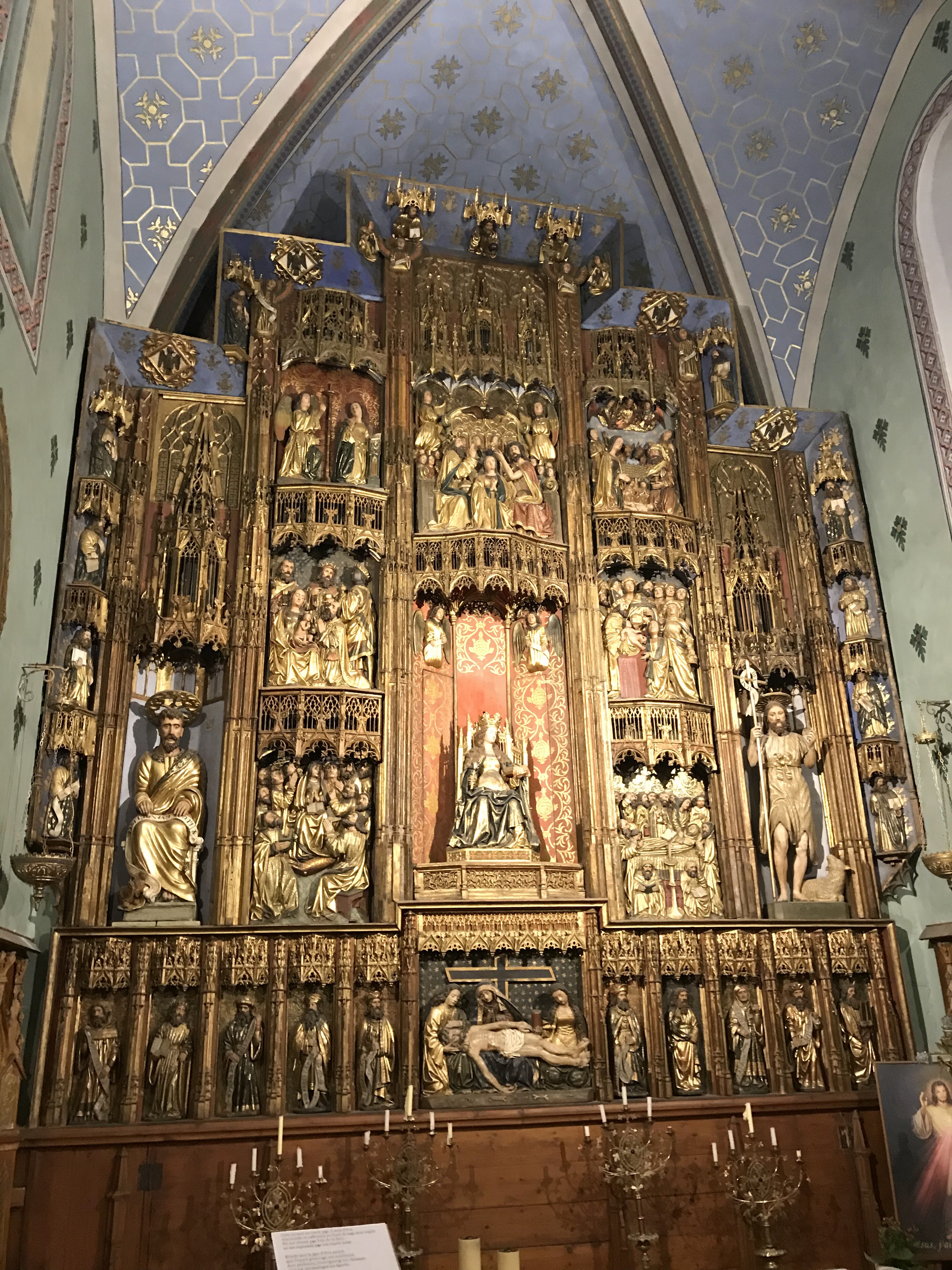 Magnifique église (double nefs) avec de superbes retables Nous n’avions pas prévu de la visiter mais l’enthousiasme du guide / personnel d’accueil, nous a convaincu et nous ne sommes pas déçu En même pas 20 min, nous avons appris beaucoup sur l’histoire de cette église et les traditions En plus nous sommes repartis avec des informations sur la région et d’autres magnifiques sites à visiter